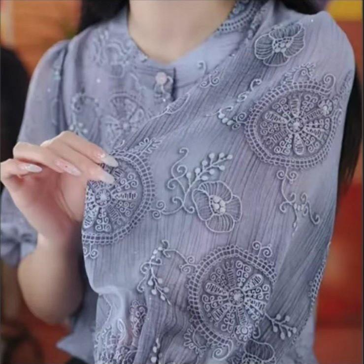 Camisa de Gasa para Mujer 2025 Nuevo Estilo de Verano Versátil Lujo Ligero de Alta Gama Moda Reductora de Edad Blusa Top