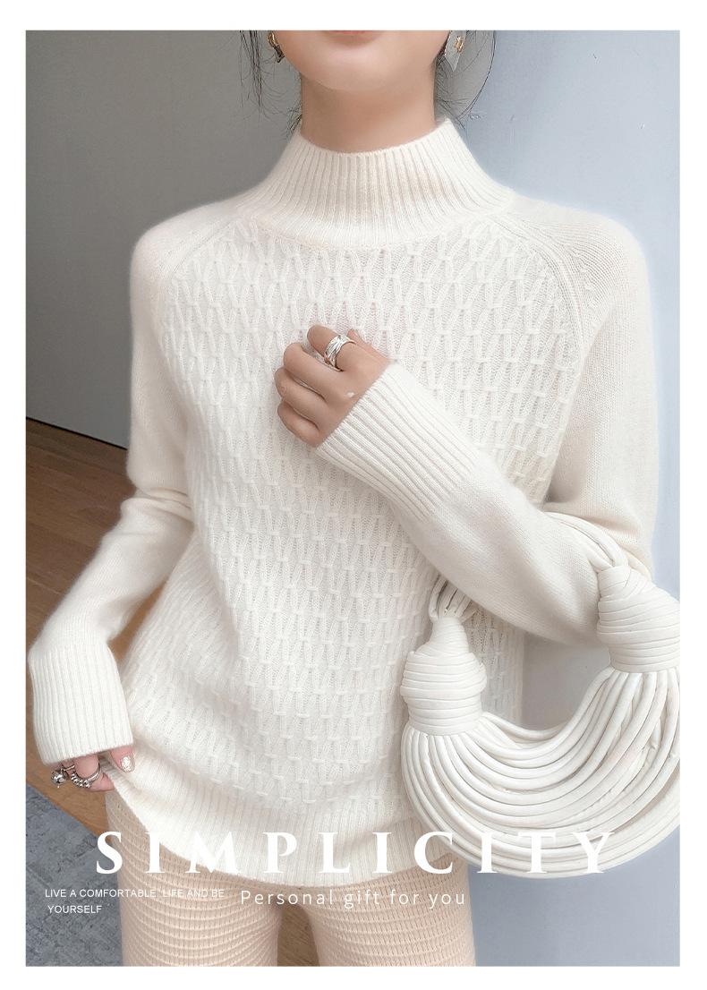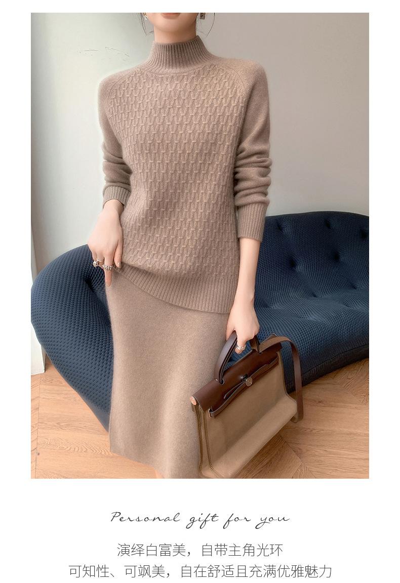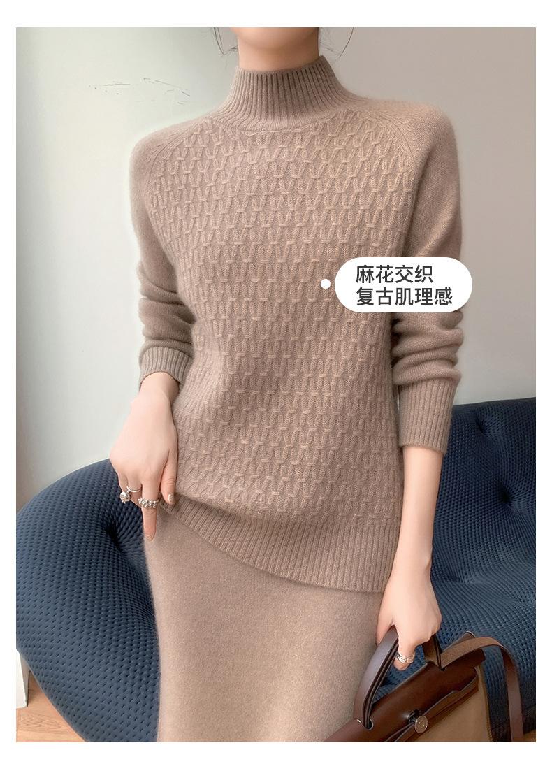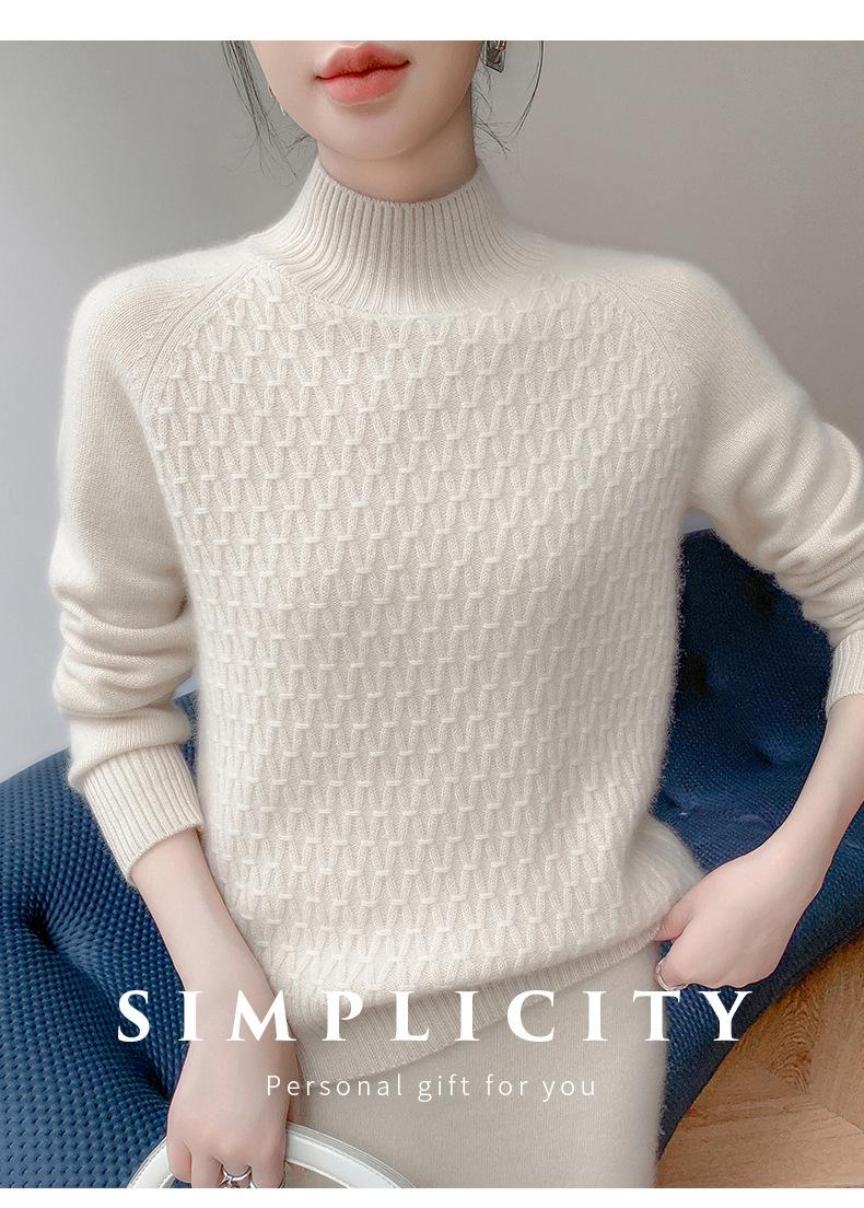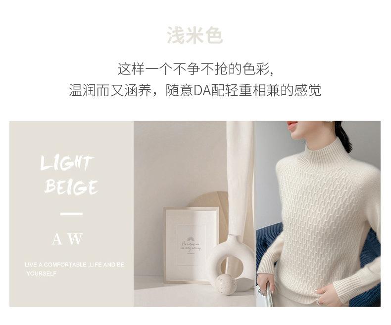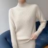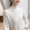 Suéter de punto gofrado nuevo de otoño e invierno para mujer, color sólido, tejido de cachemira, camiseta base de manga larga con cuello semi alto, grueso para capa interior