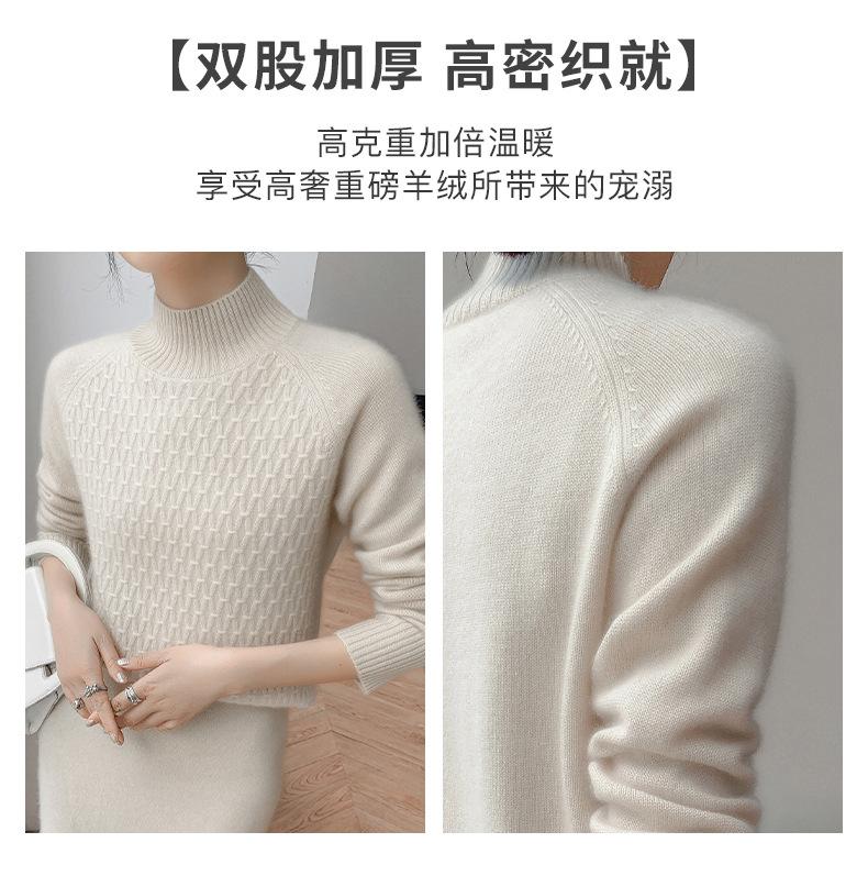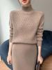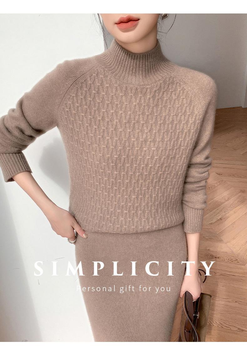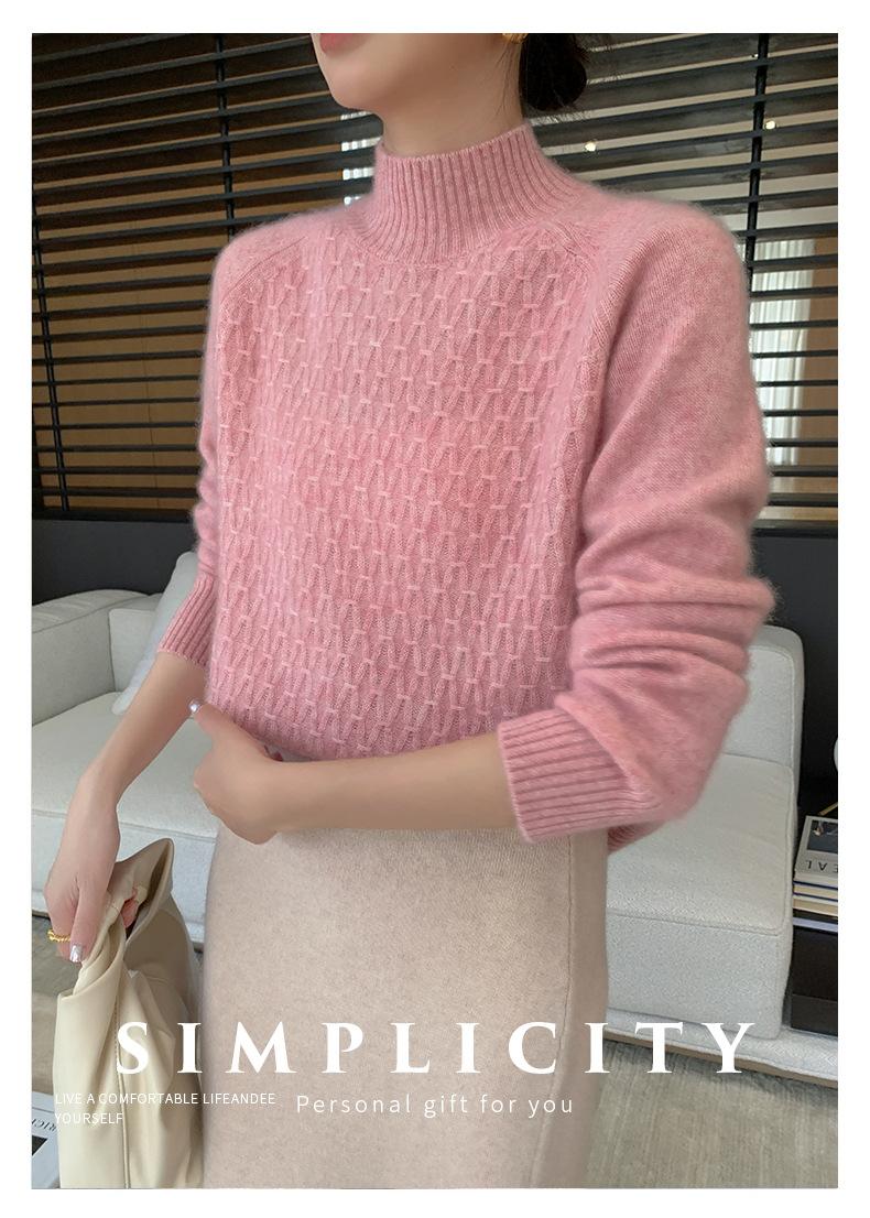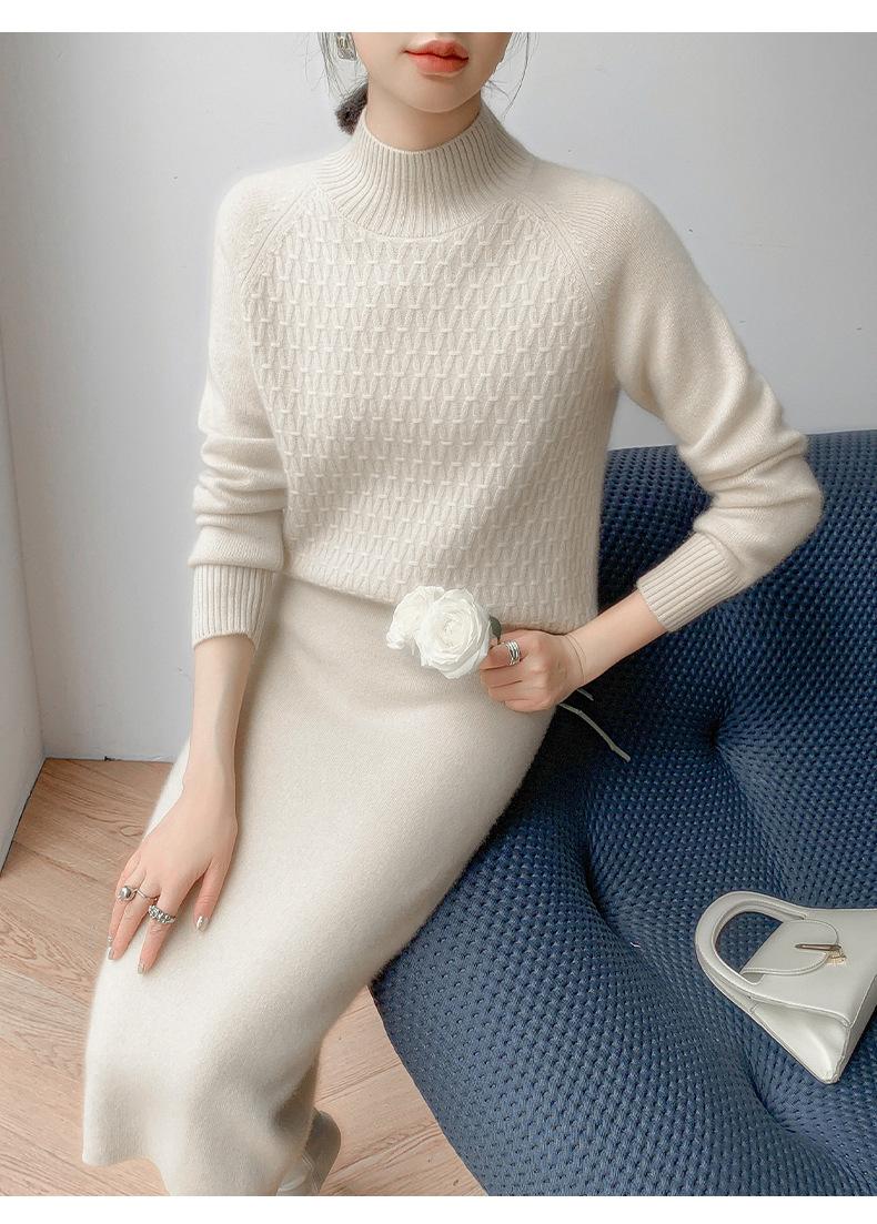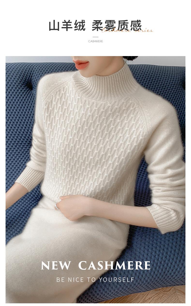 Suéter de punto gofrado nuevo de otoño e invierno para mujer, color sólido, tejido de cachemira, camiseta base de manga larga con cuello semi alto, grueso para capa interior