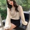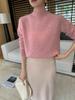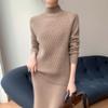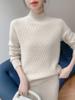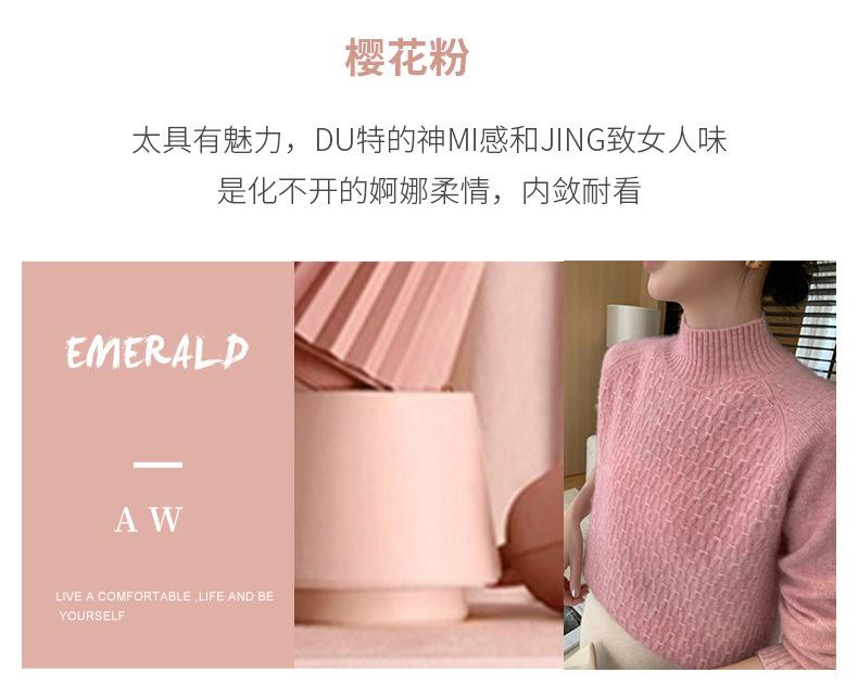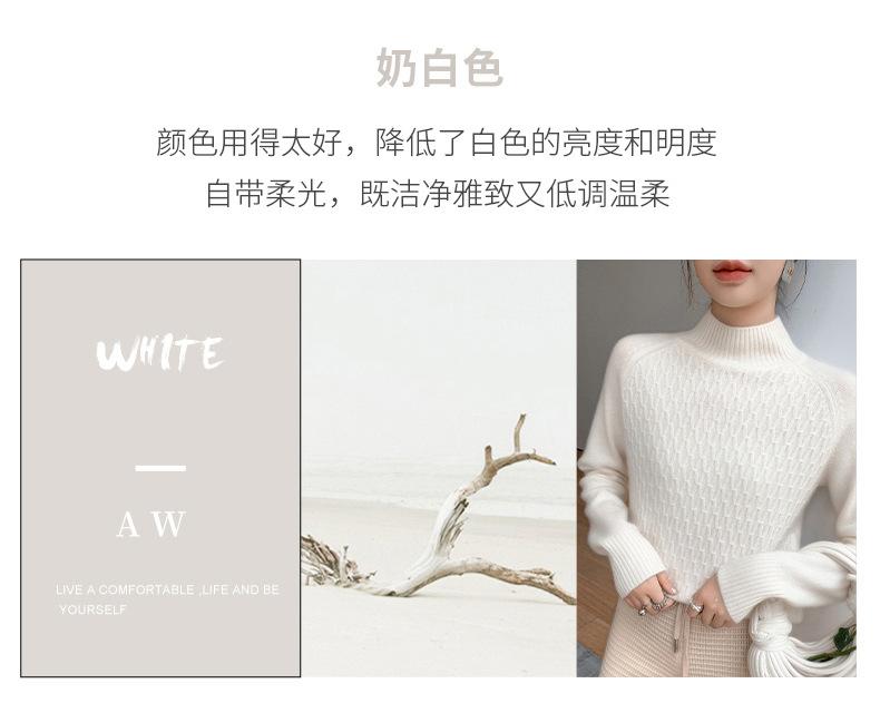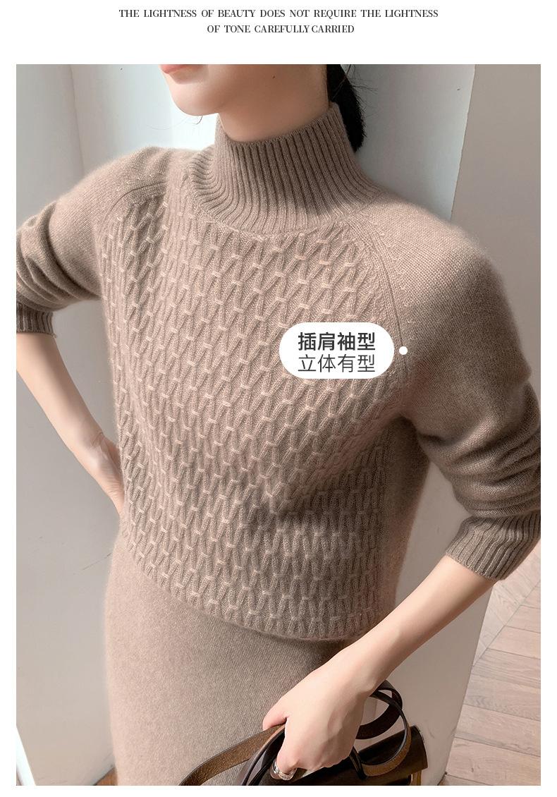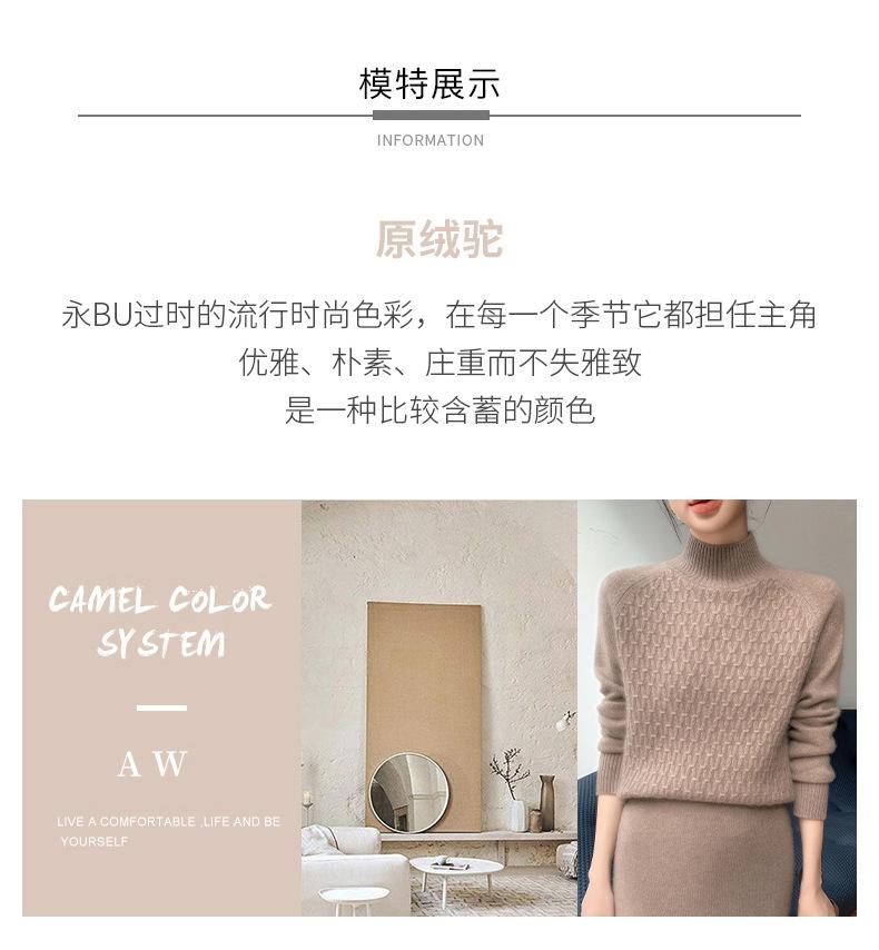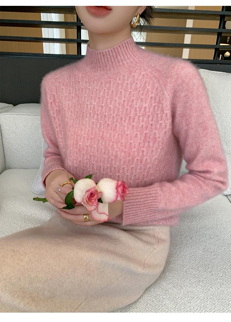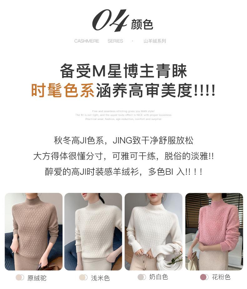 Suéter de punto gofrado nuevo de otoño e invierno para mujer, color sólido, tejido de cachemira, camiseta base de manga larga con cuello semi alto, grueso para capa interior