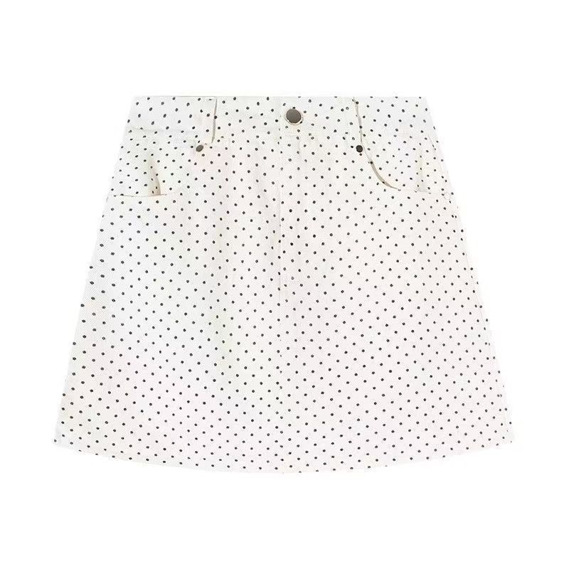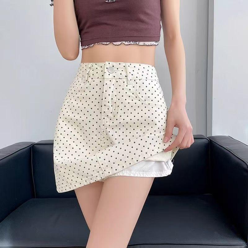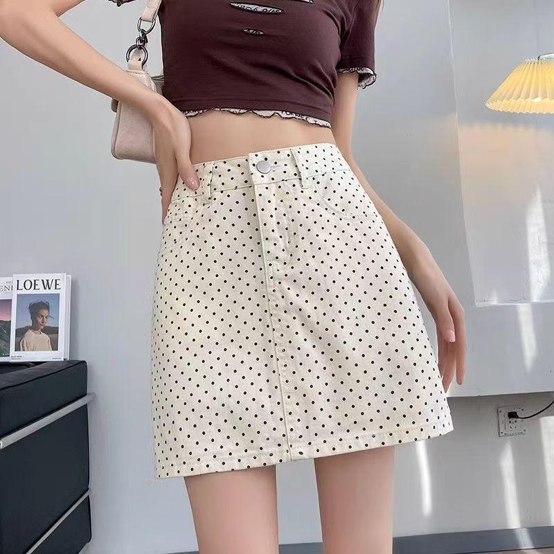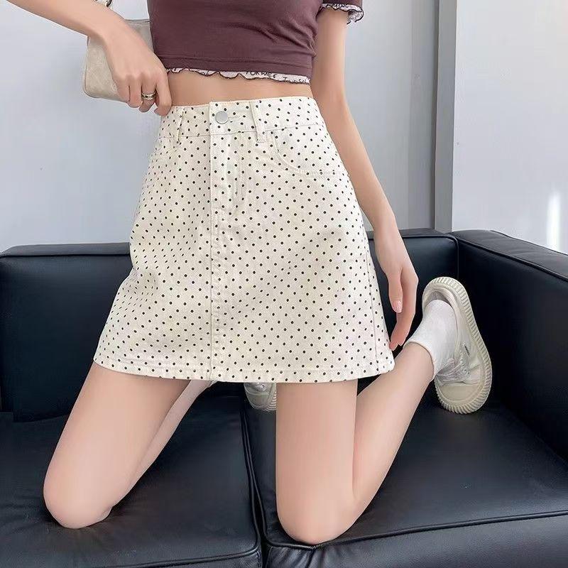 Falda Retro de Verano con Lunares para Gente Pequeña, Nueva Falda Corta 2025 de Cintura Alta con Aspecto Adelgazante Anti-Exposición A-Line Falda de Cadera
