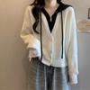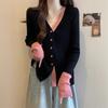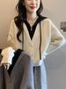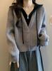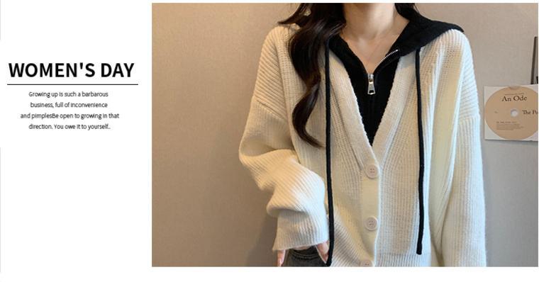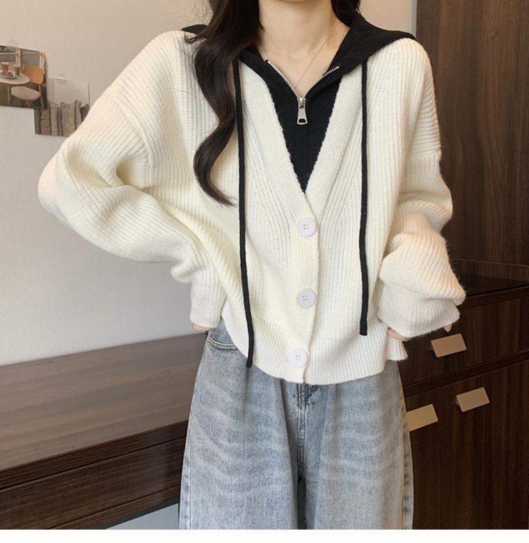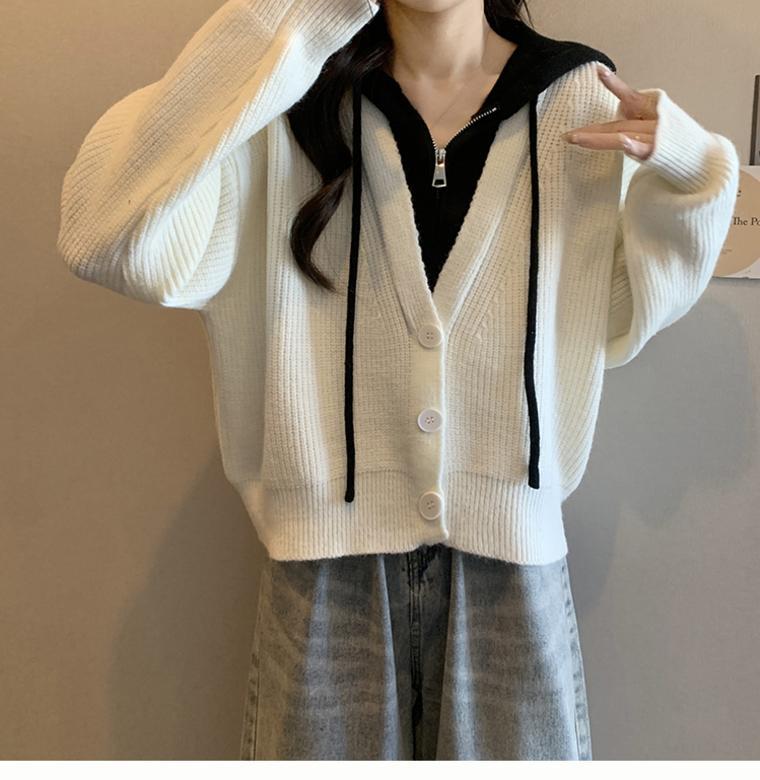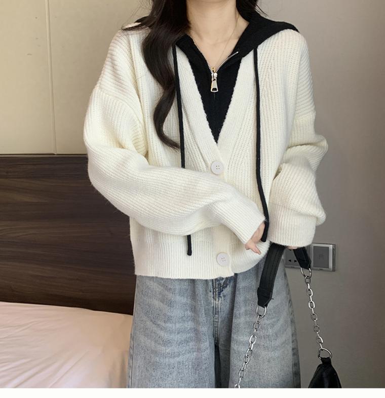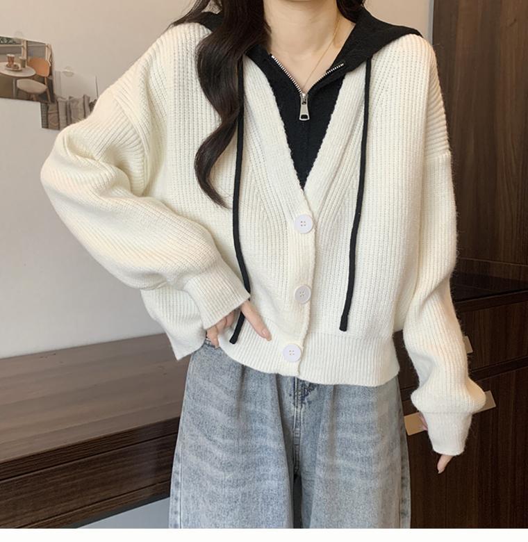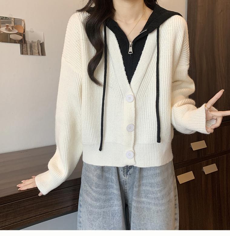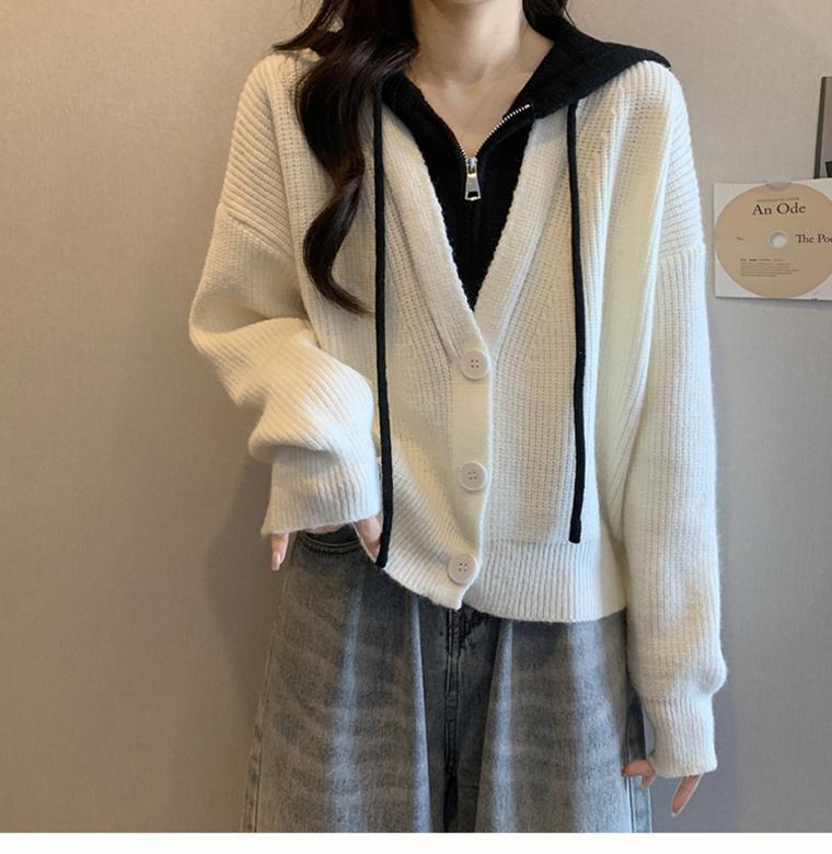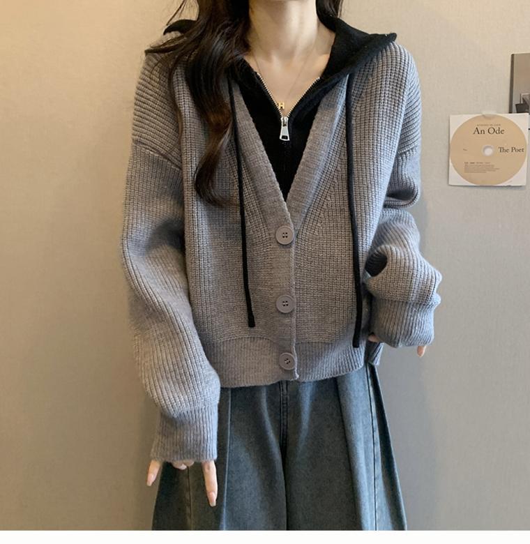 Suéter con Capucha de Moda Reductora de Edad para Otoño e Invierno para Mujer, Cárdigan de Punto Versátil de Gama Alta Falso de Dos Piezas A7667
