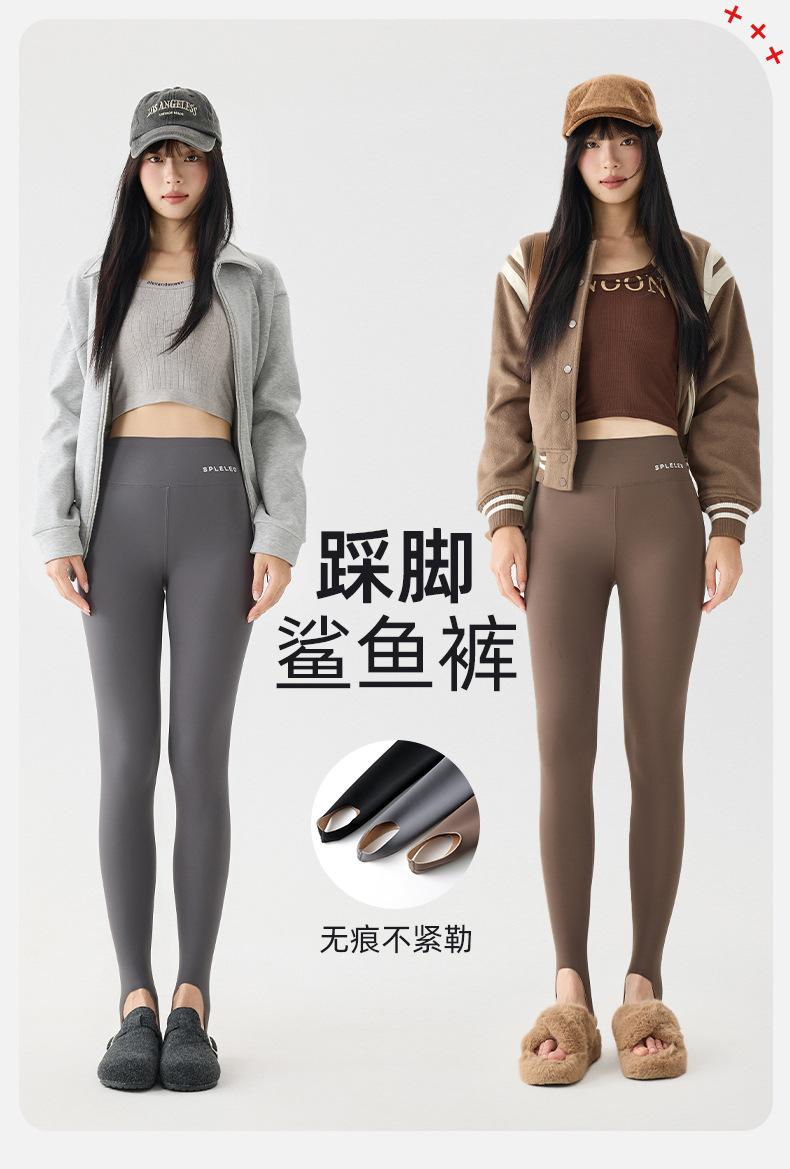 Leggings con forro polar otoño e invierno engrosados pantalones de tiburón con estribo ropa exterior para mujer adelgazantes de abdomen levantamiento de cadera adelgazantes pantalones de fitness cálidos pantalones largos