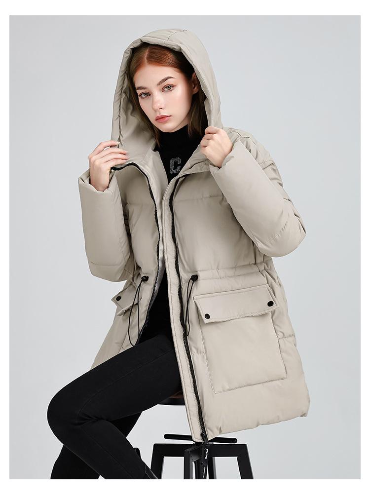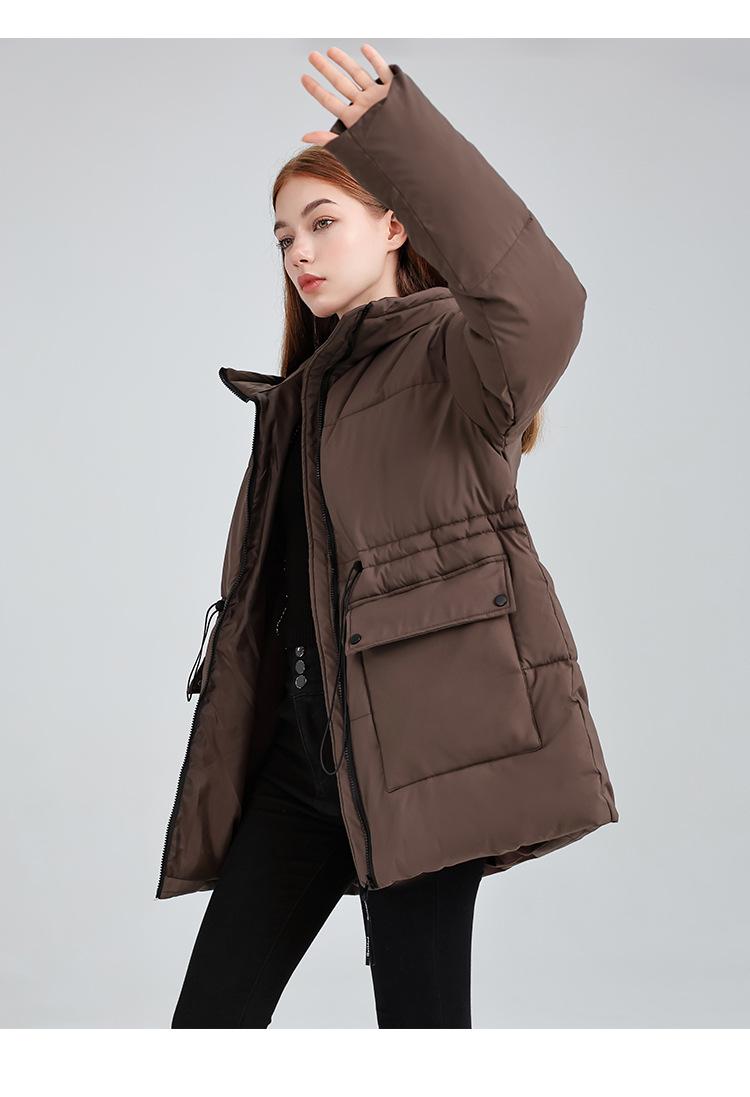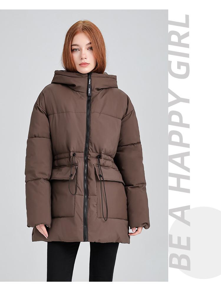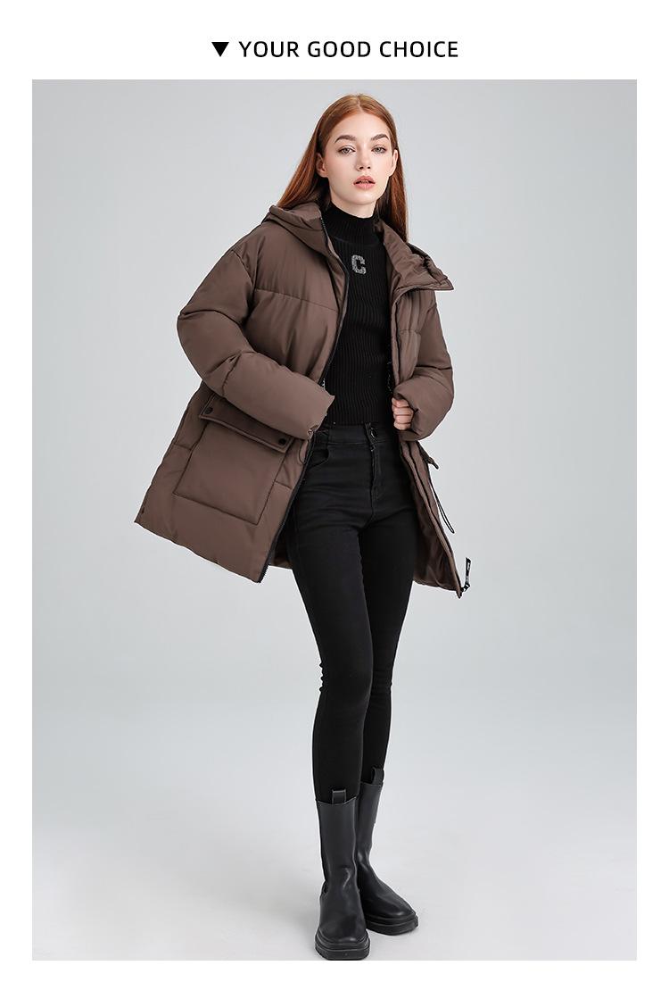 Abrigo de algodón acolchado con capucha para mujer de longitud media 2025 nuevo estilo invierno engrosado cálido chaqueta acolchada de algodón abrigo ropa de mujer