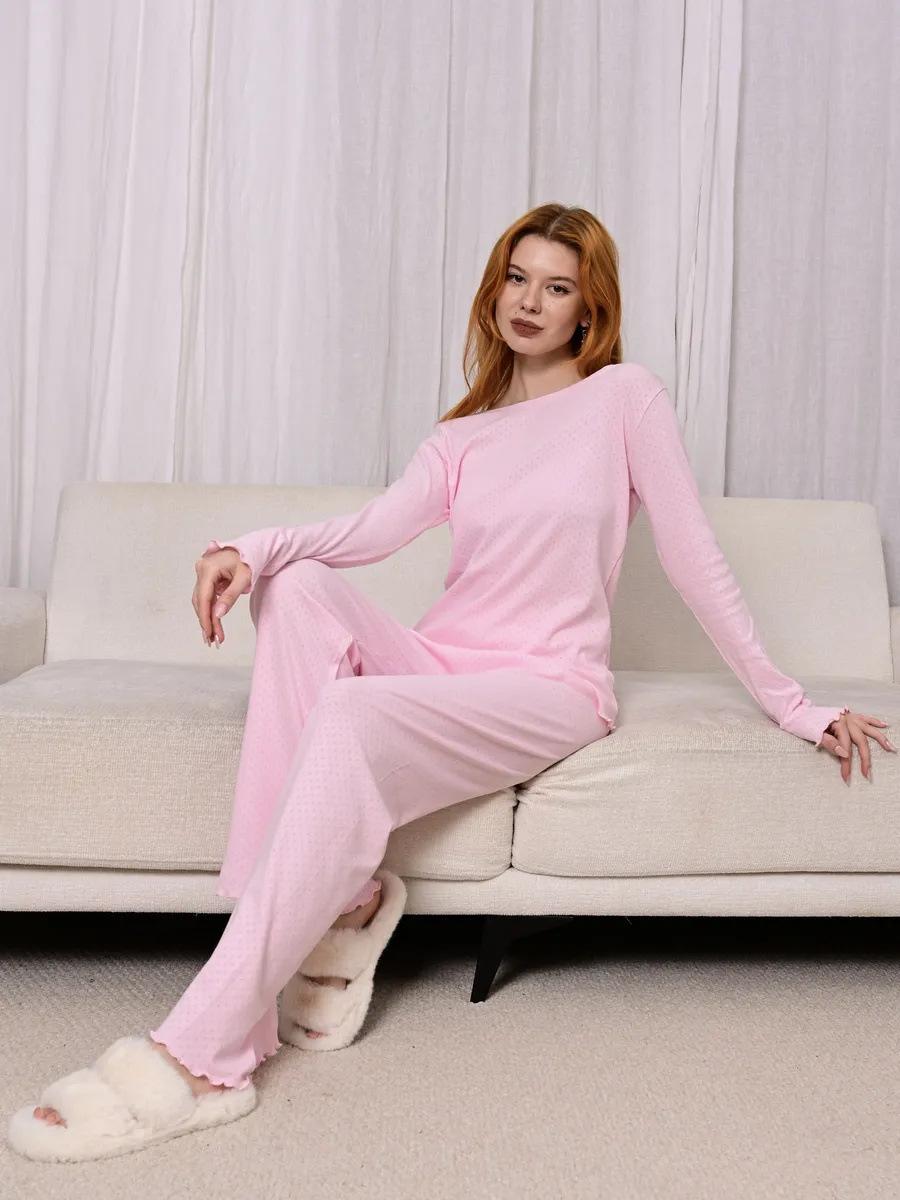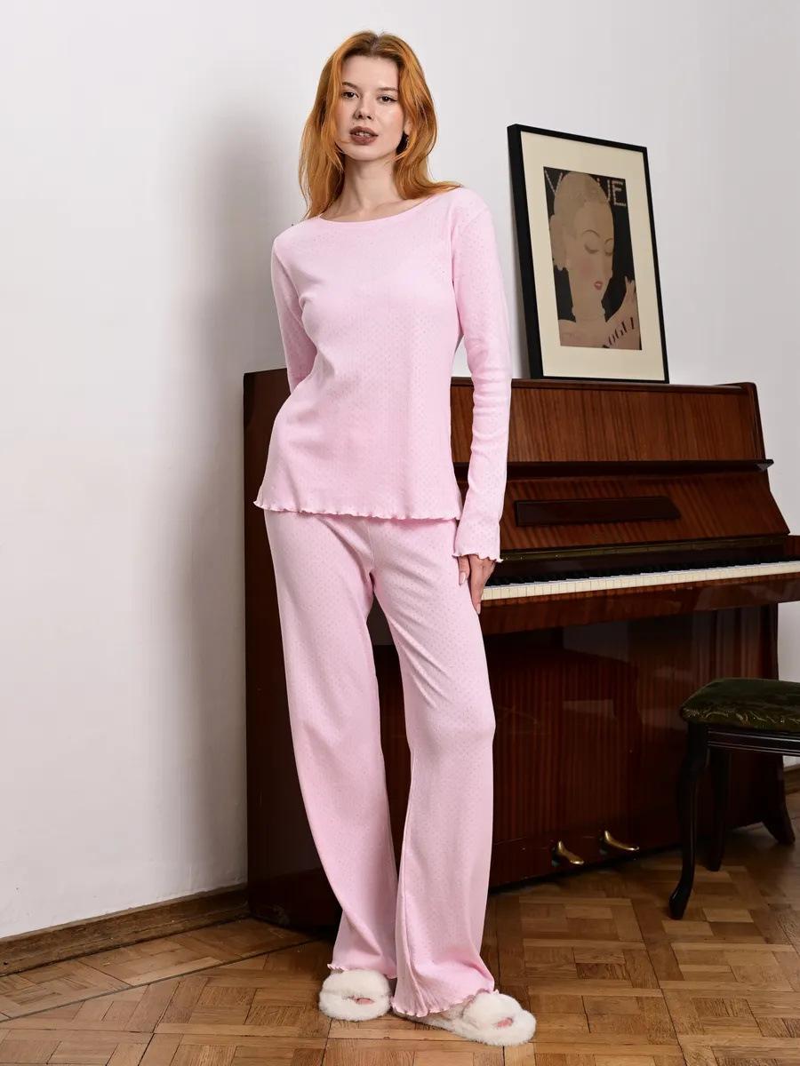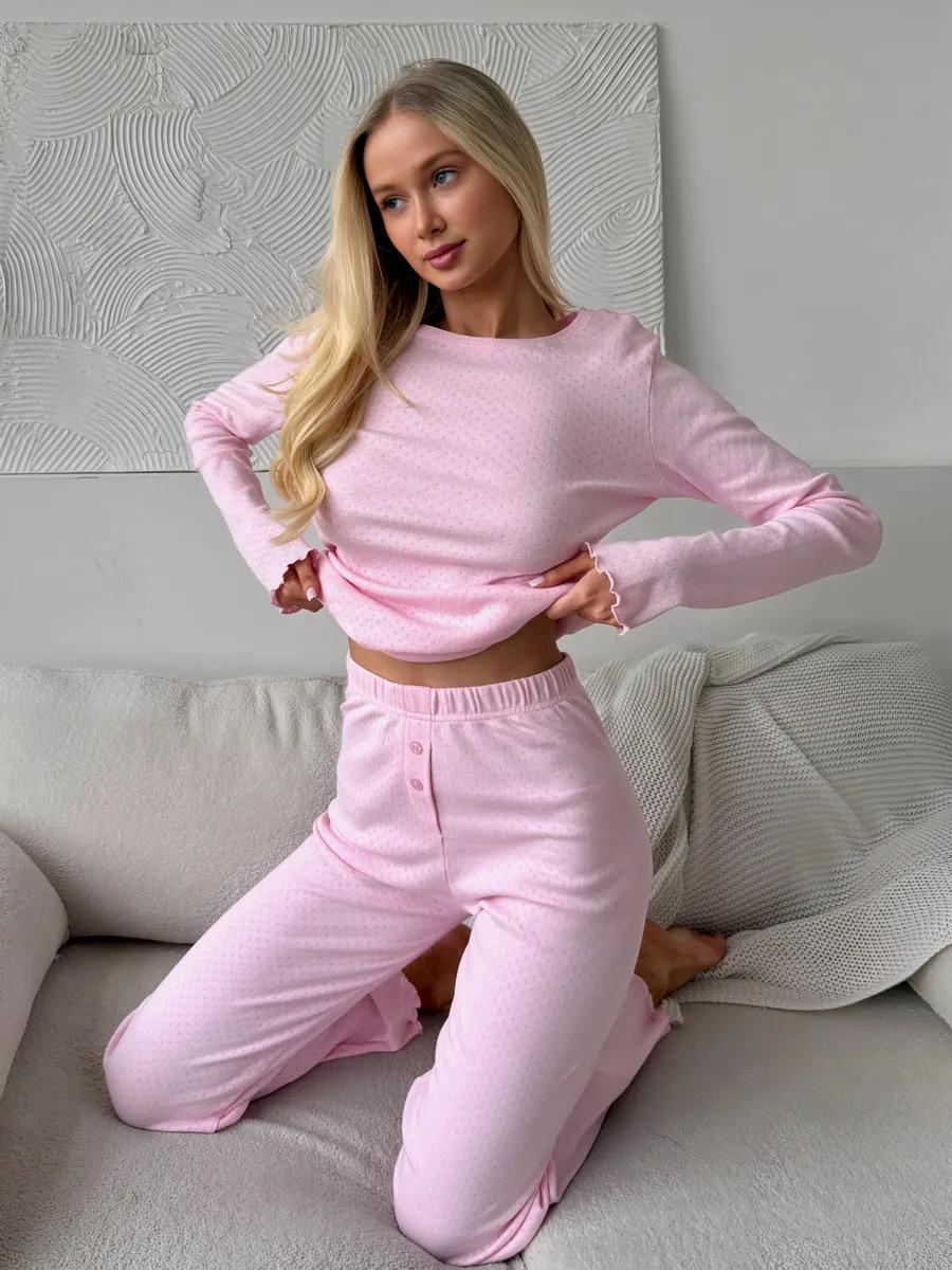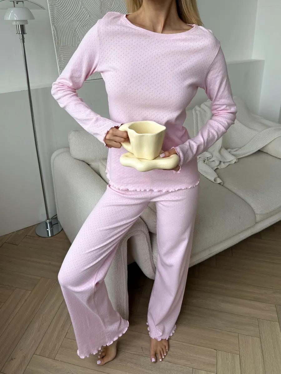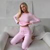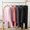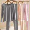 Traje de Ropa Interior Térmica para Mujer de Cuello Redondo, Color Sólido, Ropa Pura de Otoño y Pantalones Largos, Algodón Base, Manga Larga, Traje de Ropa para el Hogar de Modal