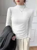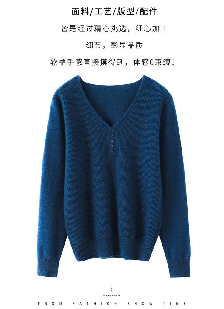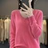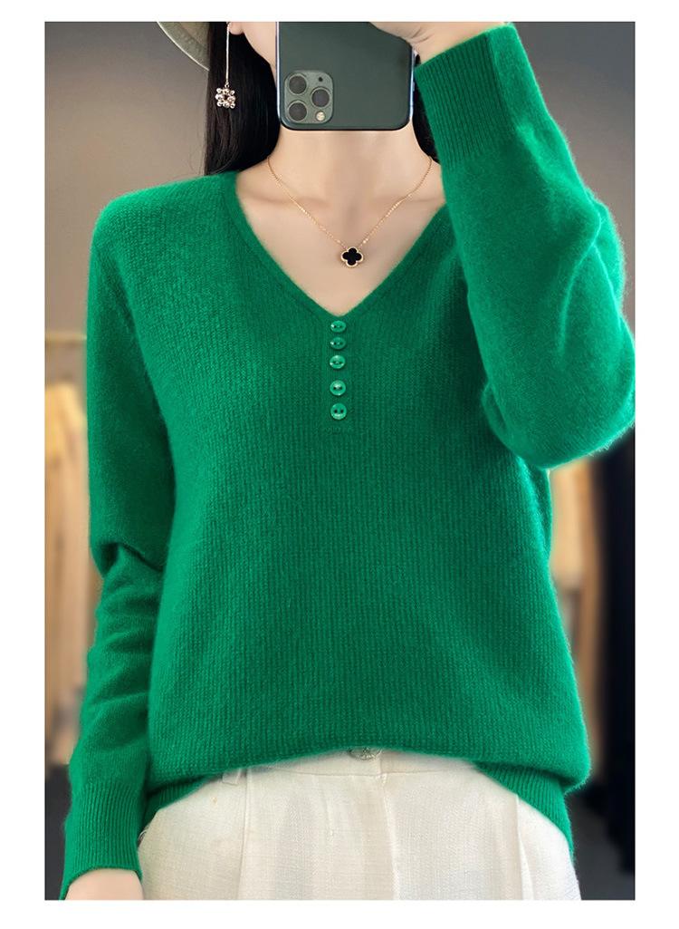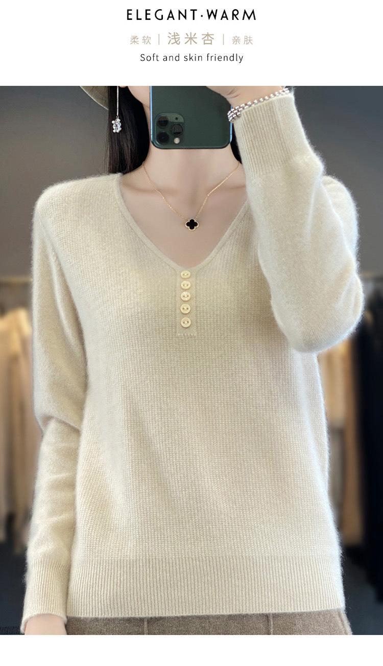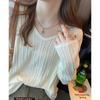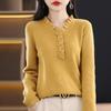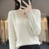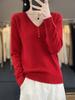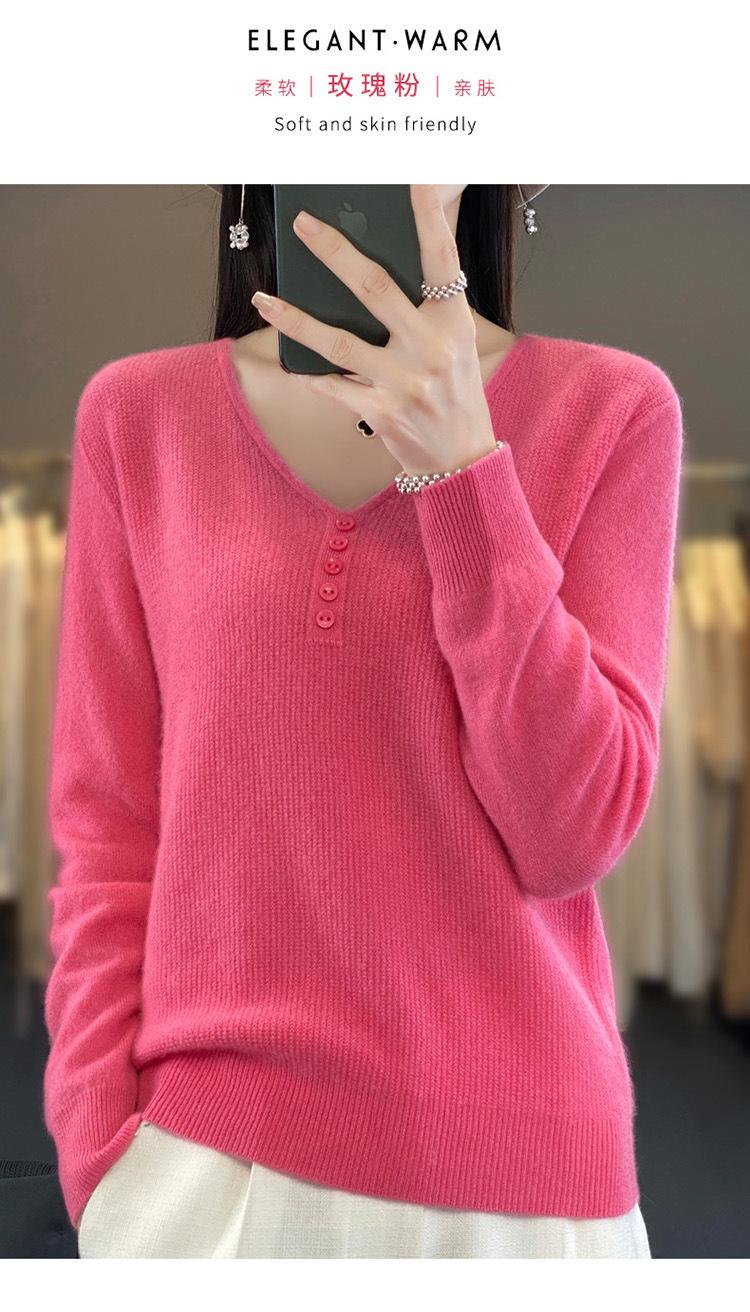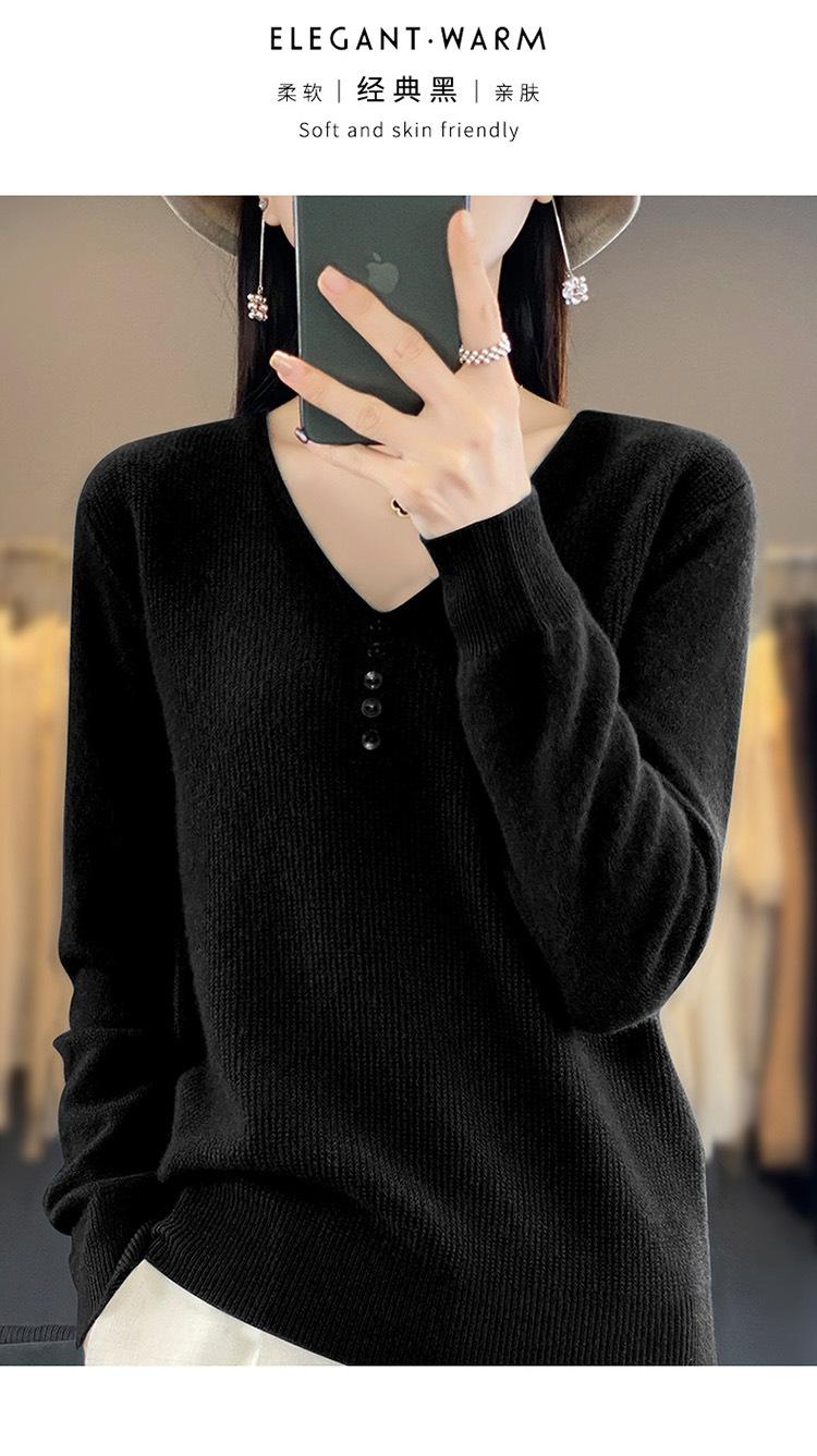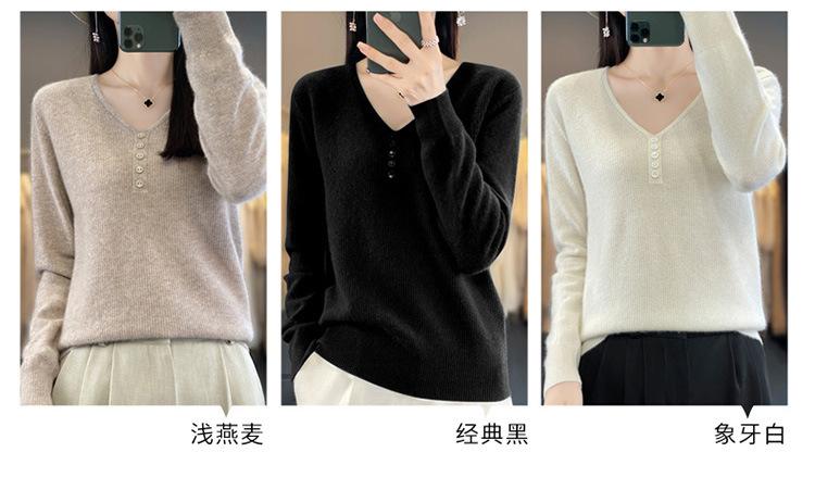 Otoño e invierno ropa interior y exterior nuevo estilo slim fit para mujer con hebilla camisa base cuello en V manga larga suéter tejido top holgado talla grande