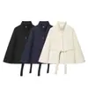 Ropa de Mujer de Comercio Exterior Otoño e Invierno 2025 Estilo Europeo y Americano Cinturón de Cintura Cuello Alto Manga Ancha Chaqueta Corta de Lana para Mujer B69388