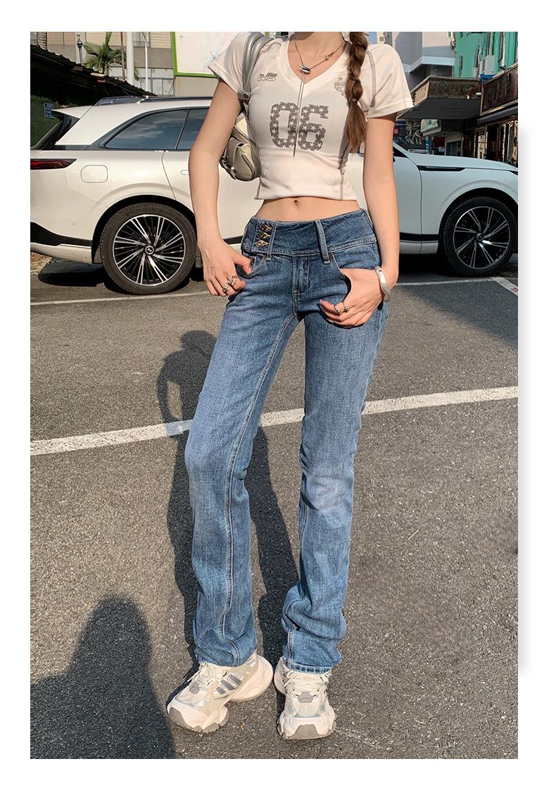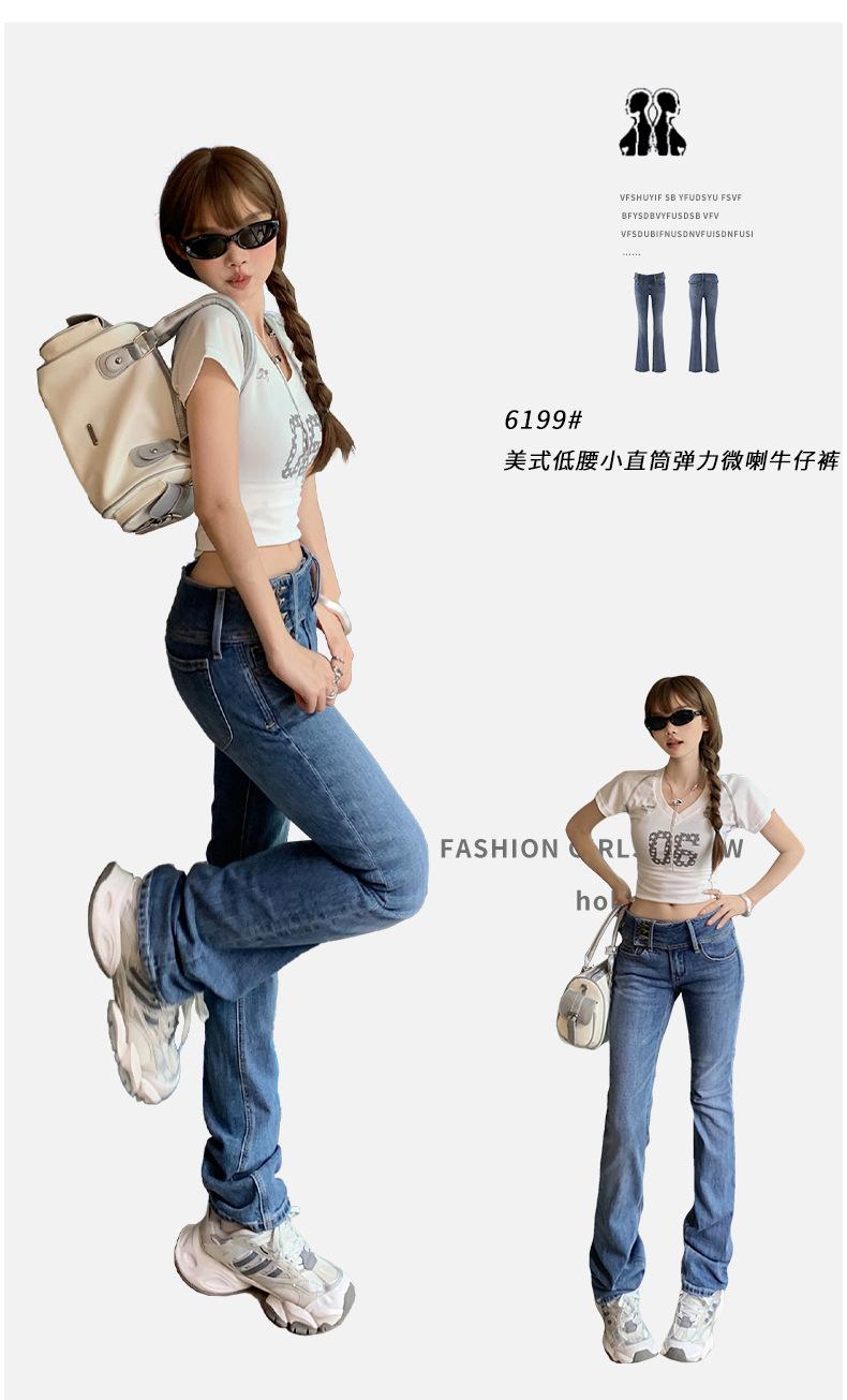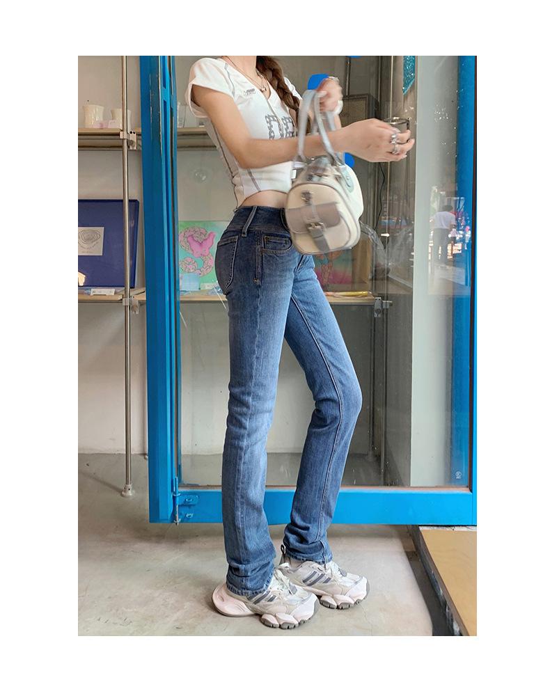Jeans Sexy de Cintura Baja Americanos para Mujer 2025 Otoño Nuevo Diseño Elástico de Corte Slim Pantalones Rectos Pequeños