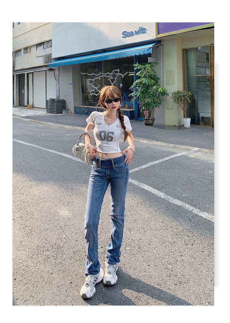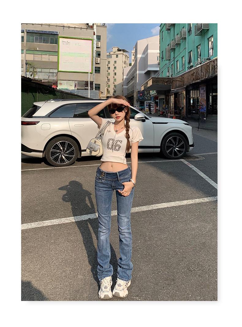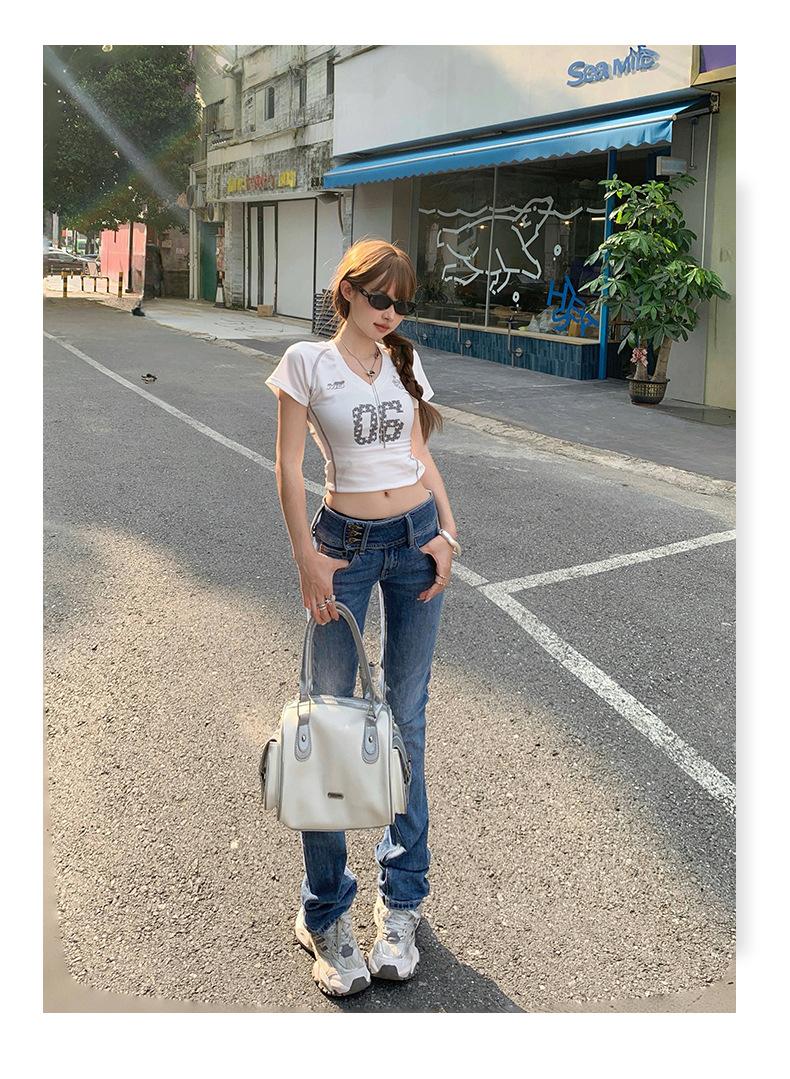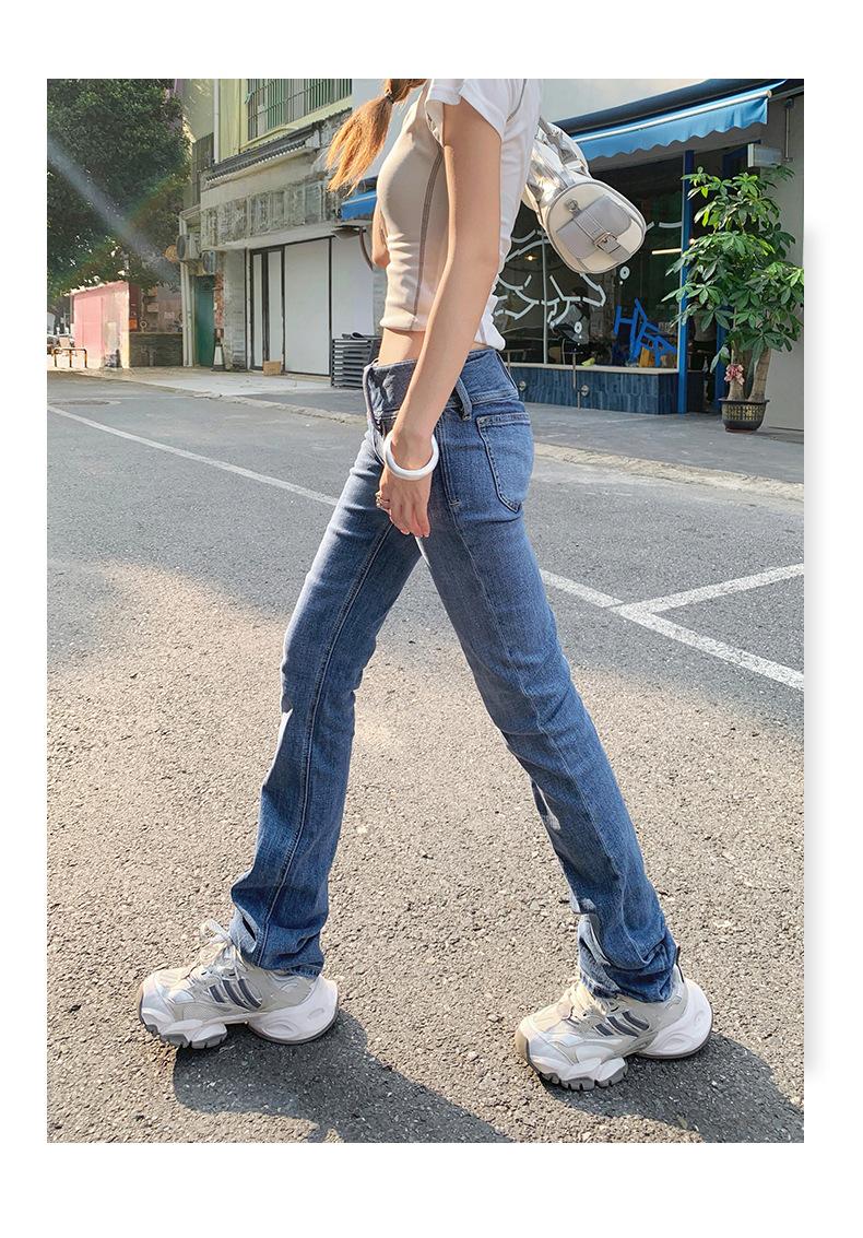 Jeans Sexy de Cintura Baja Americanos para Mujer 2025 Otoño Nuevo Diseño Elástico de Corte Slim Pantalones Rectos Pequeños