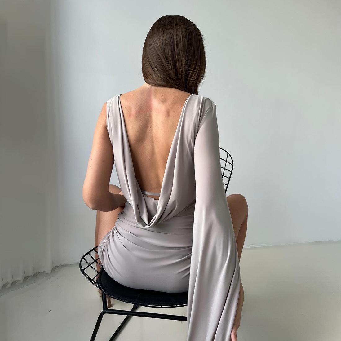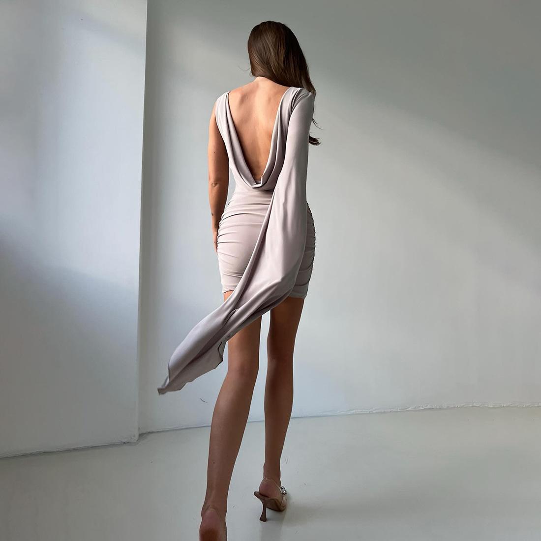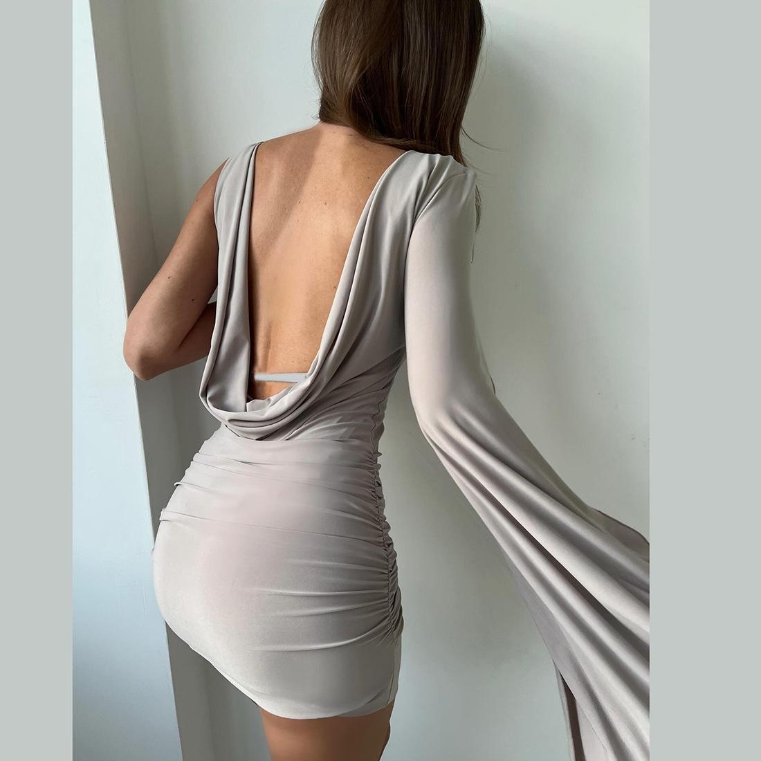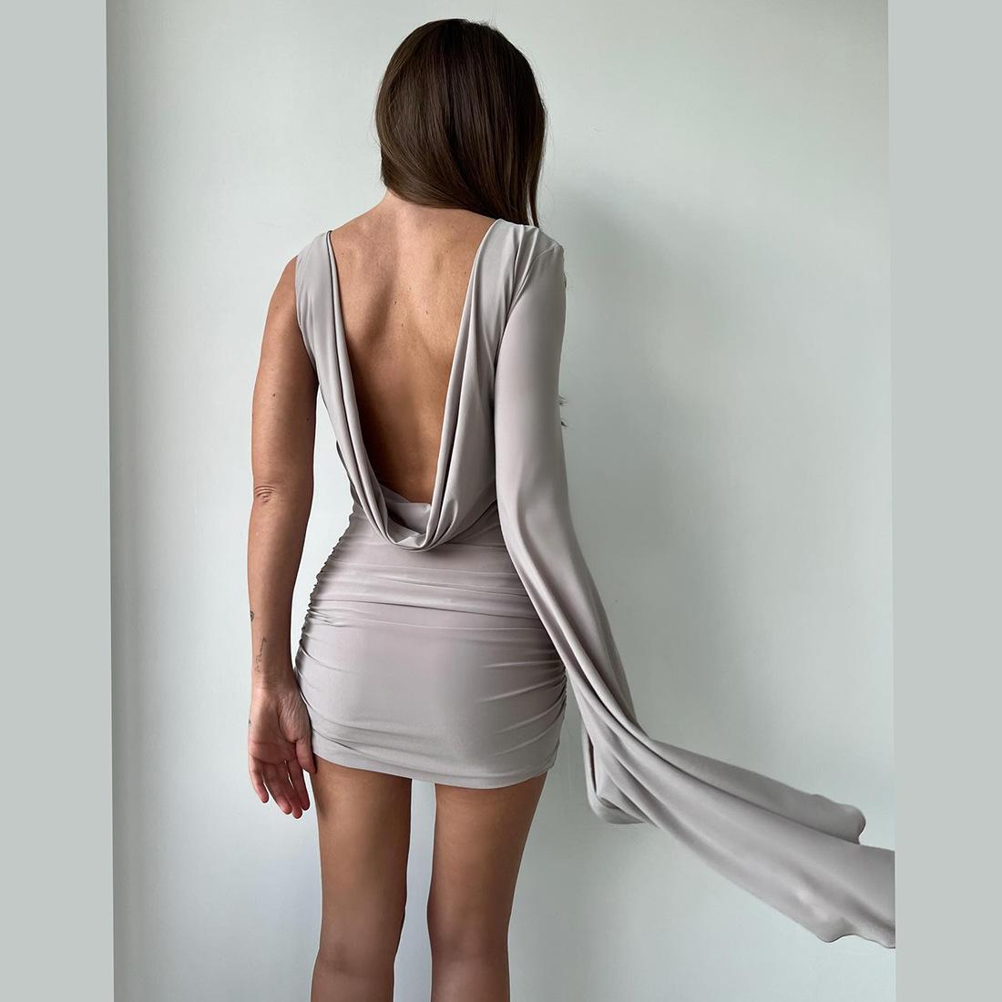 Ropa de mujer nueva de otoño 2025 estilo europeo y americano transfronterizo, vestido ajustado de un solo hombro sin espalda, color sólido, moda, para chica sexy