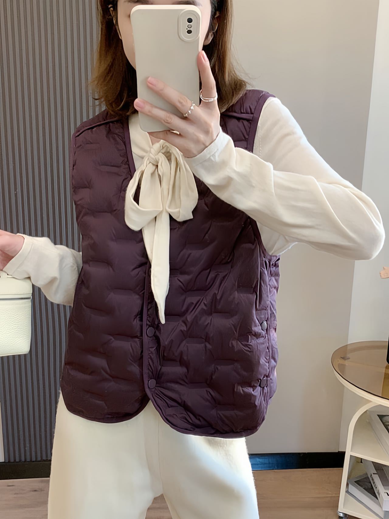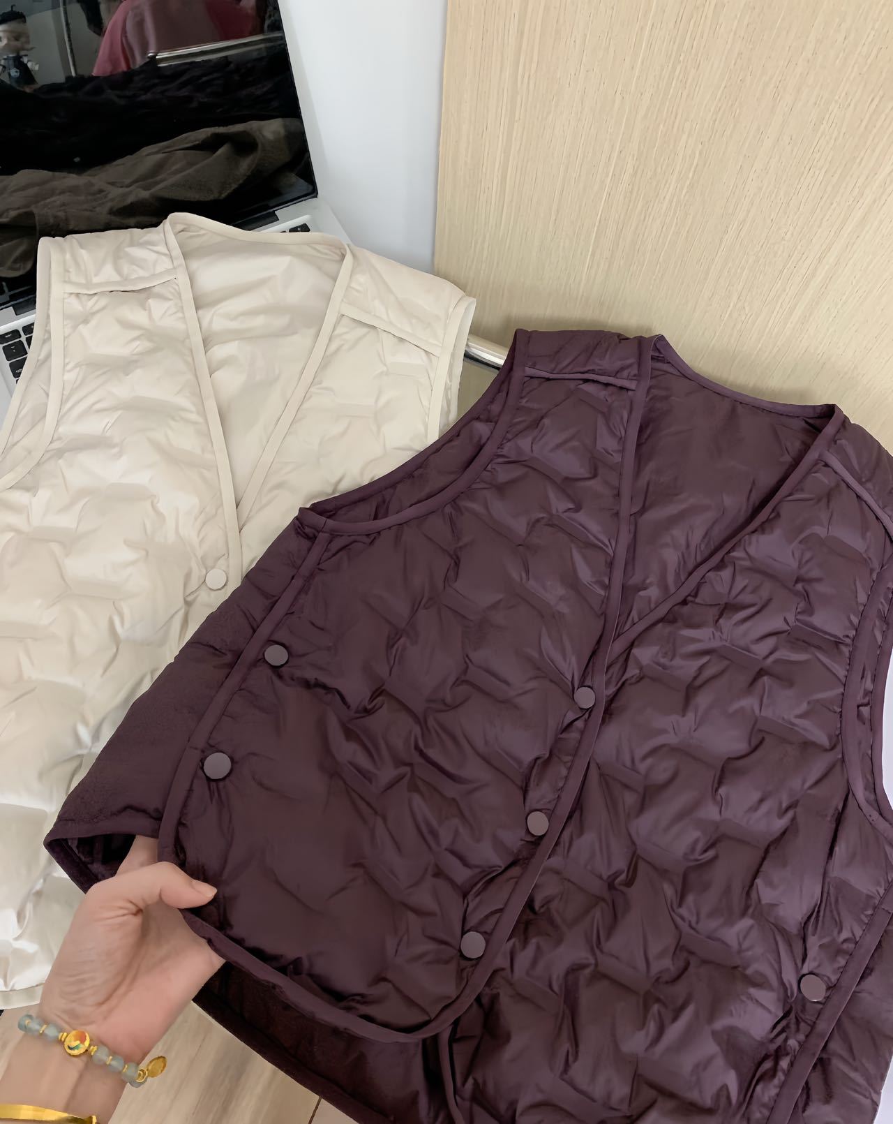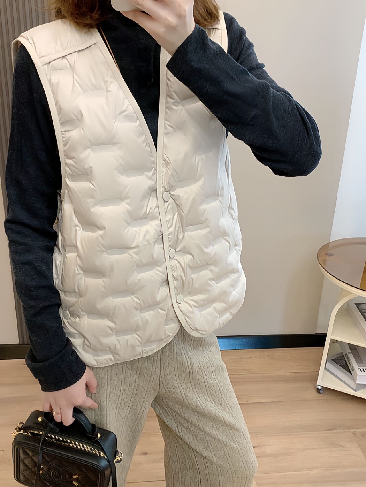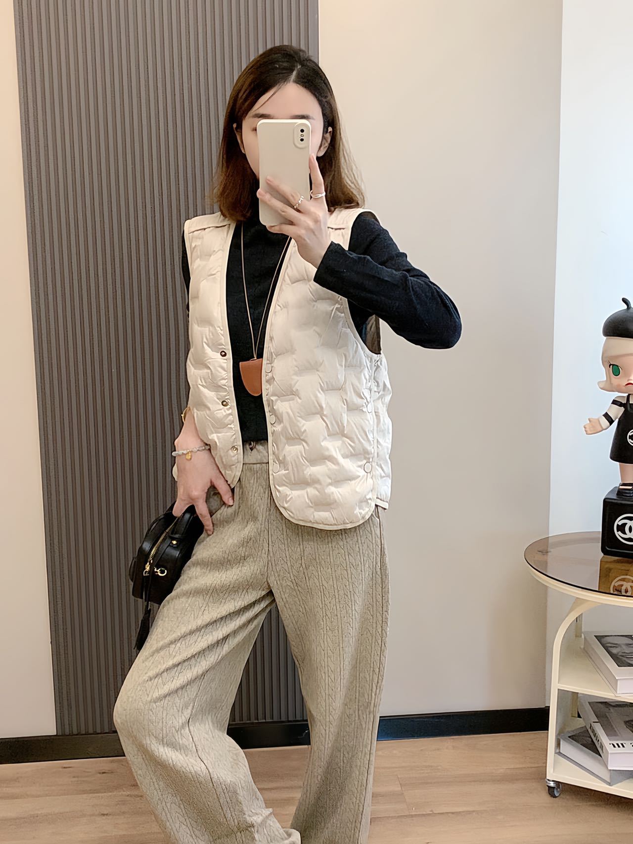 Chaleco Ligero de Plumón para Mujer Estilo Corto 2025 Otoño/Invierno Nuevo Cuello en V Sencillo Holgado Versátil Sin Mangas Ropa Exterior
