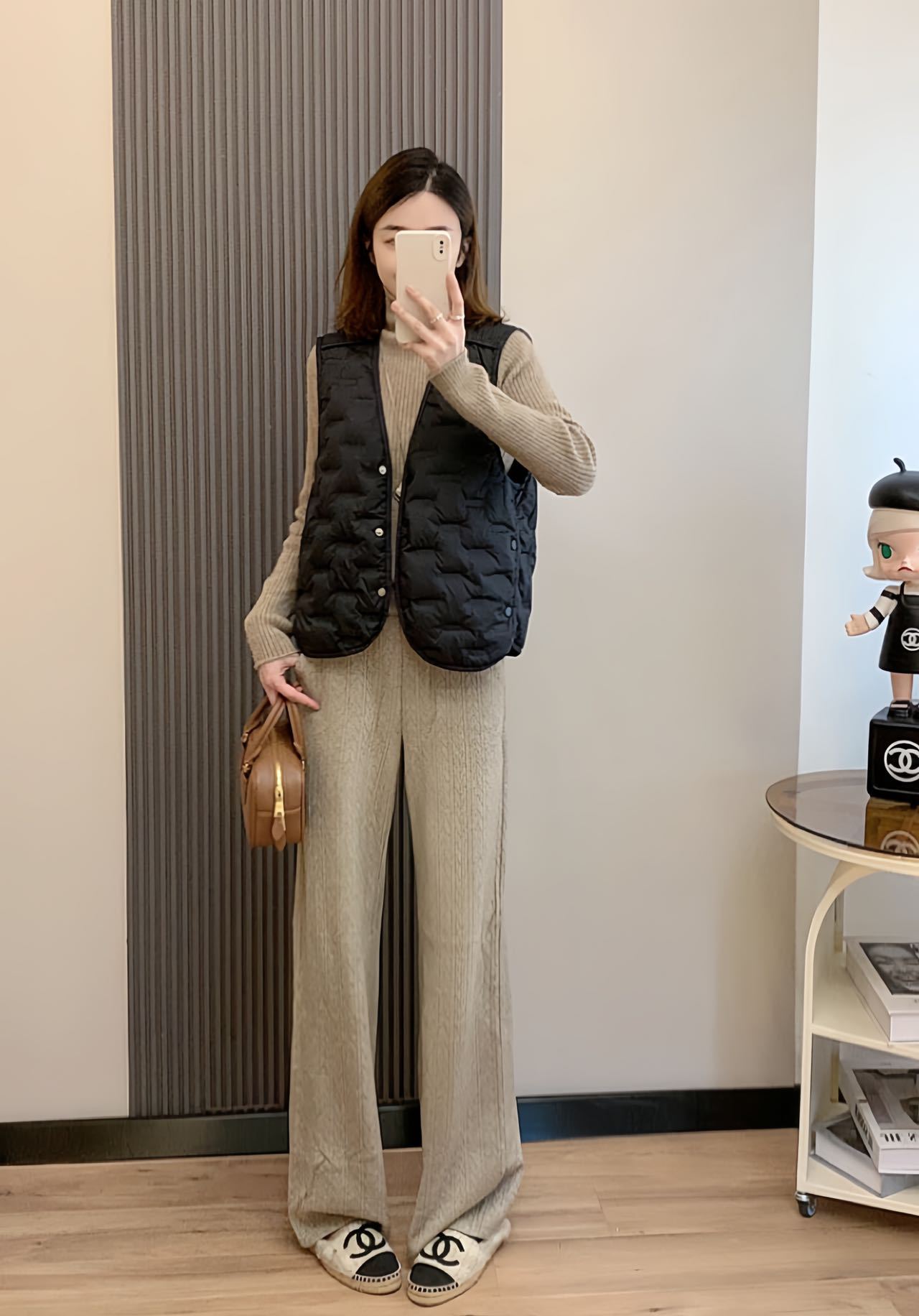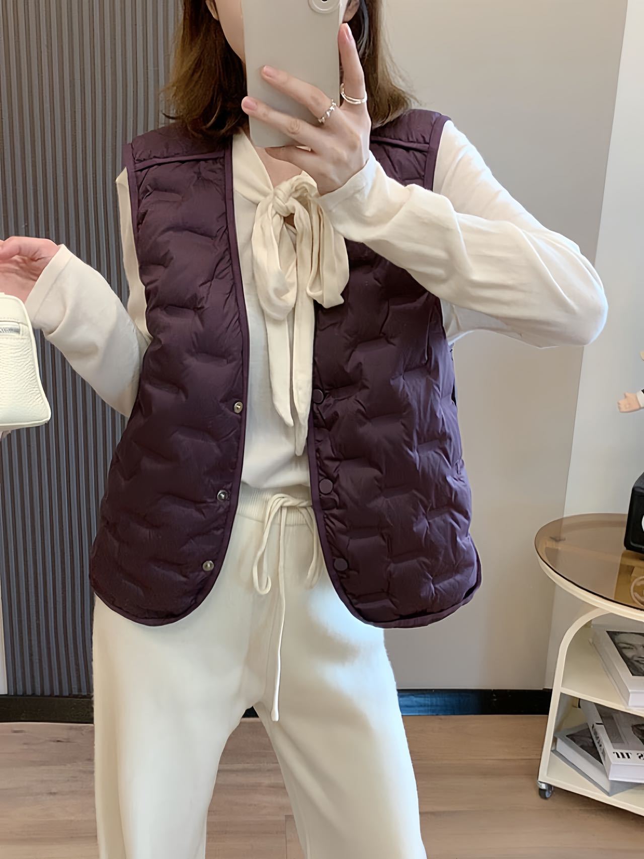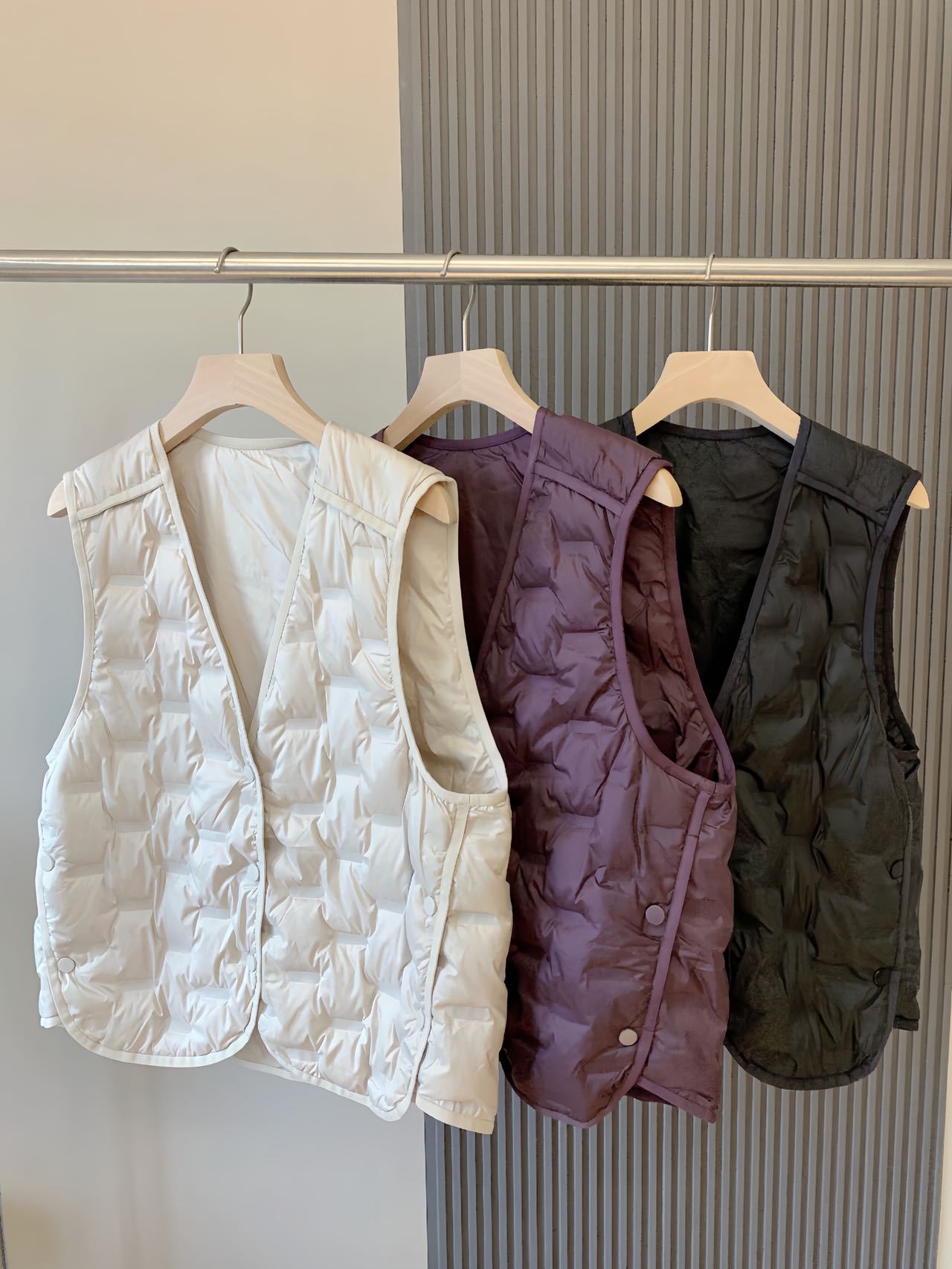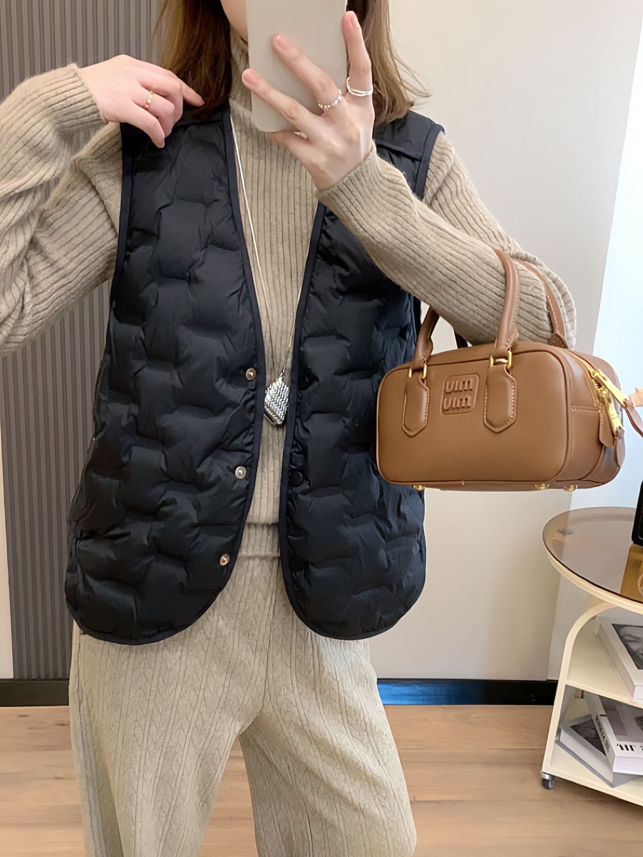 Chaleco Ligero de Plumón para Mujer Estilo Corto 2025 Otoño/Invierno Nuevo Cuello en V Sencillo Holgado Versátil Sin Mangas Ropa Exterior