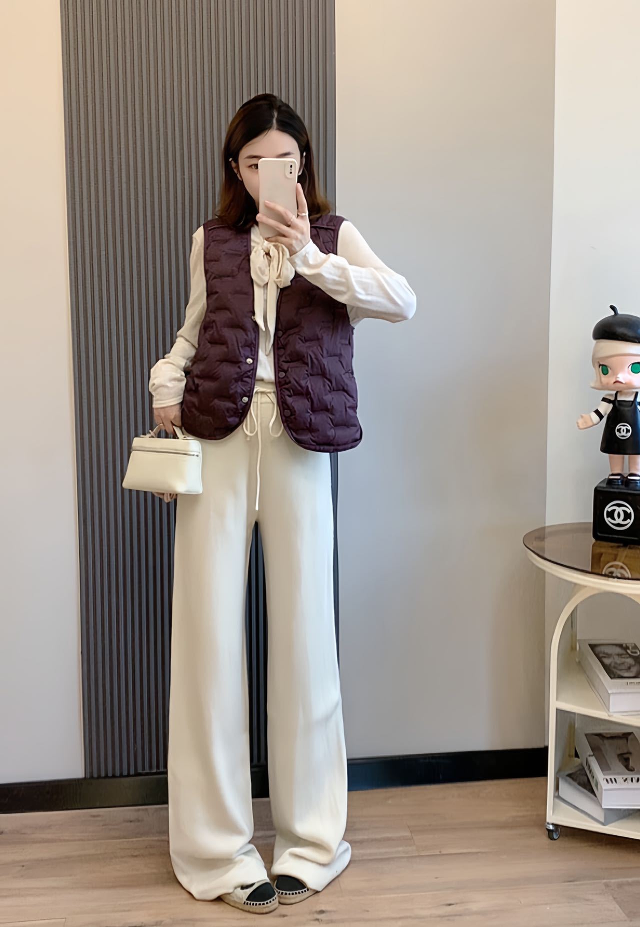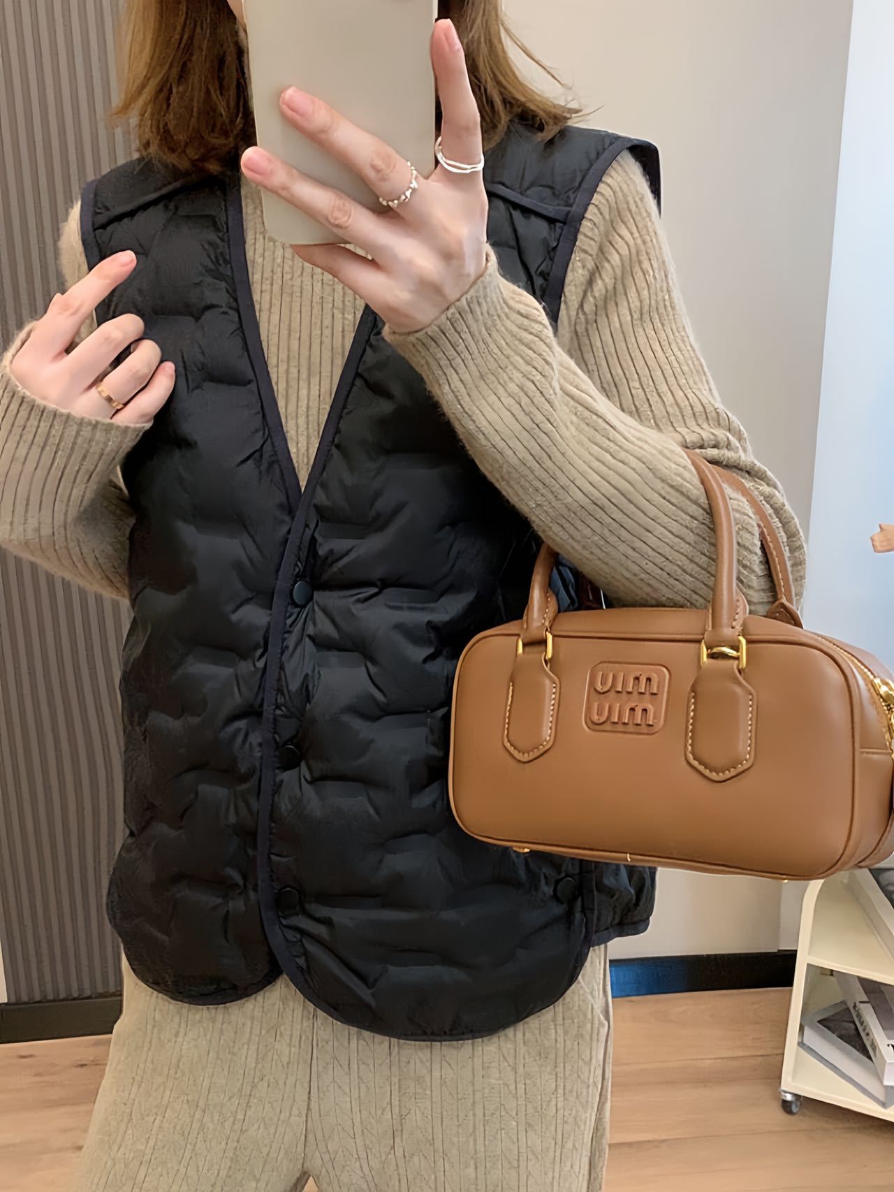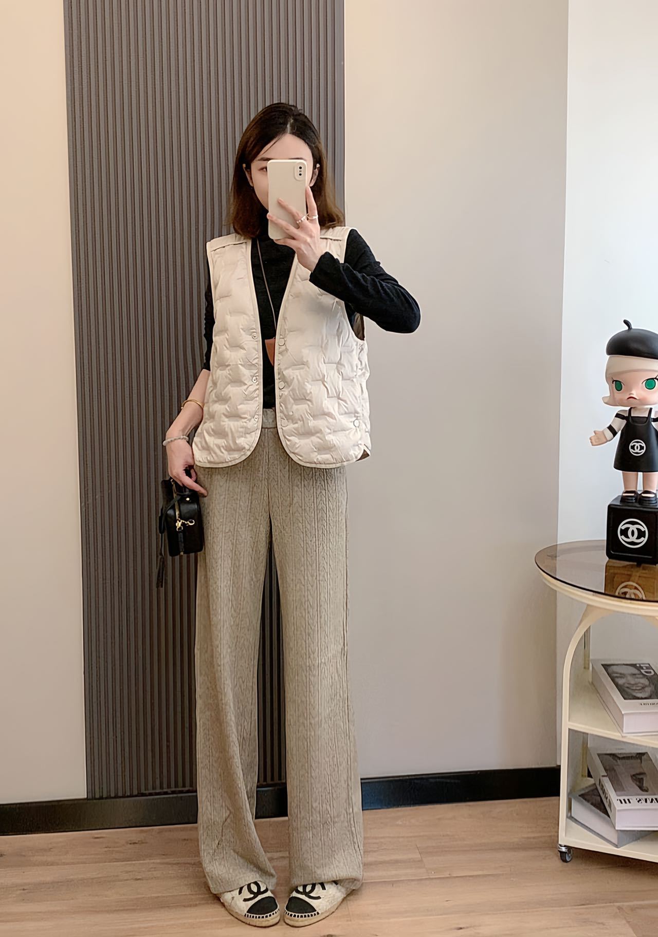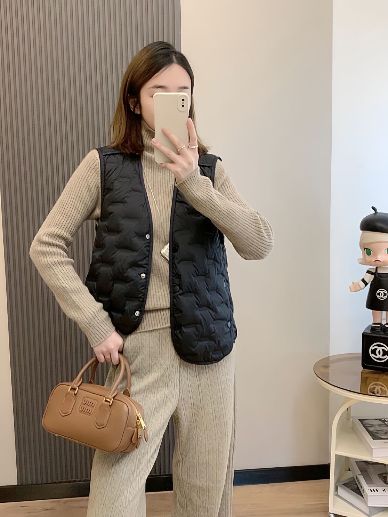 Chaleco Ligero de Plumón para Mujer Estilo Corto 2025 Otoño/Invierno Nuevo Cuello en V Sencillo Holgado Versátil Sin Mangas Ropa Exterior