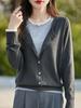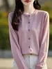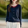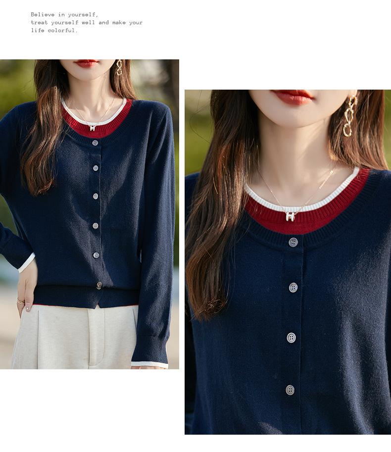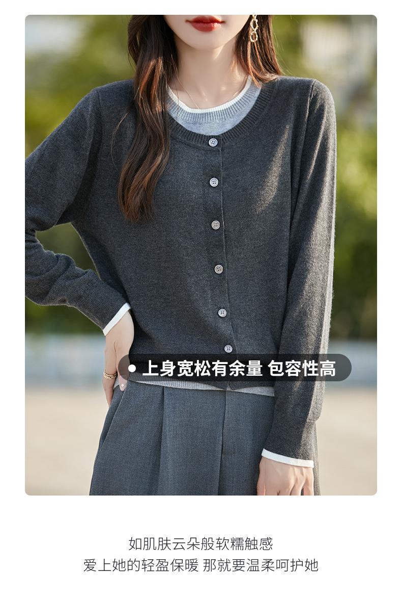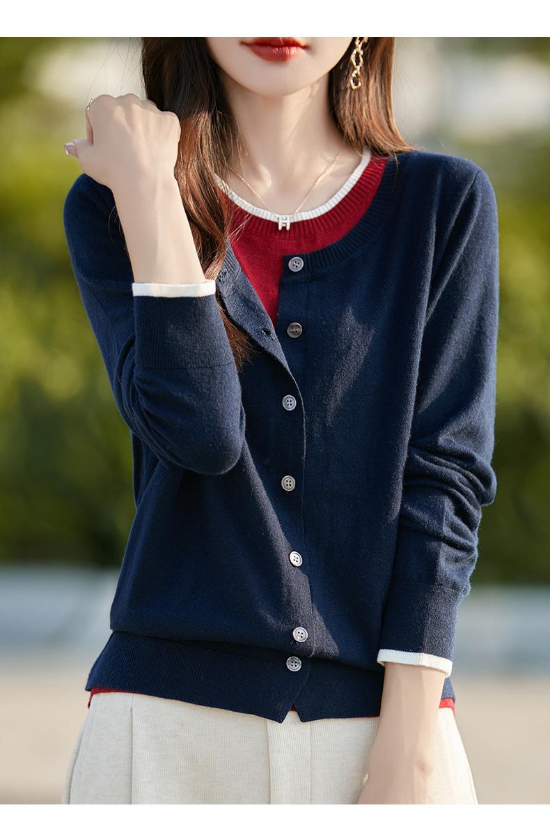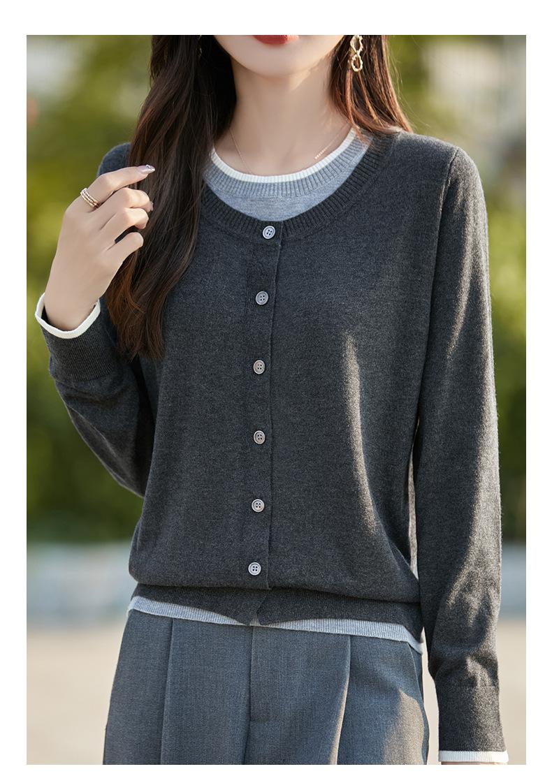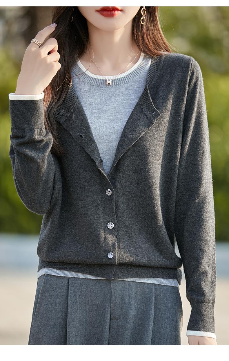 Cárdigan de Punto de Lana Fina Imitación Nuevo Estilo Otoño/Invierno 2025 para Mujer Bloque de Color Cuello Redondo Suelto Suave Abotonado Exterior Falso de Dos Piezas