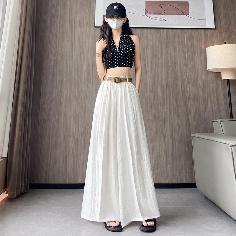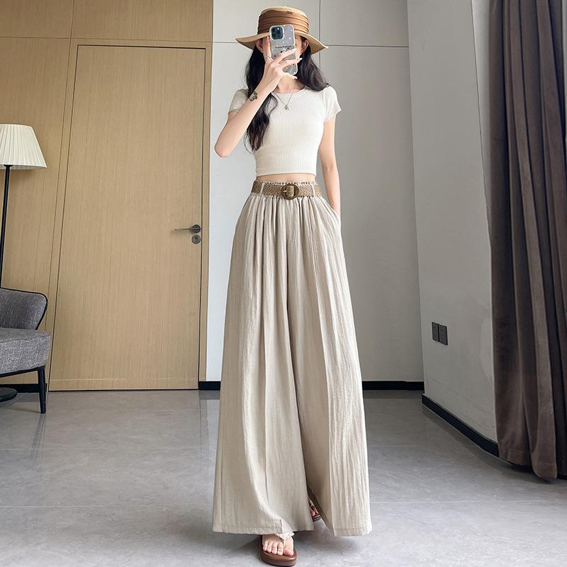 Culottes de Cintura Alta Holgados Versátiles Adelgazantes de Gran Vuelo Hasta el Piso Pantalones Casuales de Verano Delgados con Caída de Seda Helada Pantalones de Pierna Ancha