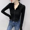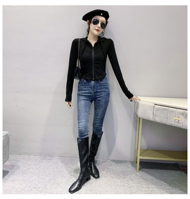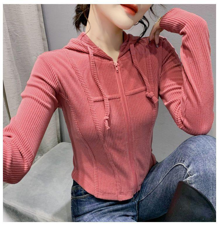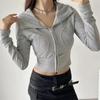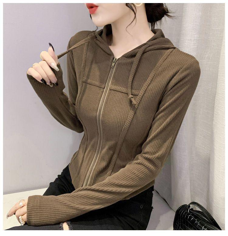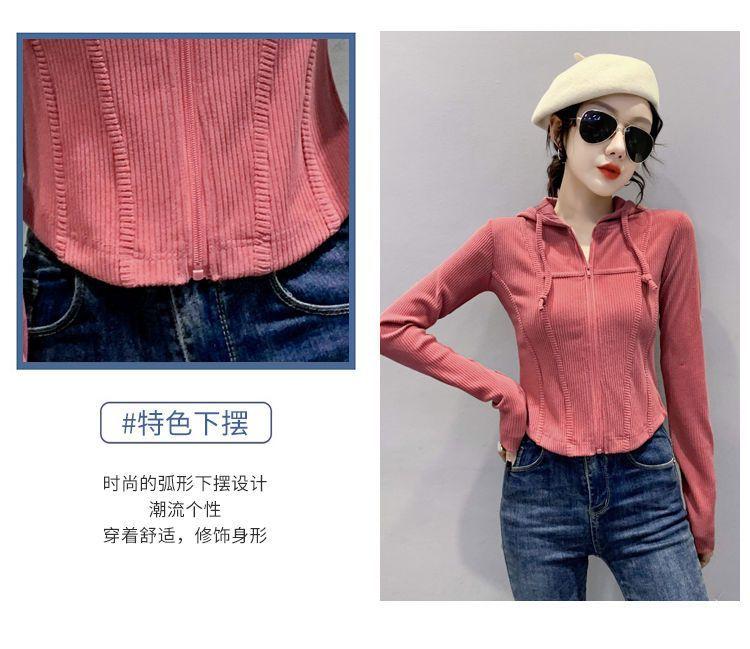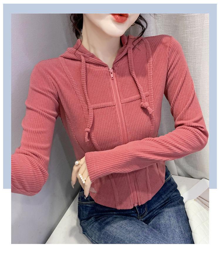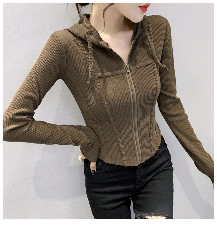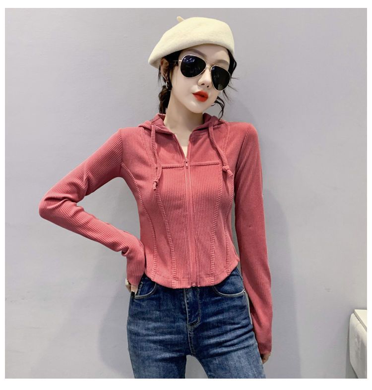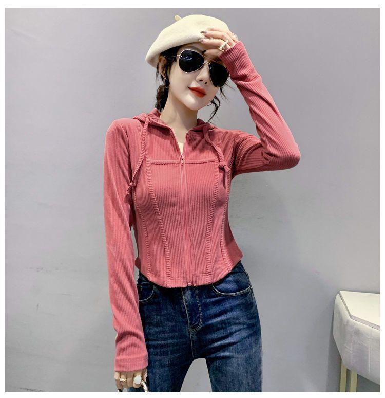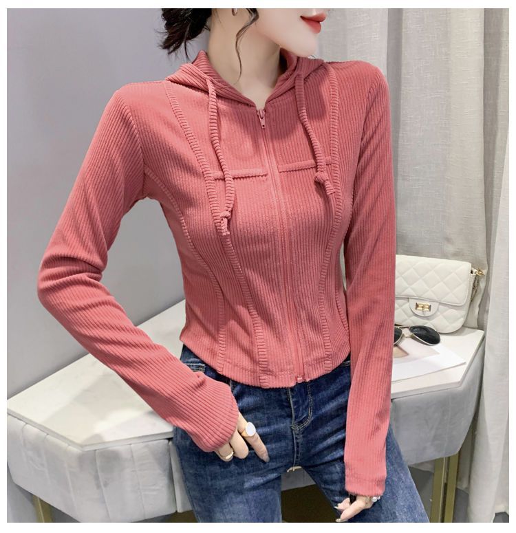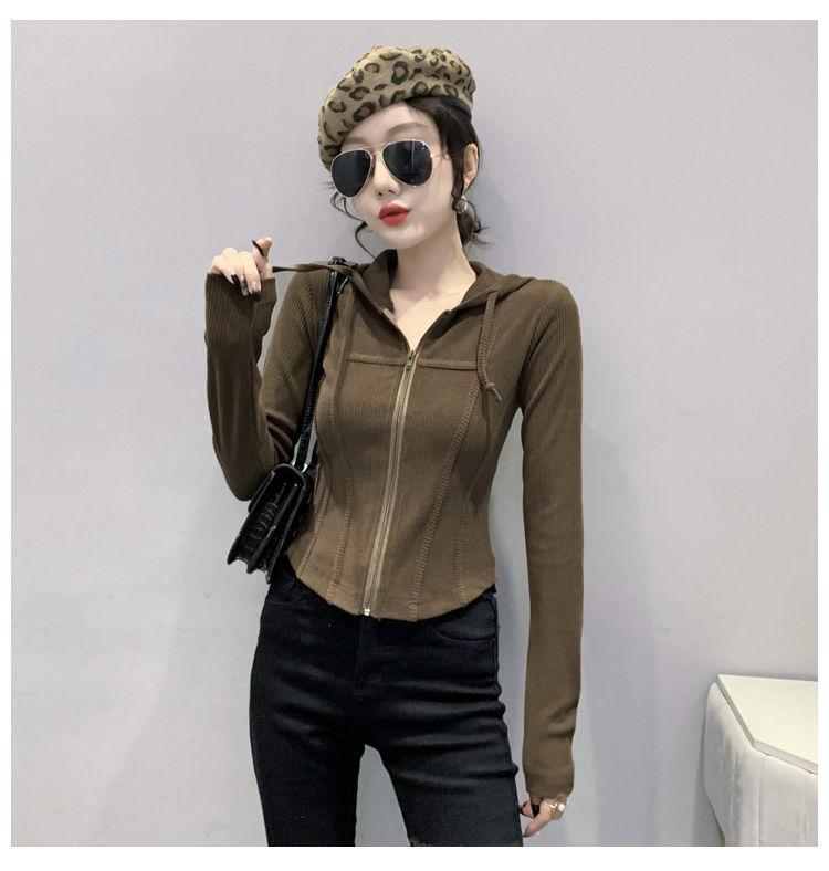Top deportivo con capucha, cordón ajustable, patchwork y cremallera para mujer, nuevo para primavera y otoño 2025, corte ajustado y favorecedor, chaqueta corta con temperamento