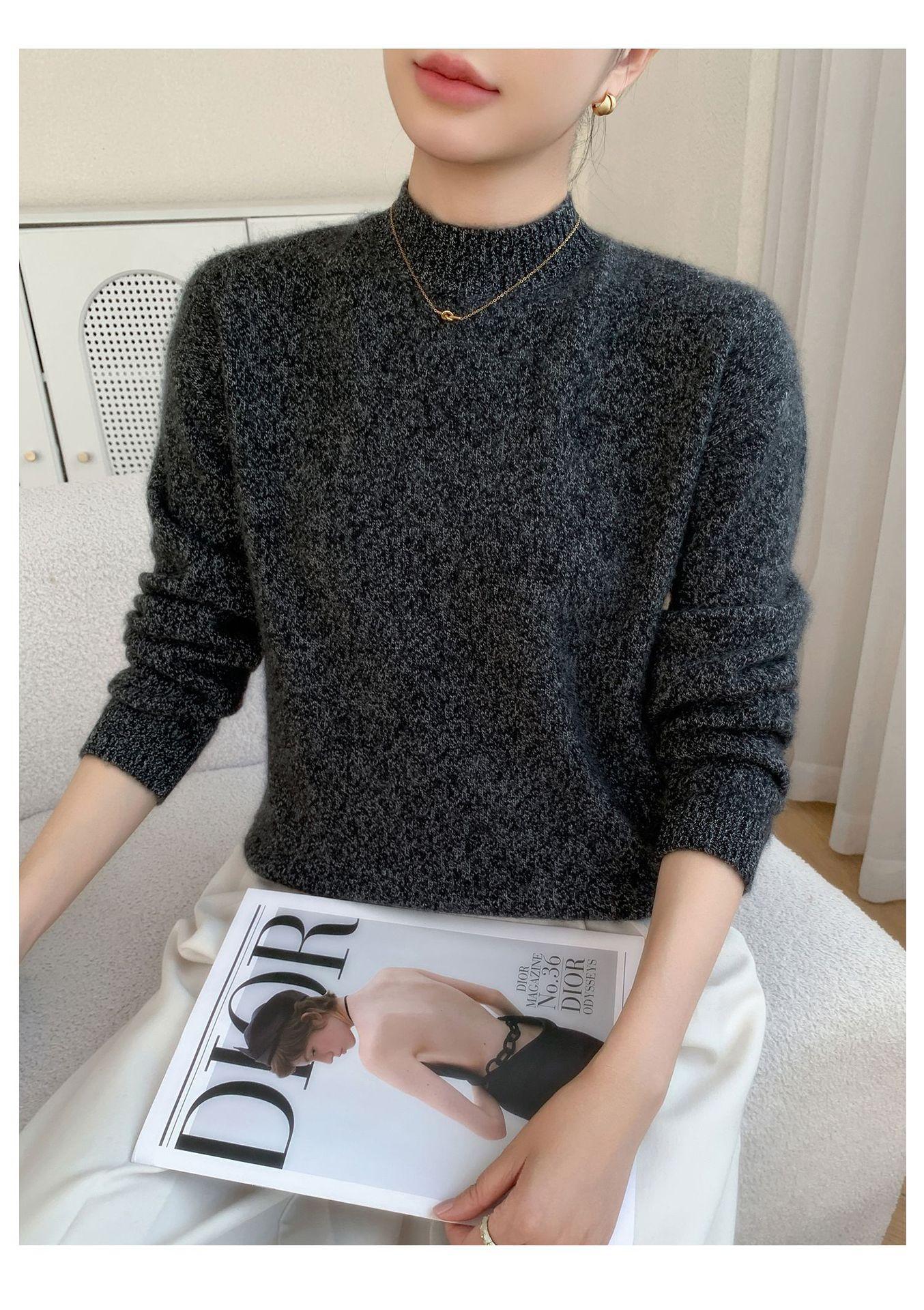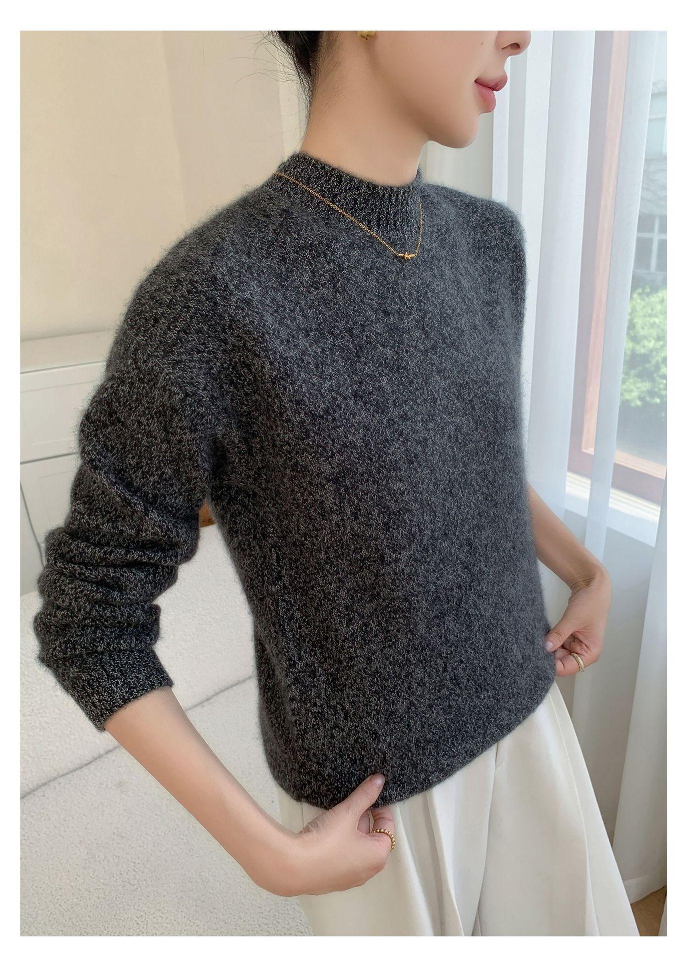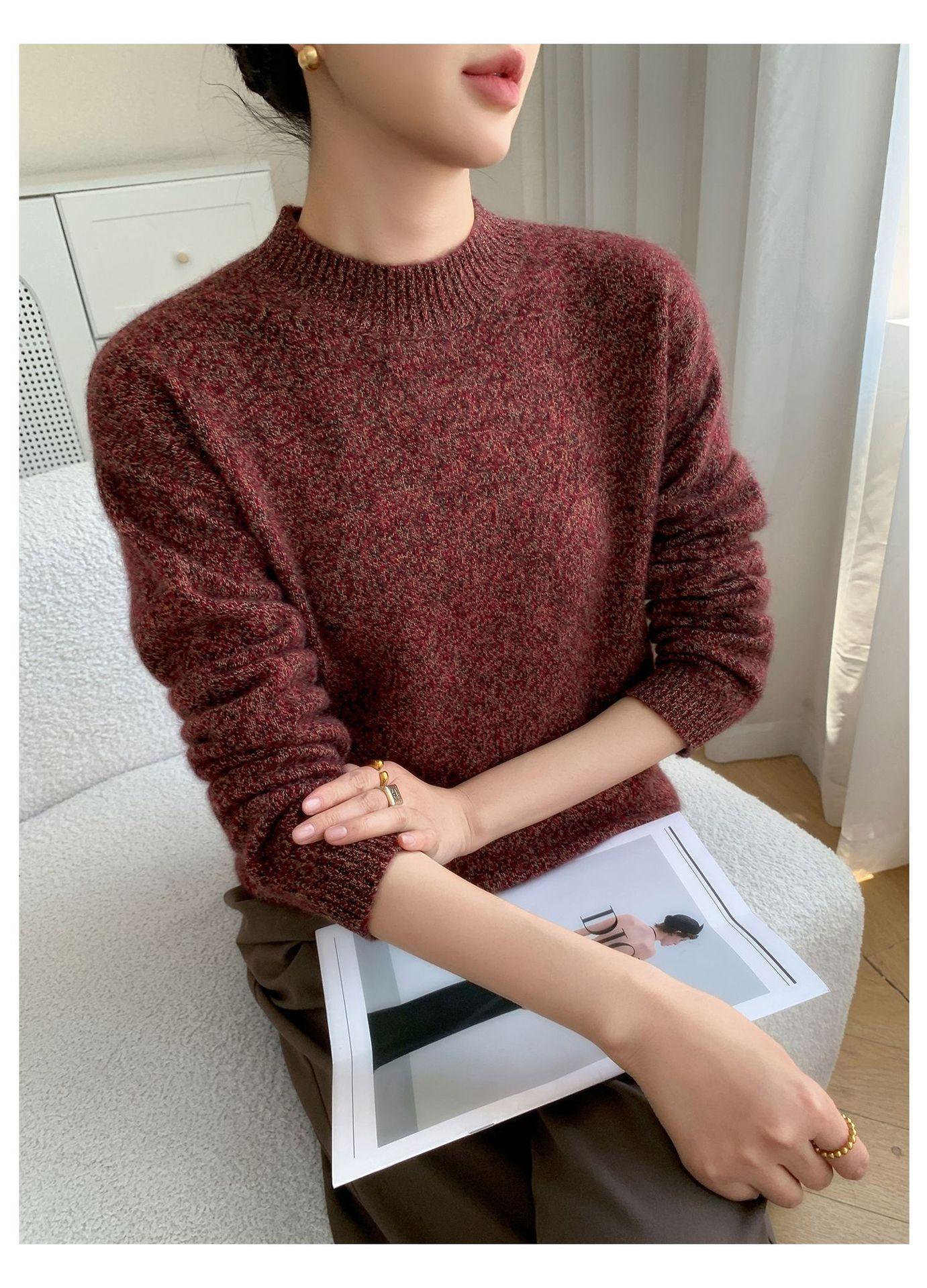 Suéter de Cachemira de Cuello Redondo Nuevo Invierno 2025 para Mujer, Tejido Grueso de Hombro Caído Marl Holgado Adelgazante, Capa Base Tejida Cálida de Lana