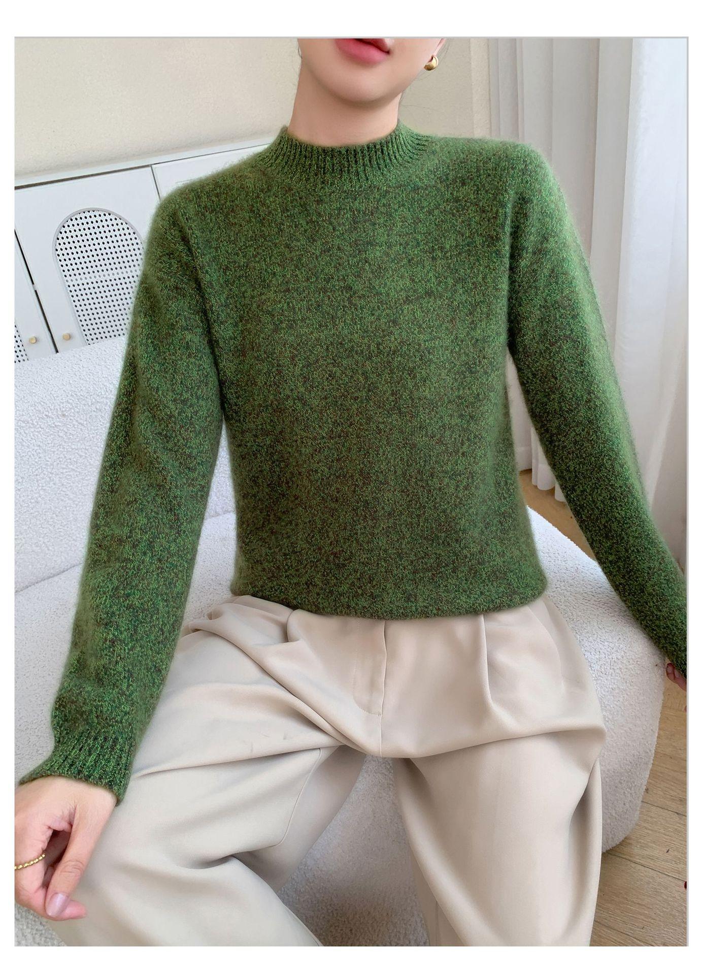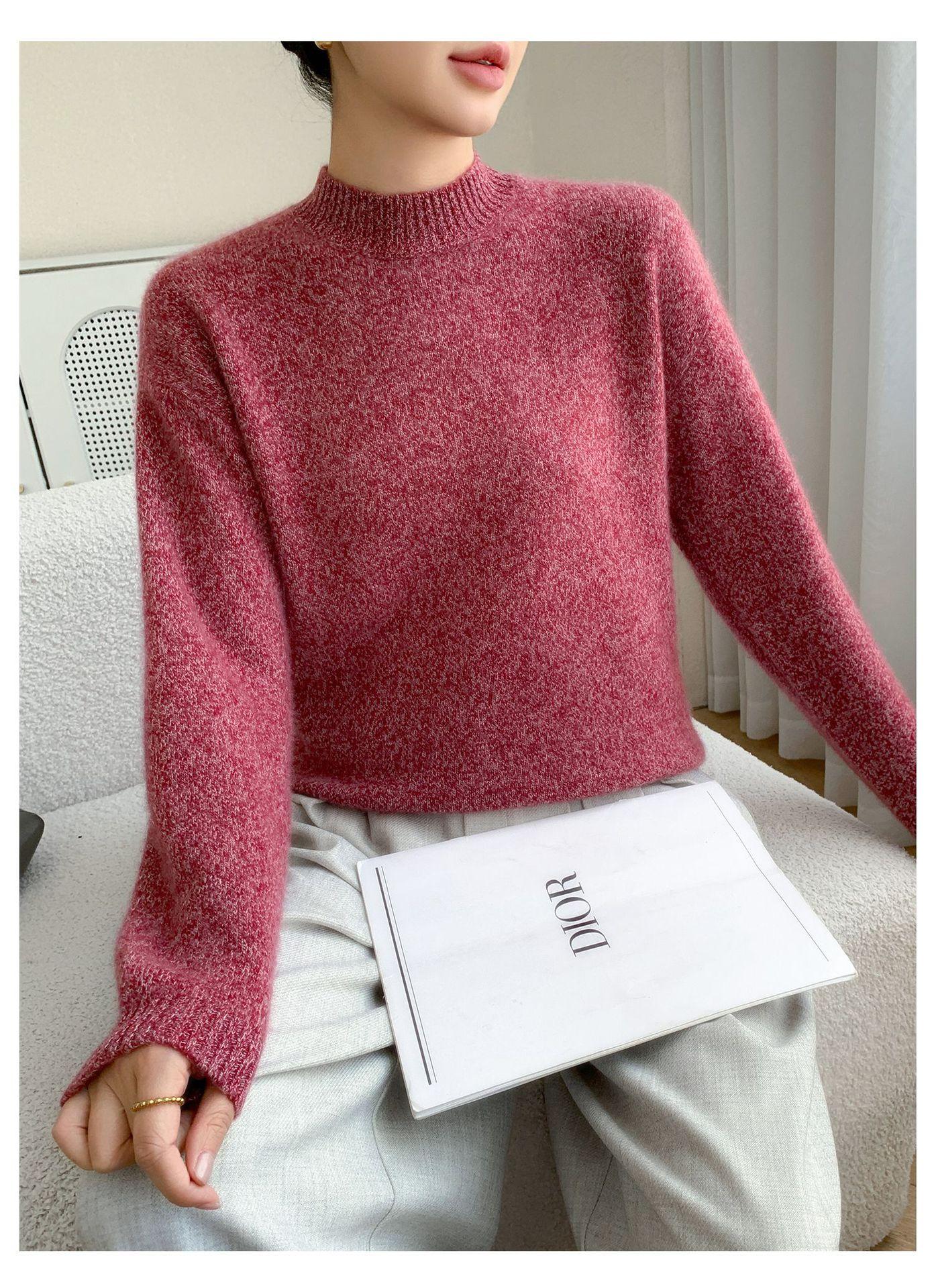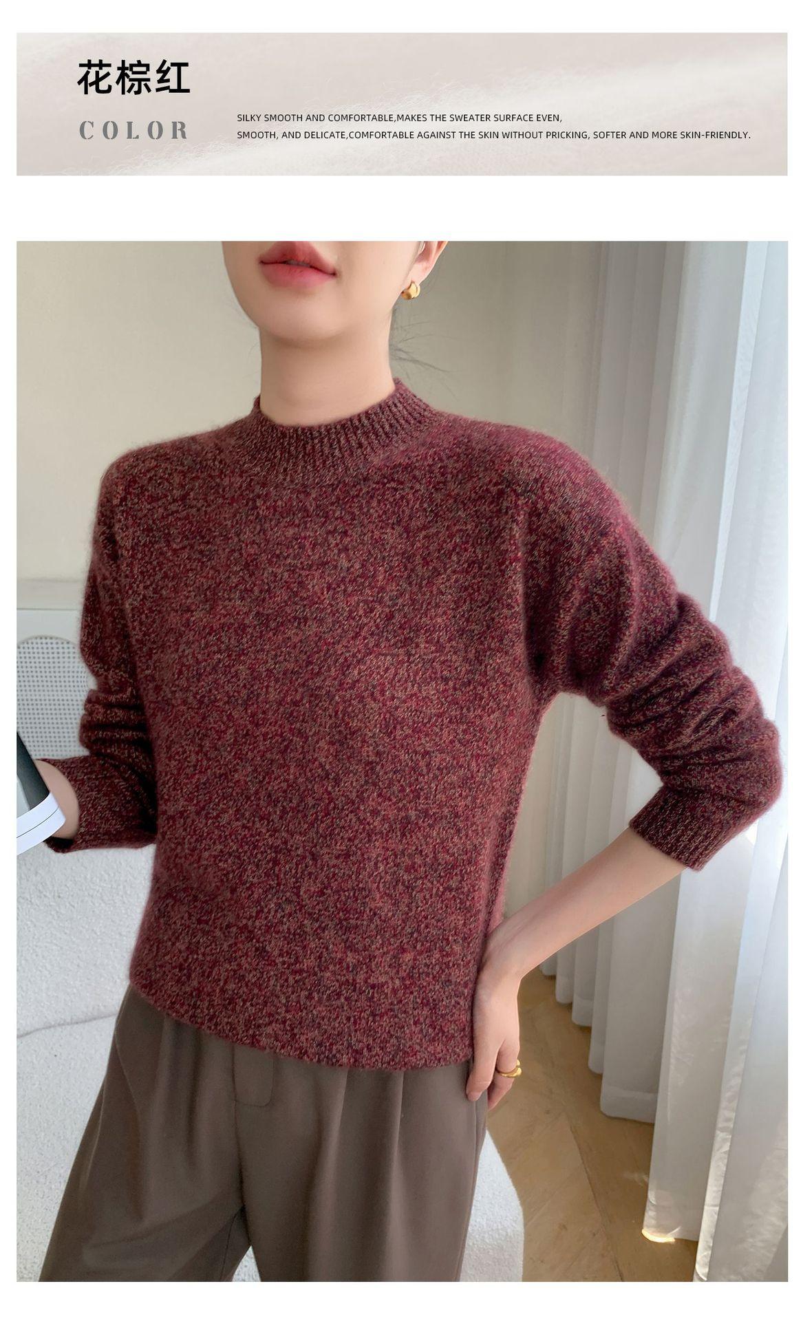Suéter de Cachemira de Cuello Redondo Nuevo Invierno 2025 para Mujer, Tejido Grueso de Hombro Caído Marl Holgado Adelgazante, Capa Base Tejida Cálida de Lana