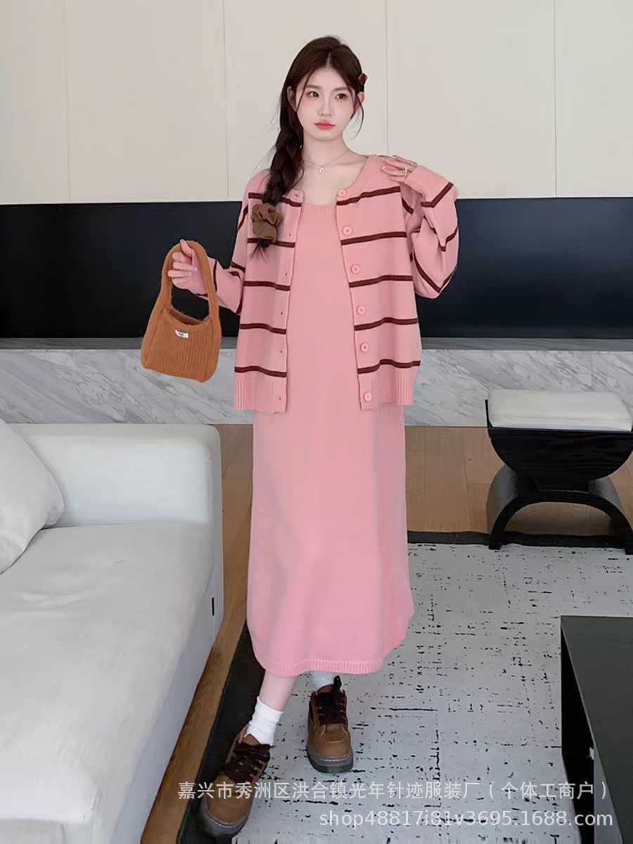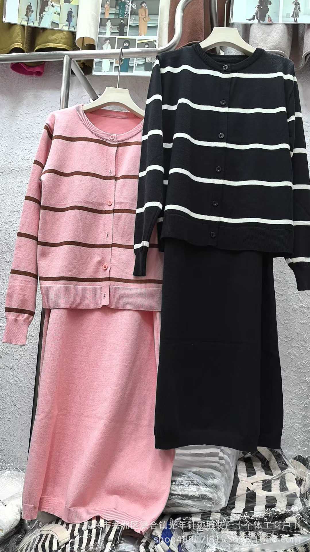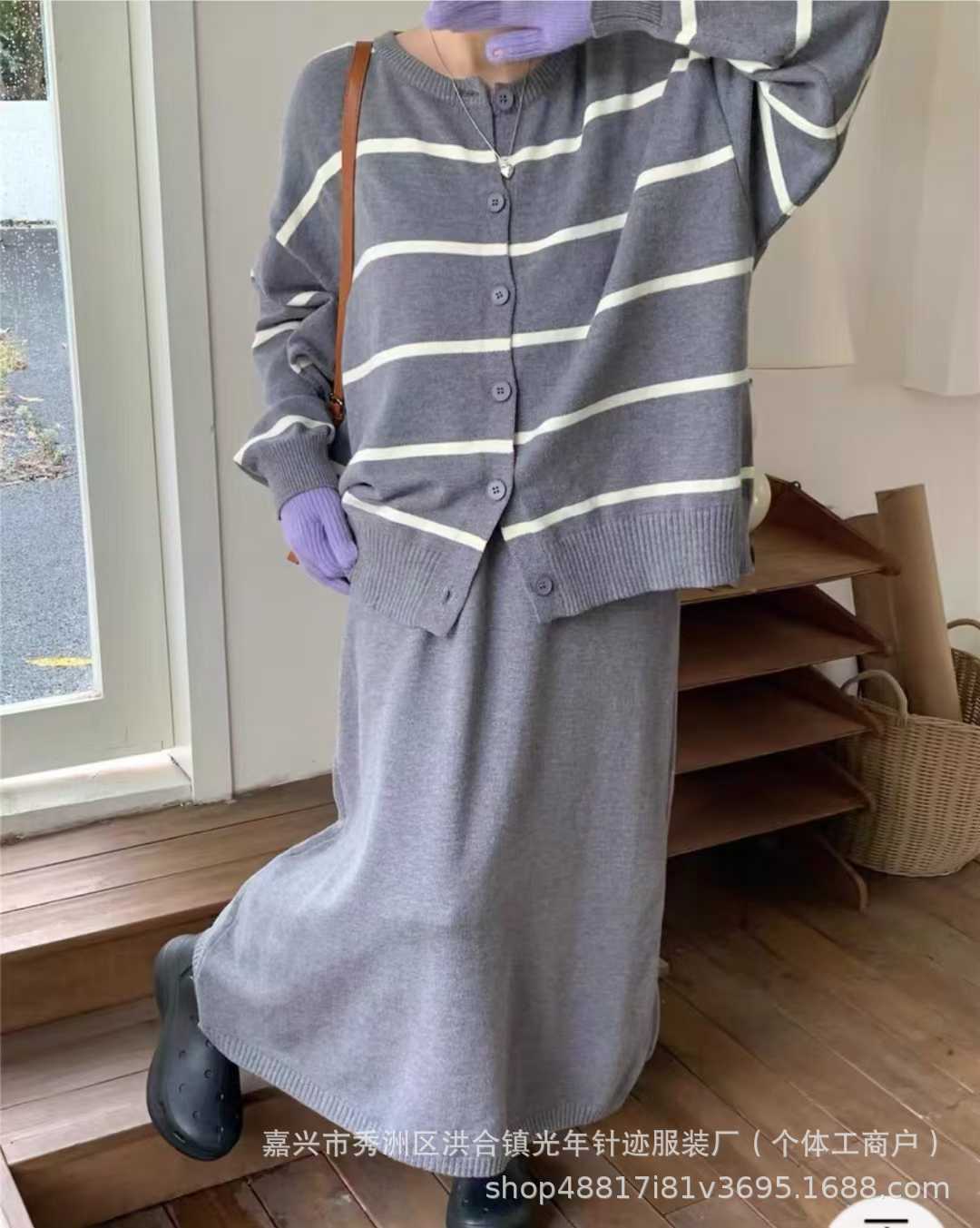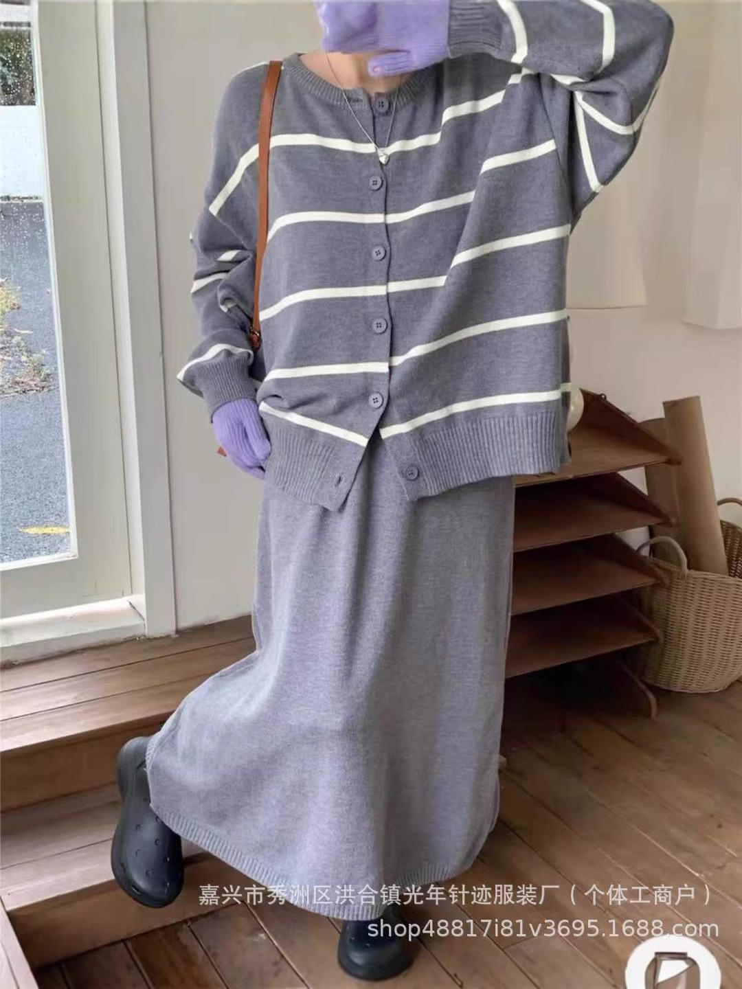 2025 Otoño/Invierno Nuevo Vestido Suelto de Dos Piezas Moda Tejido Cuello Redondo Set de Punto Suéter Ropa de Mujer