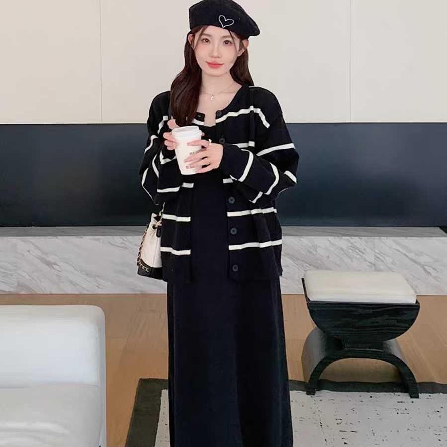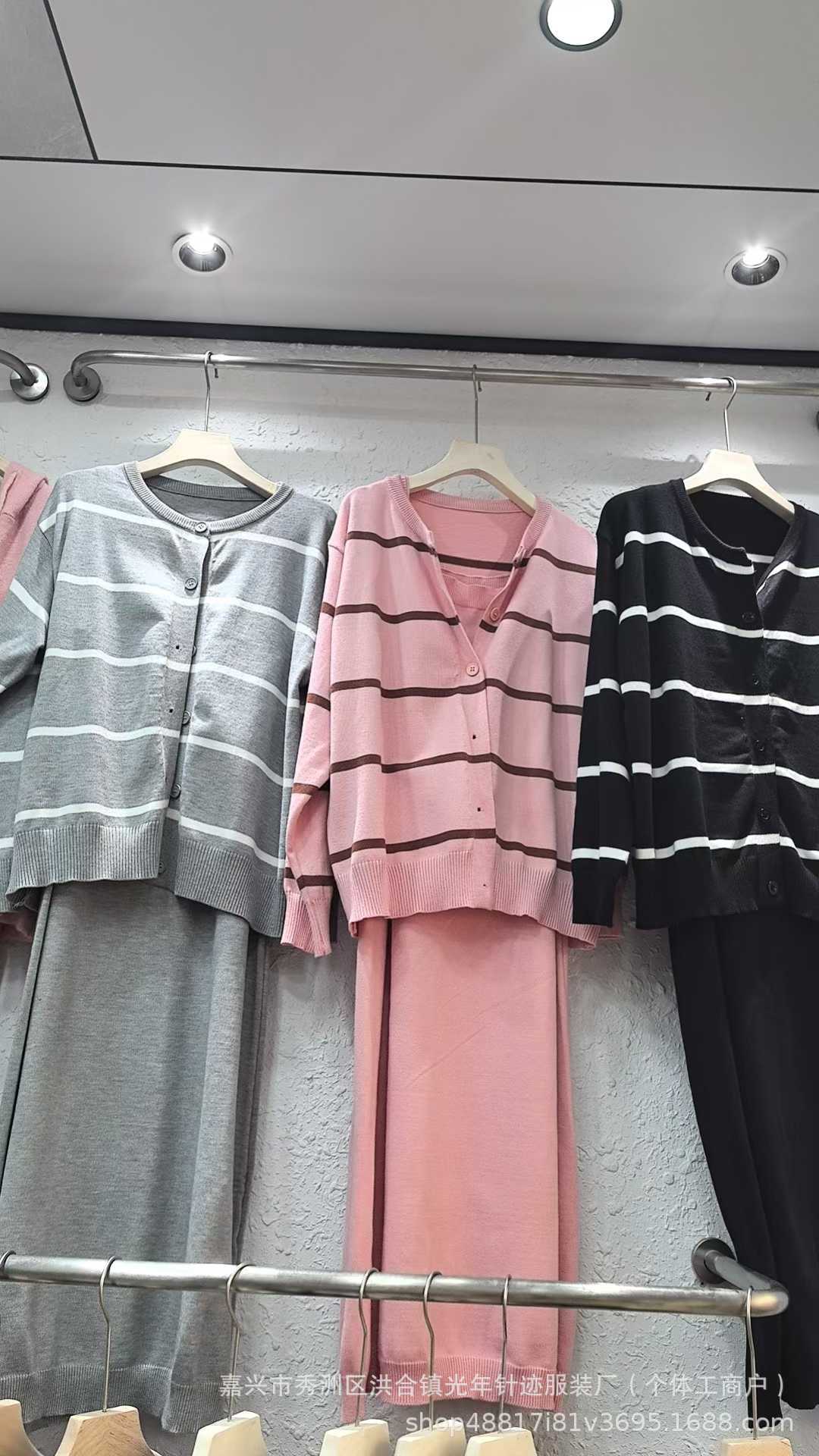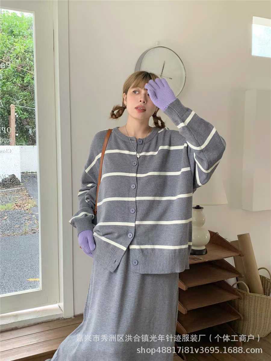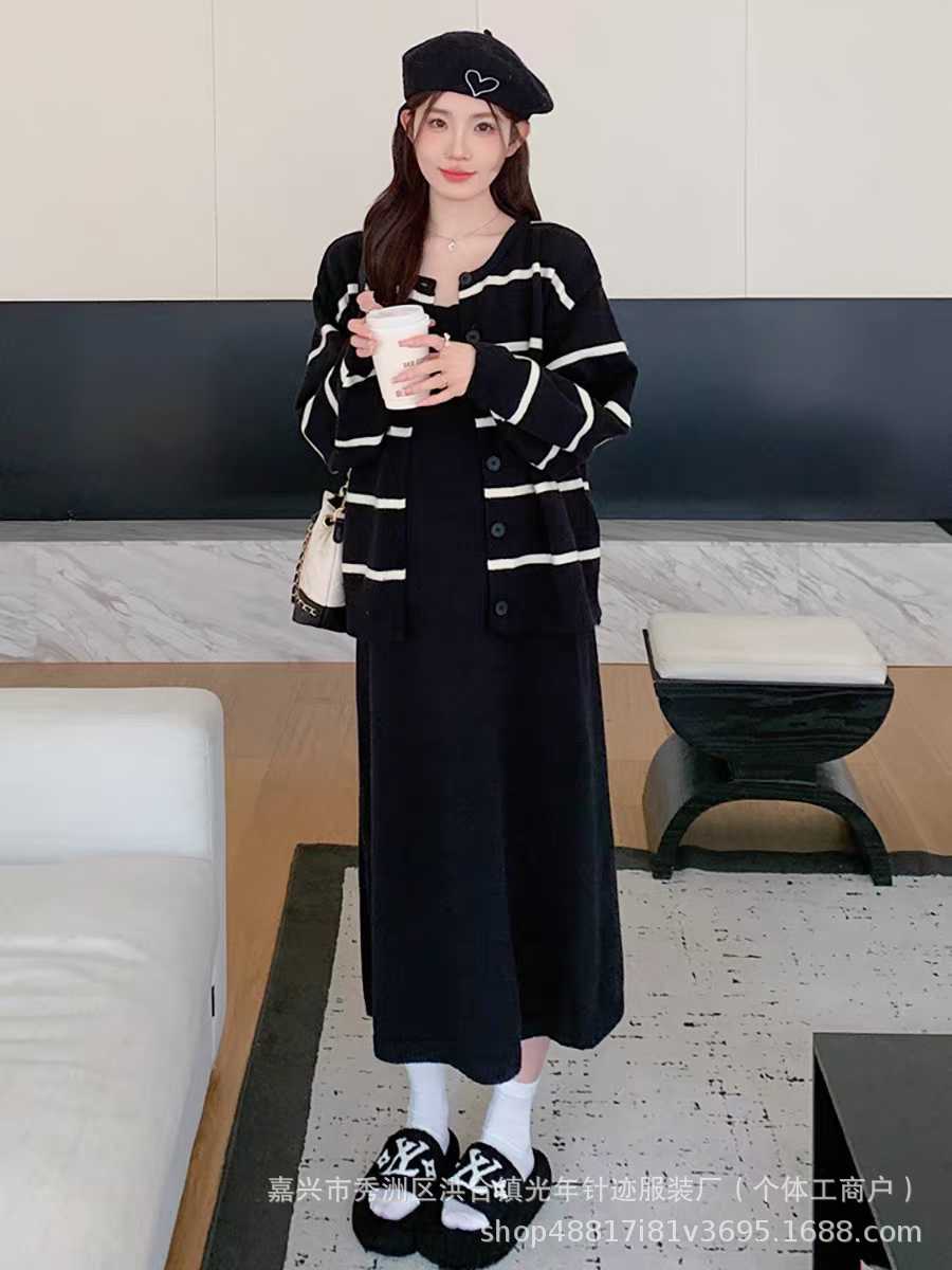 2025 Otoño/Invierno Nuevo Vestido Suelto de Dos Piezas Moda Tejido Cuello Redondo Set de Punto Suéter Ropa de Mujer