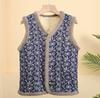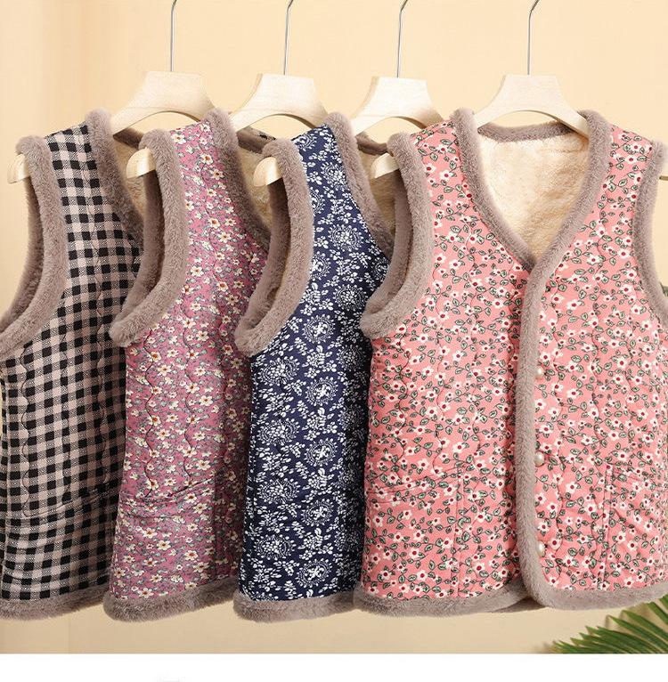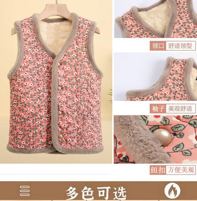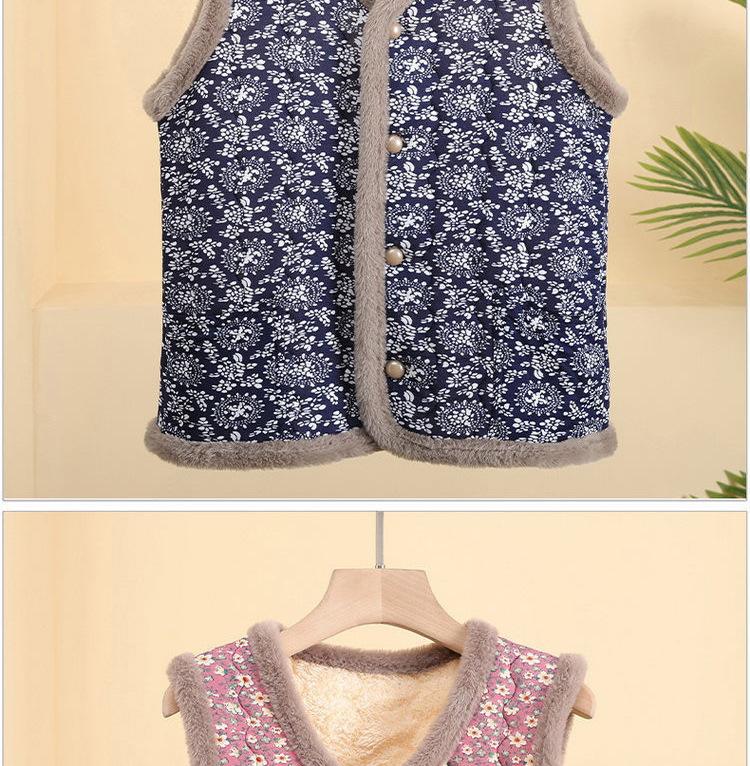 Ropa de Otoño e Invierno para Personas de Mediana Edad y Mayores Nuevo Estilo Chaleco de Cintura para Madre Chaleco Floral de Terciopelo para Abuela Chaqueta Chaleco Grueso Cálido de Algodón y Lino