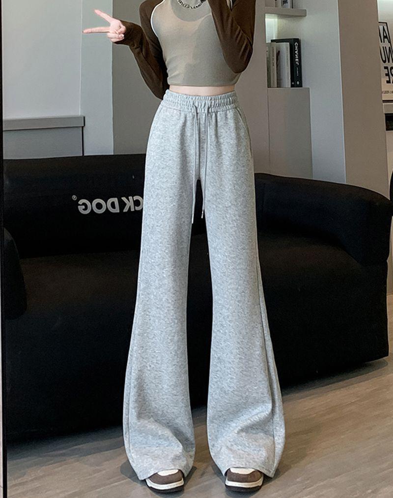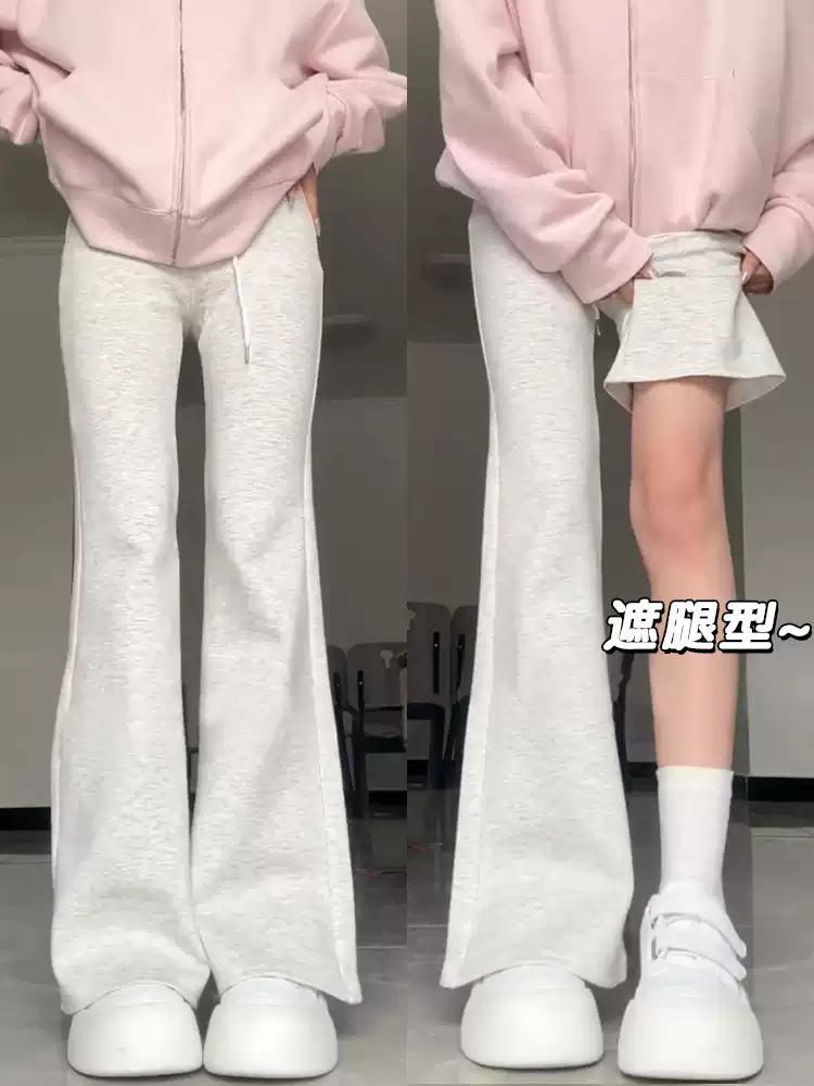 Pantalones casuales negros microacampanados para mujer otoño e invierno delgados elásticos talla extra gordita mm figura de pera adelgazantes deportivos modernos