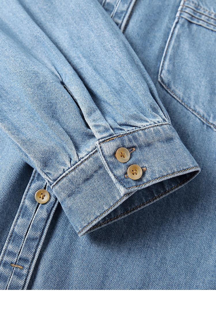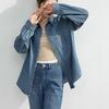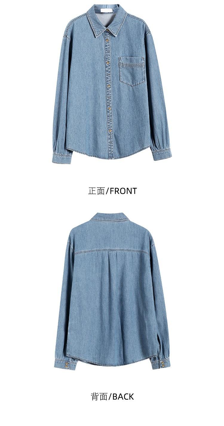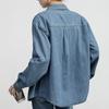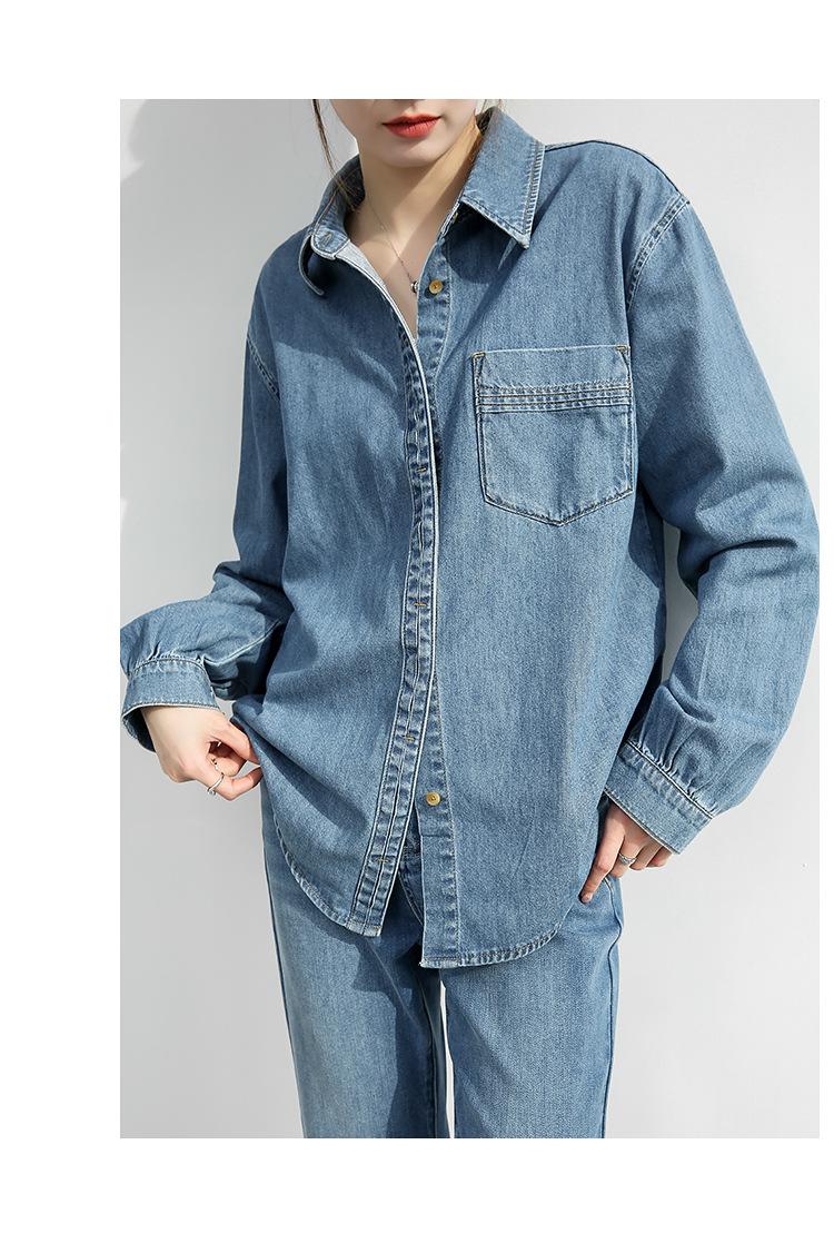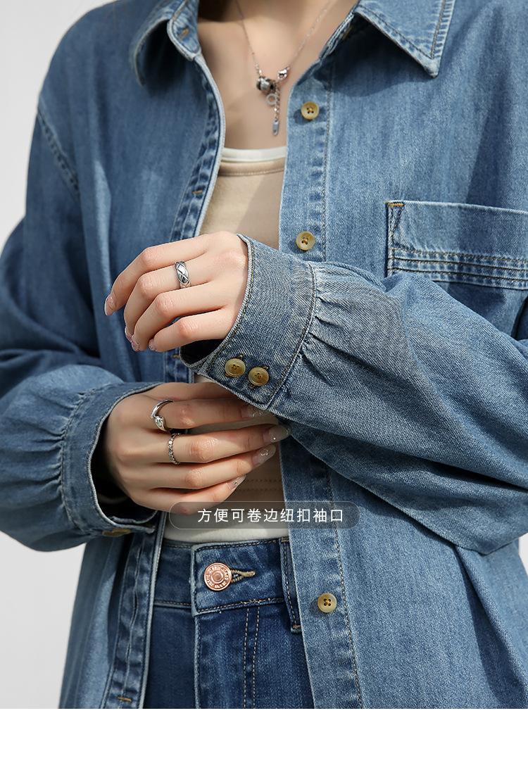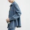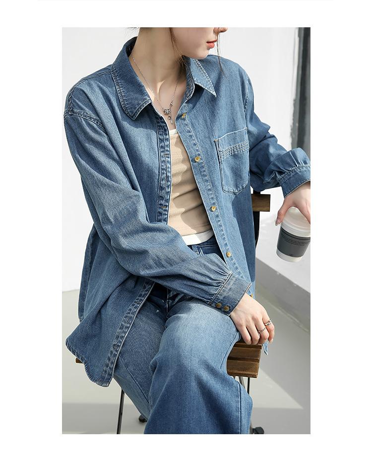 Camisa de mezclilla retro estilo Hong Kong de alta calidad para mujer, azul, con un solo bolsillo, chaqueta de mezclilla suave