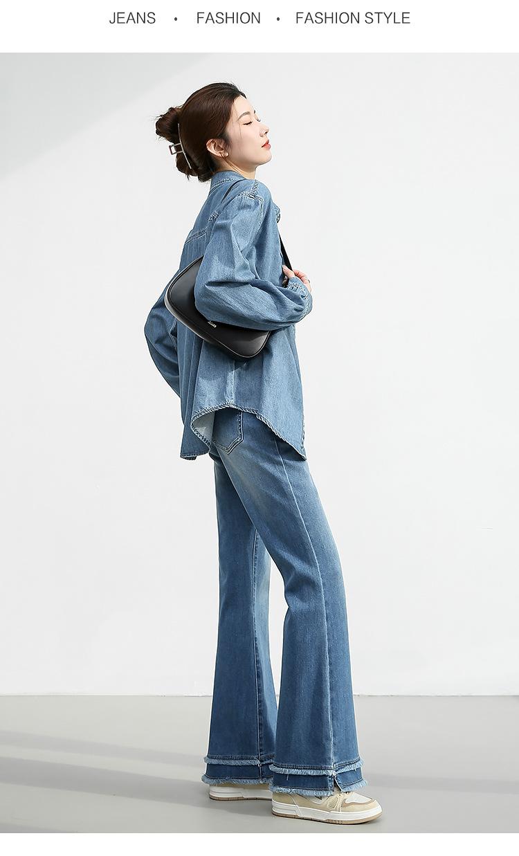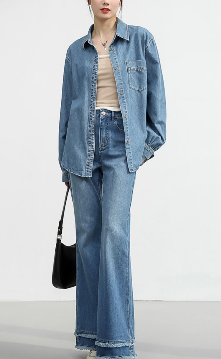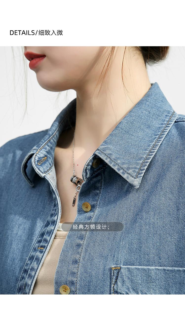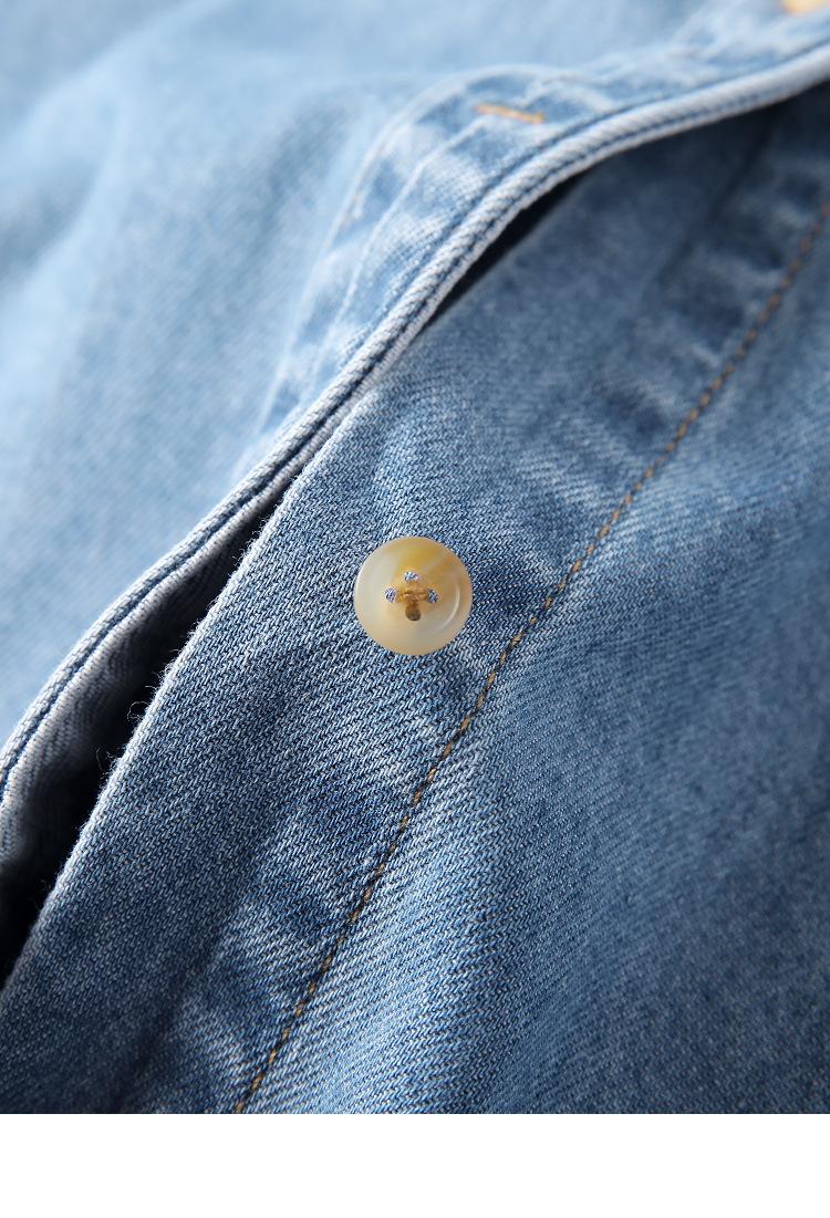 Camisa de mezclilla retro estilo Hong Kong de alta calidad para mujer, azul, con un solo bolsillo, chaqueta de mezclilla suave