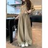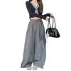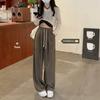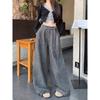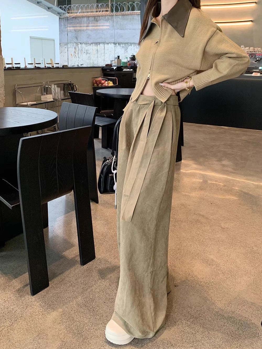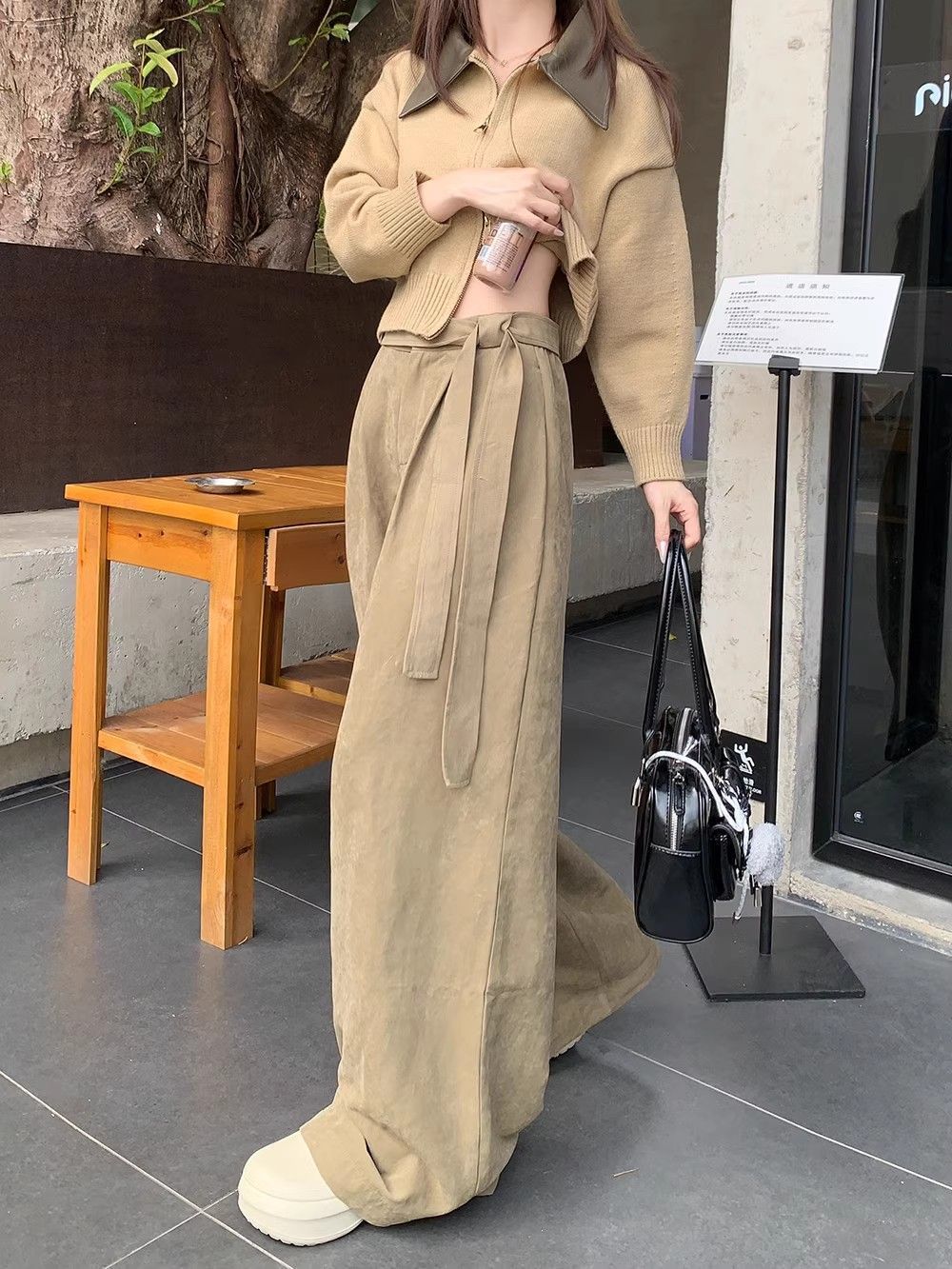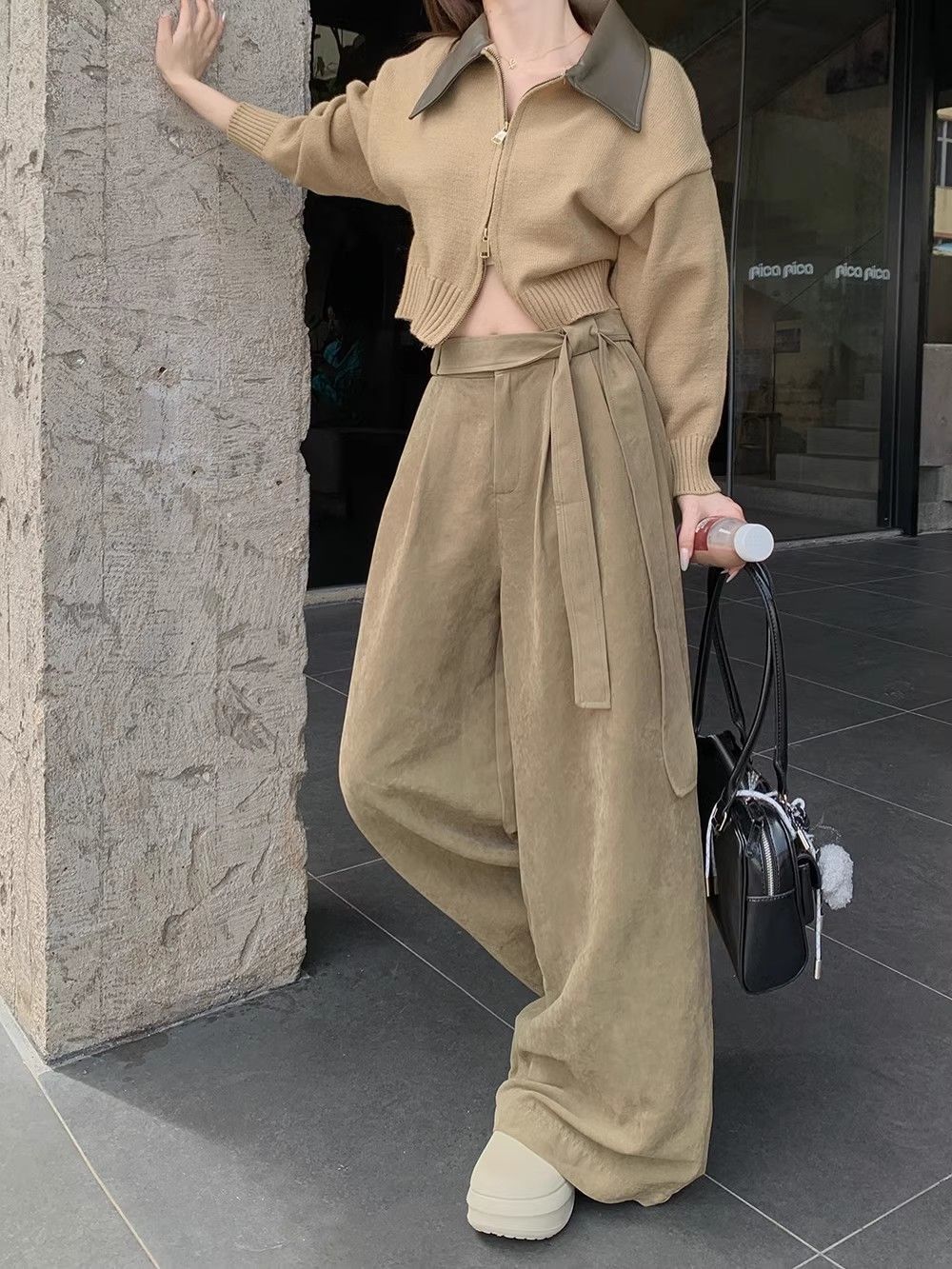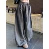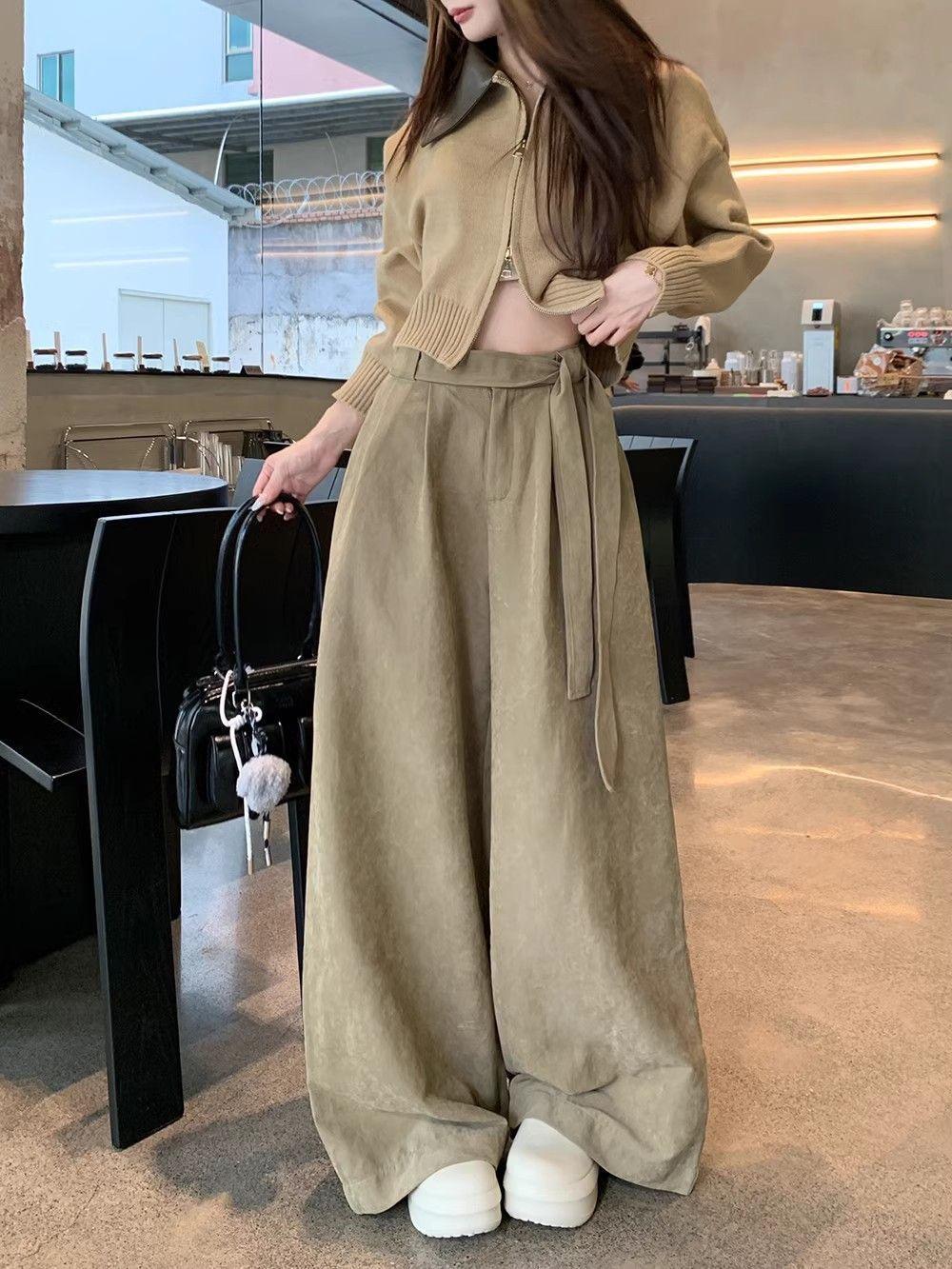 Pantalones casuales de pierna ancha con cinturón gris oscuro nuevo para mujer, verano nuevo, estilo retro de Hong Kong, lavado, caída, pierna recta, pantalones largos