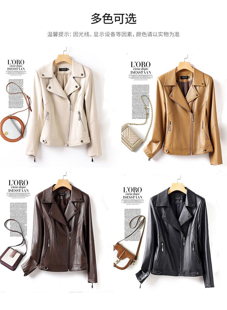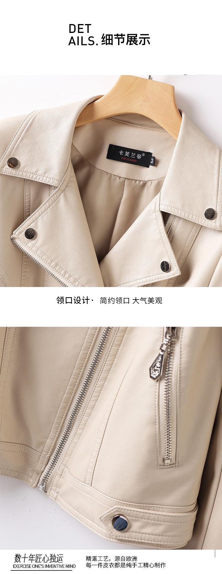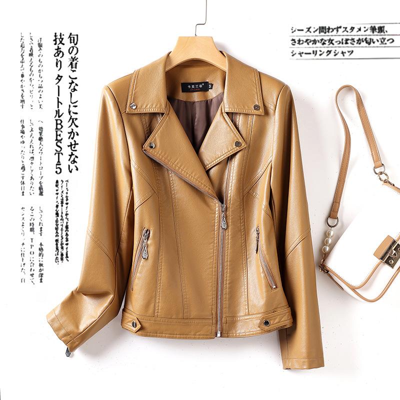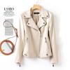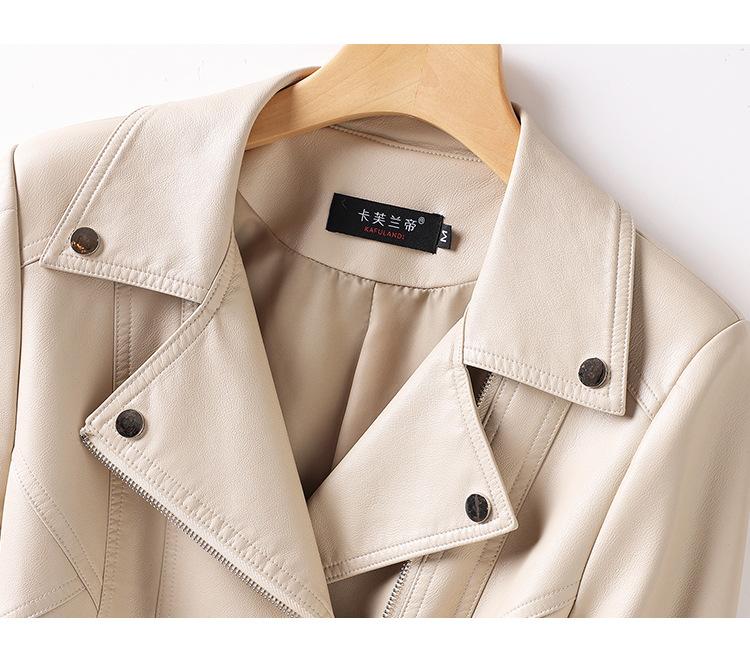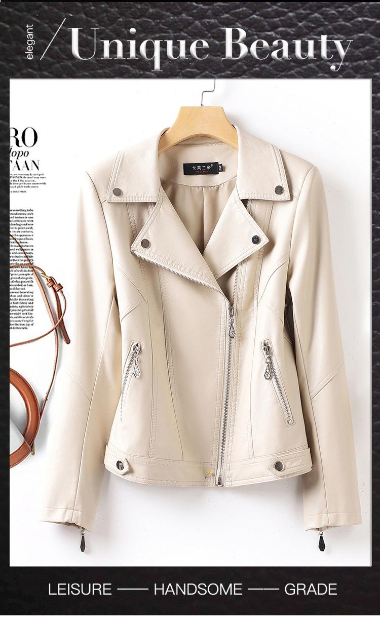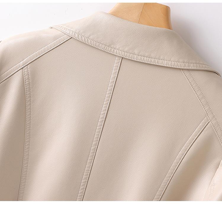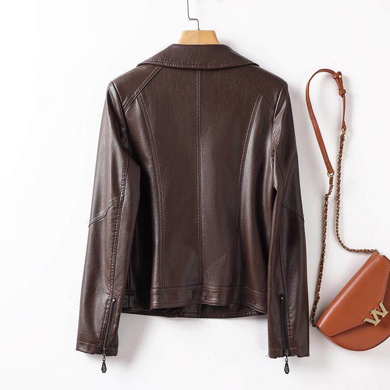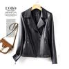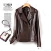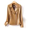 2025 Primavera y Otoño Cuero Genuino Chaqueta de Cuero Mujer Haining Piel de Oveja Traje de Motociclista Ajustado Corto Moda Chaqueta Pequeña Abrigo Solapa