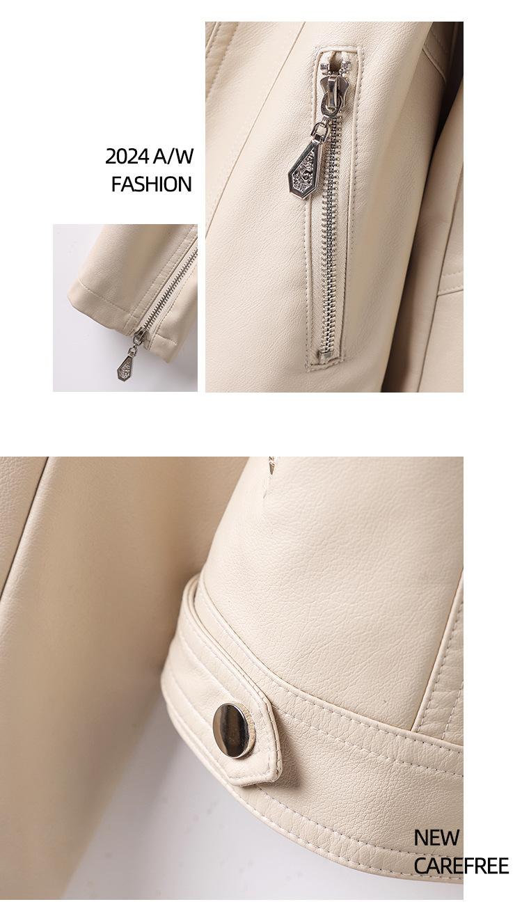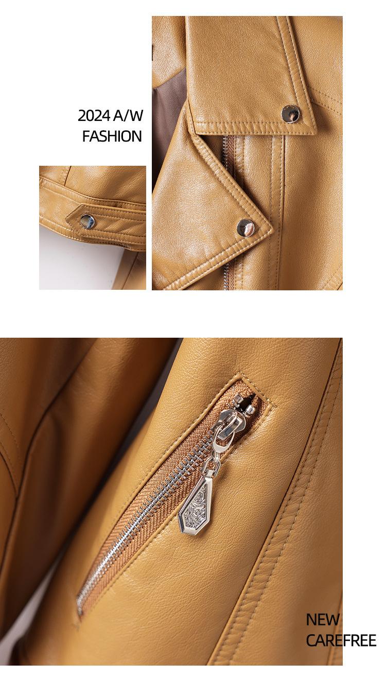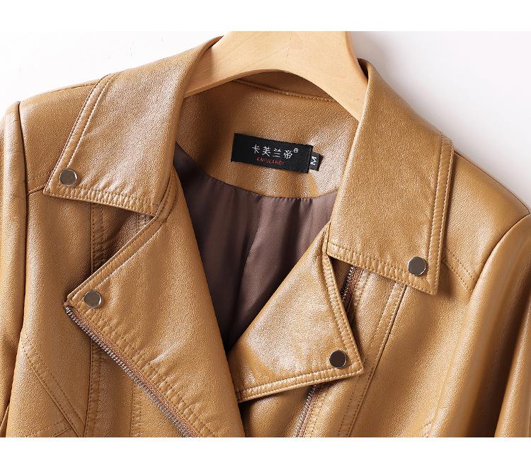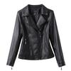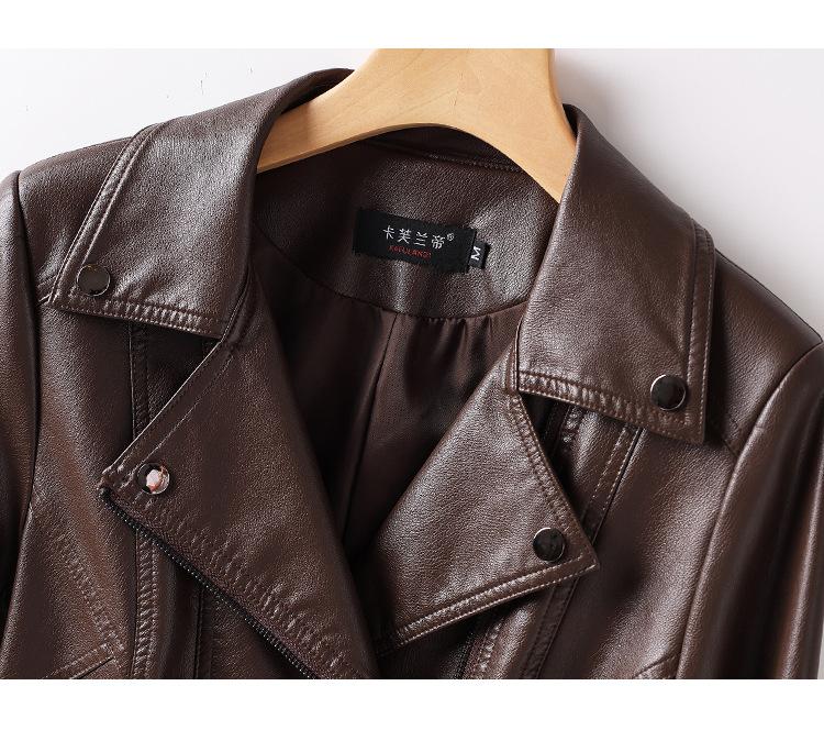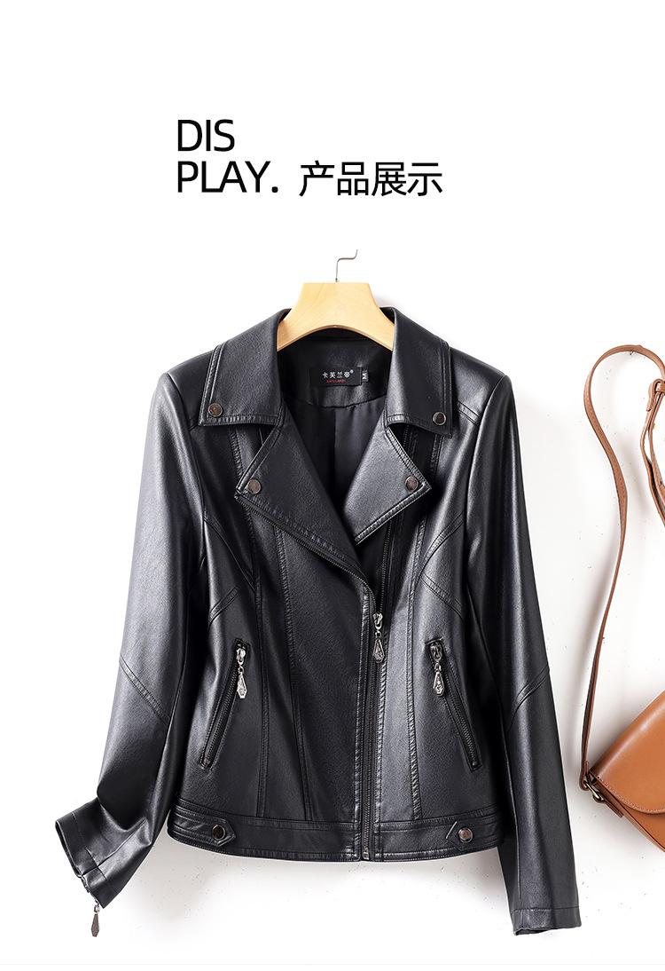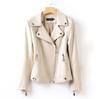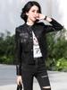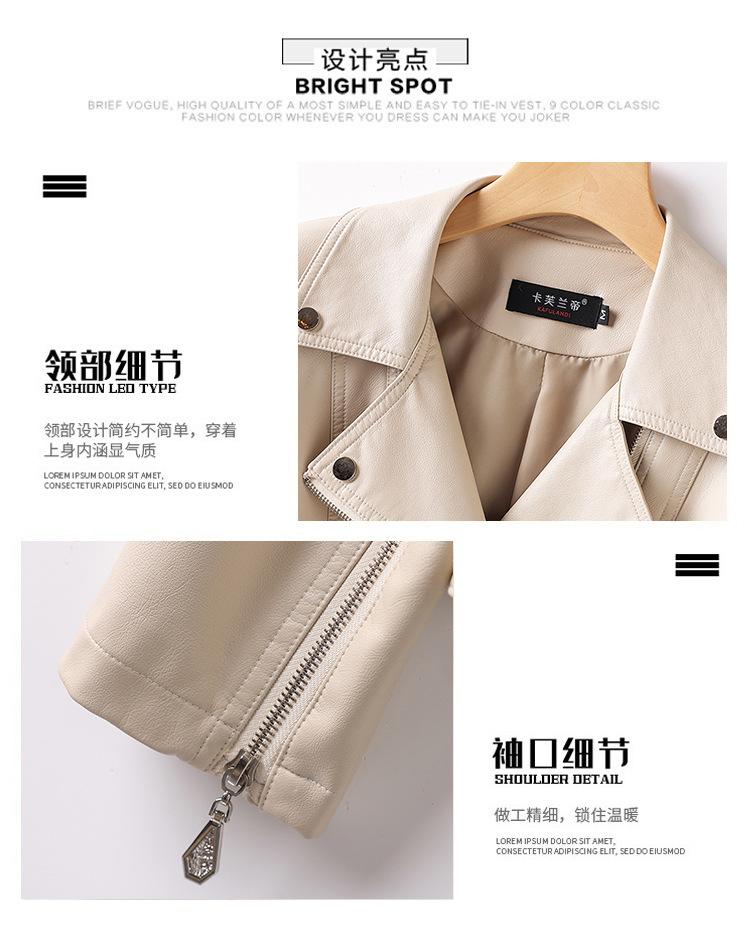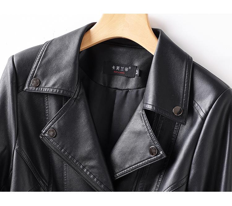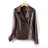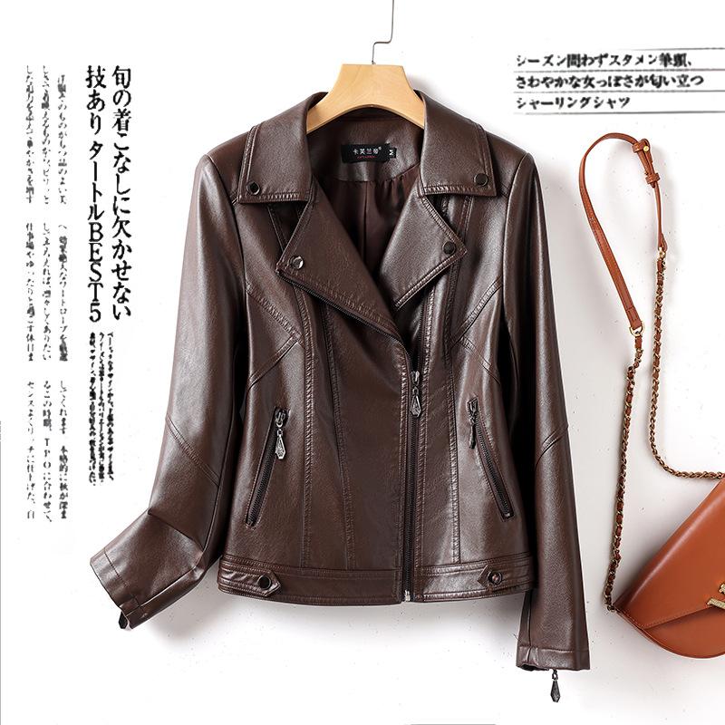 2025 Primavera y Otoño Cuero Genuino Chaqueta de Cuero Mujer Haining Piel de Oveja Traje de Motociclista Ajustado Corto Moda Chaqueta Pequeña Abrigo Solapa
