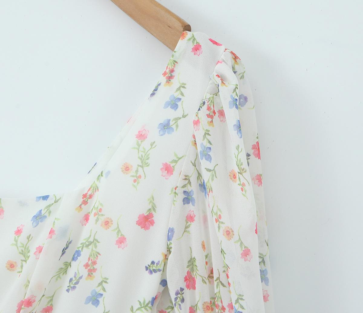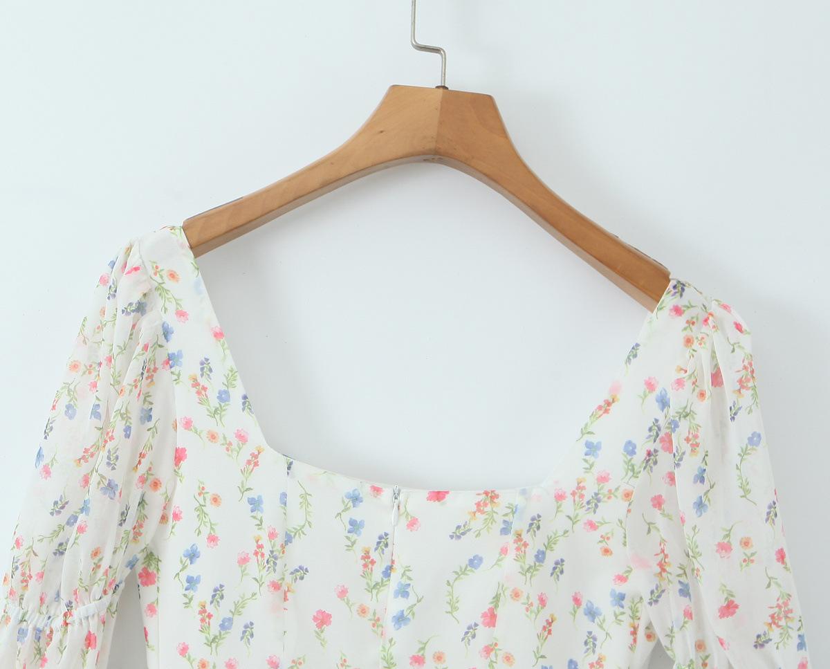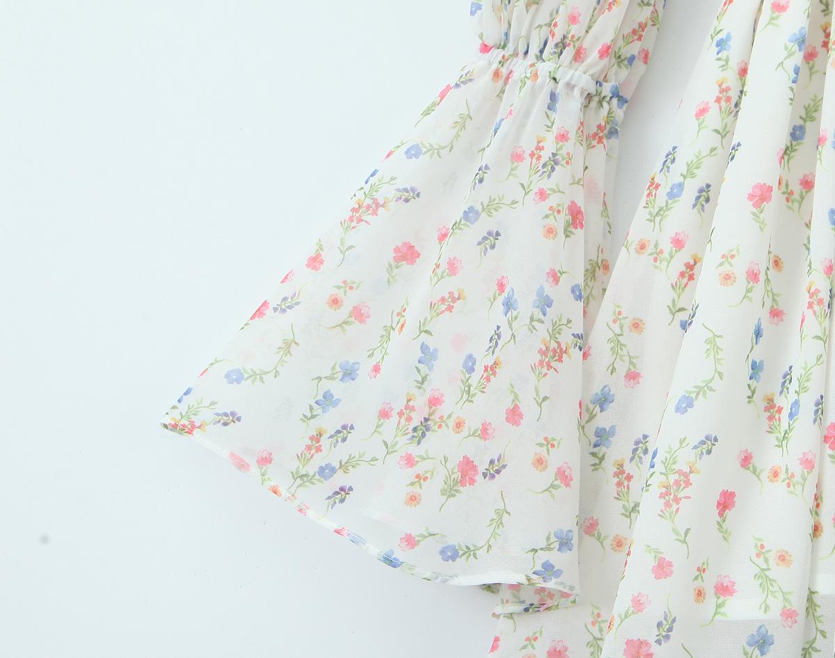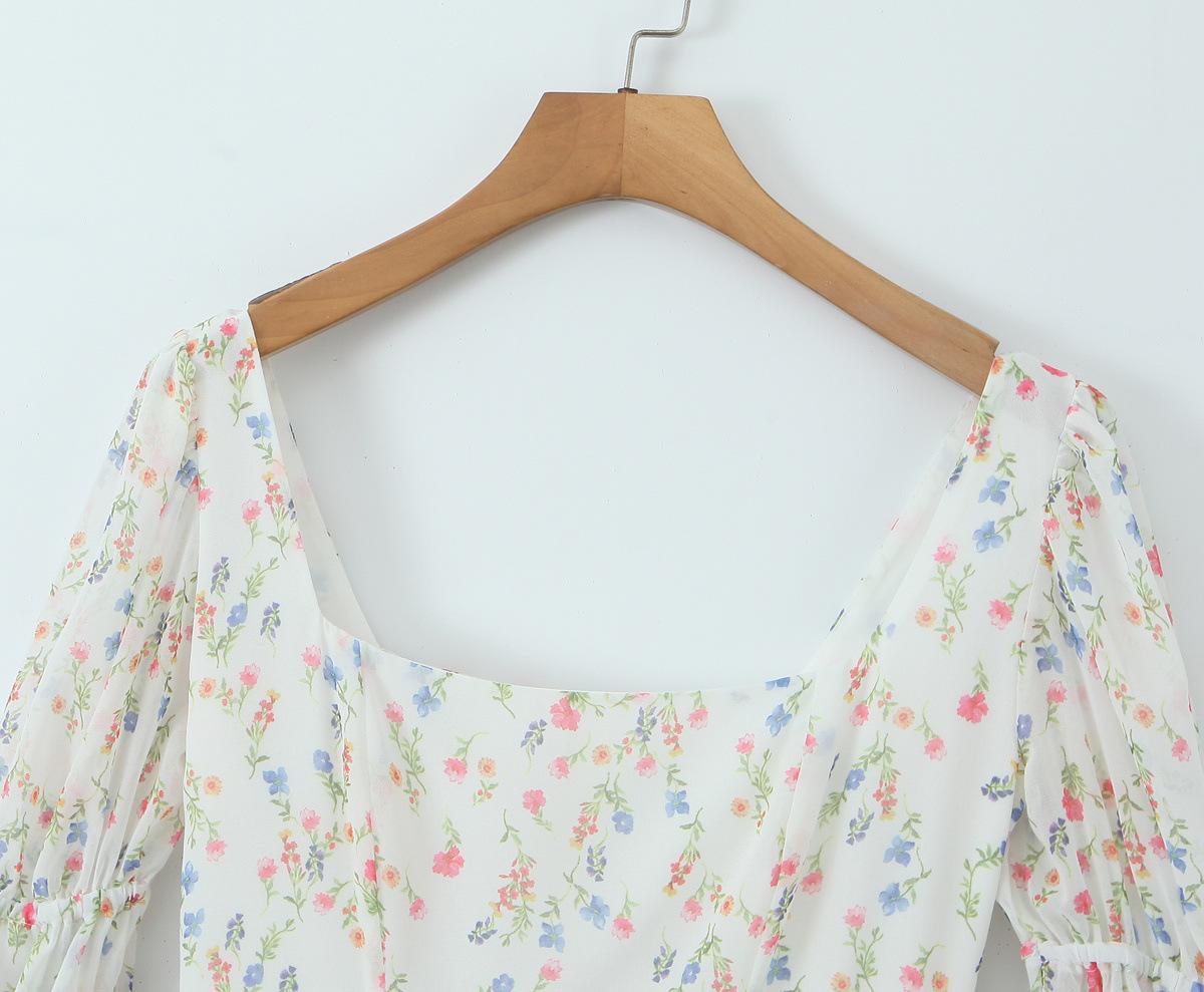 Fantasía Chica Dulce Ambiente Francés Floral Cuello Cuadrado Grande Sección Peel Manga Trompeta Vestido de Hada vestido Verano 2024