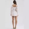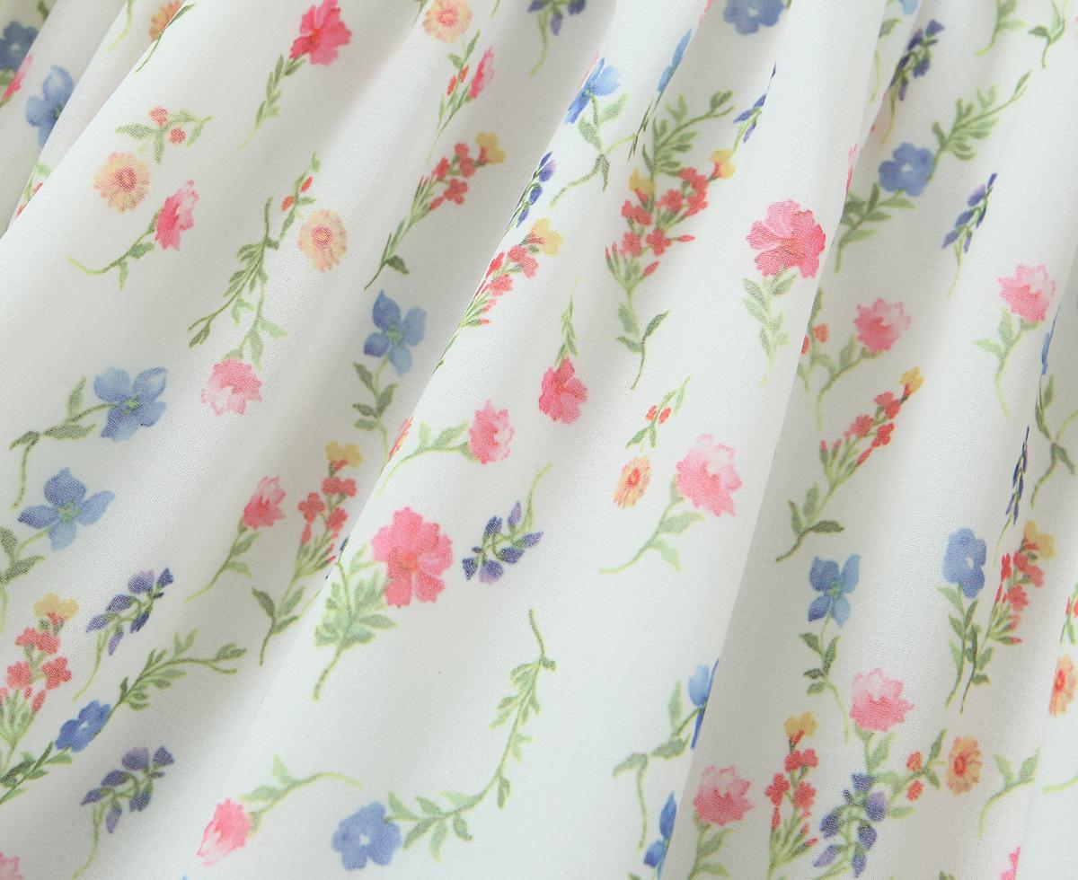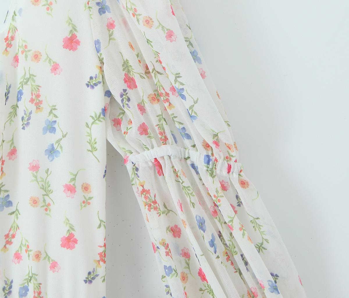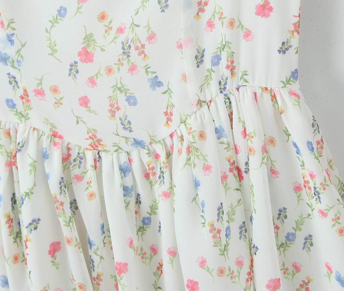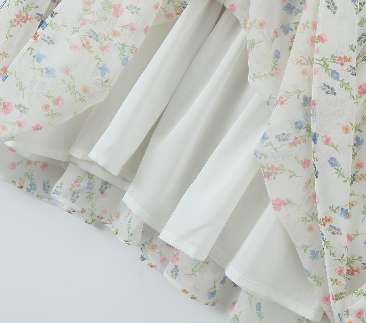 Fantasía Chica Dulce Ambiente Francés Floral Cuello Cuadrado Grande Sección Peel Manga Trompeta Vestido de Hada vestido Verano 2024