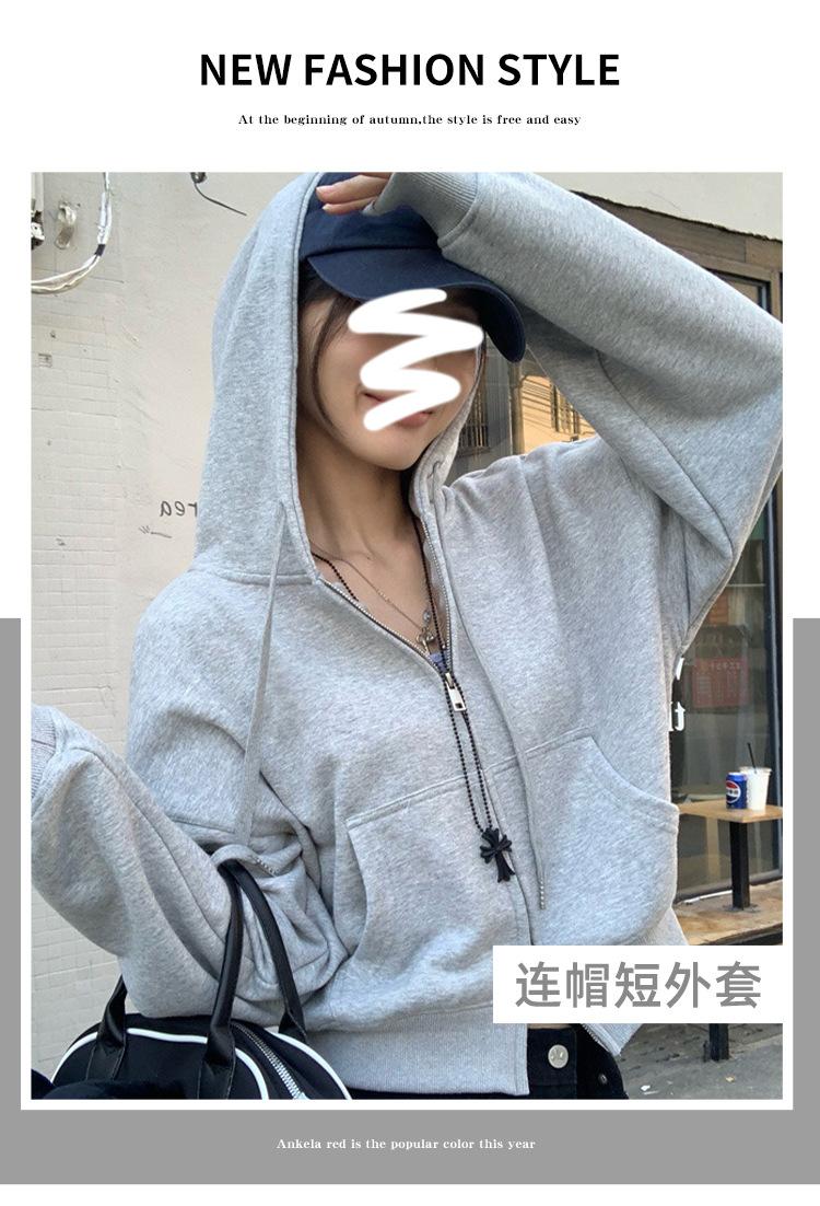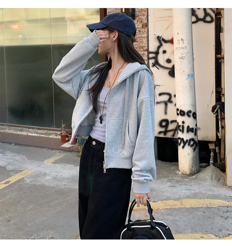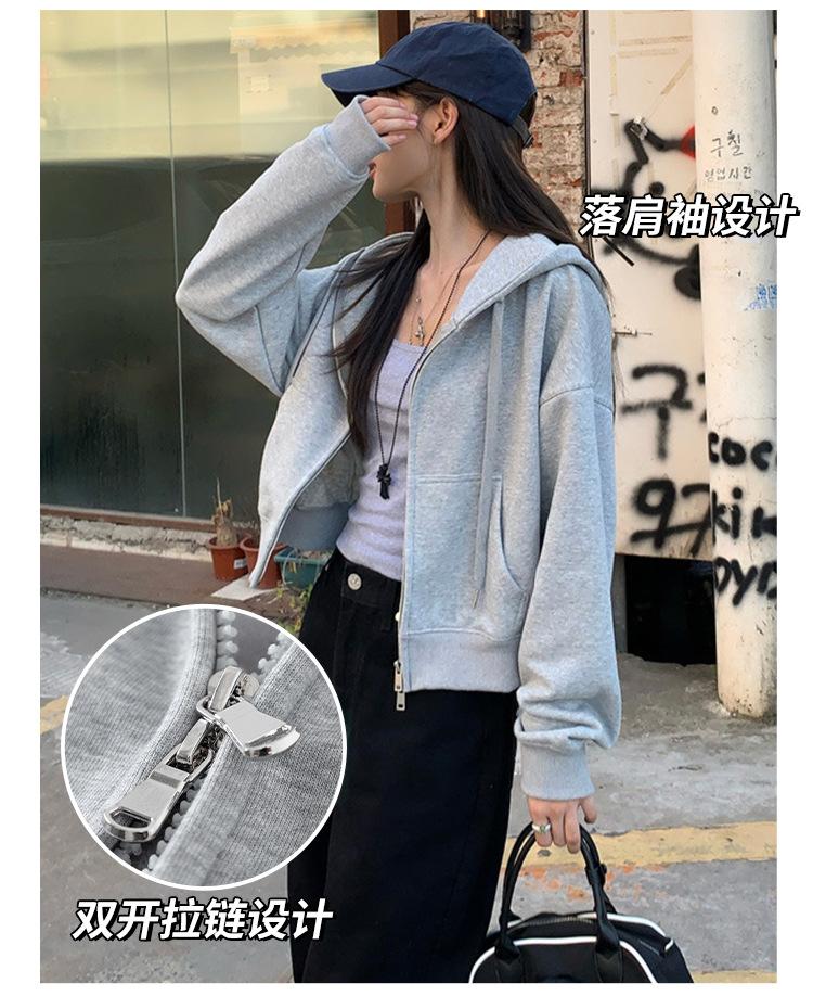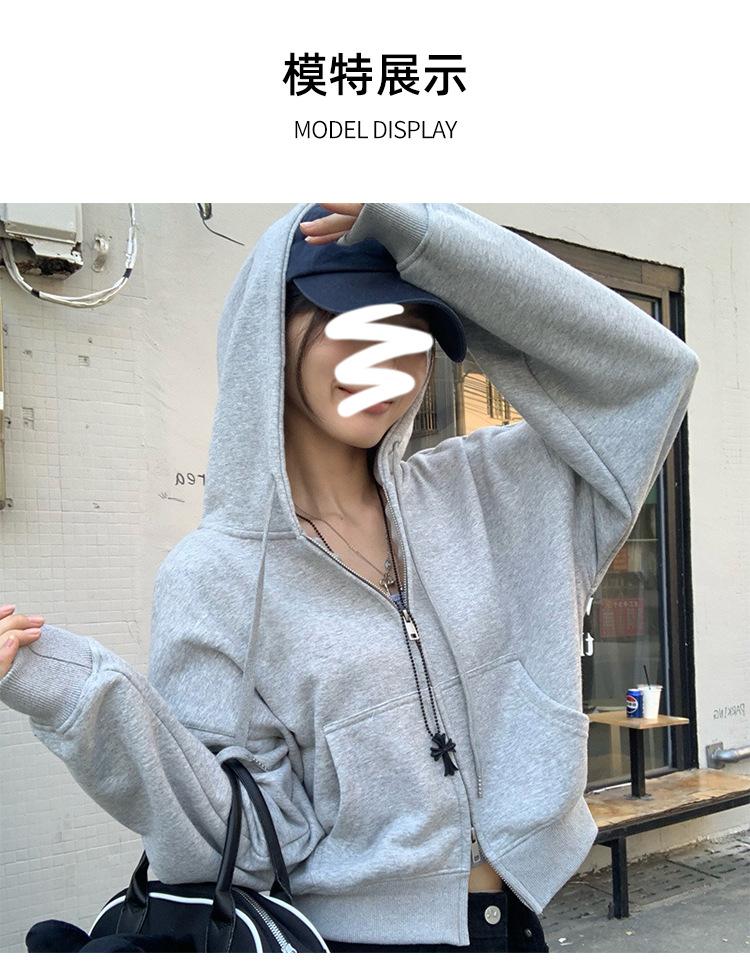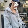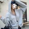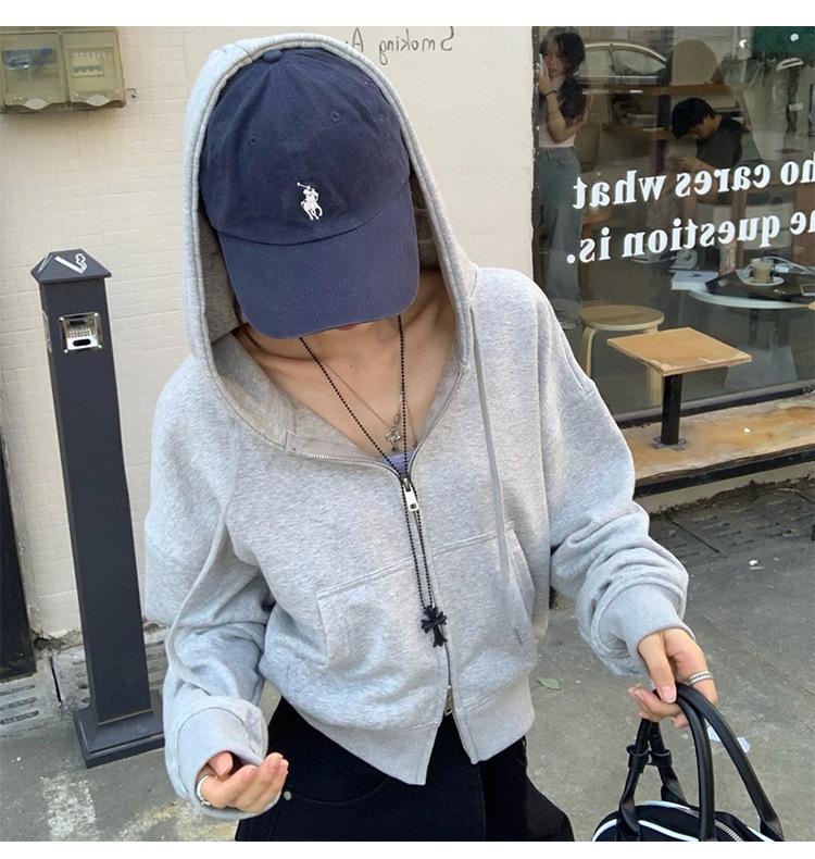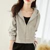 Chamarra Suéter con Capucha y Doble Cremallera para Mujer 2025 Nuevo Explosivo Cárdigan Corto Gris Combinable Suéter Tinta Instantánea