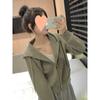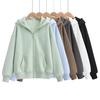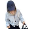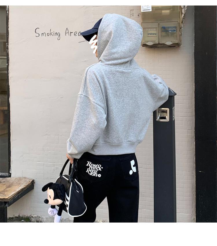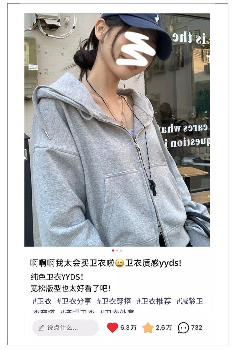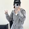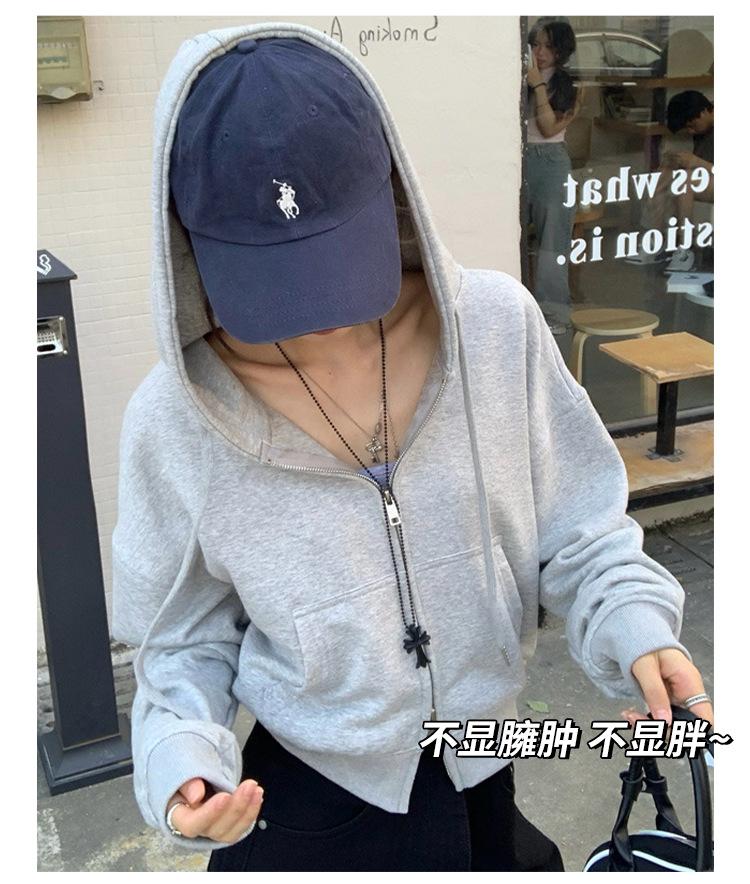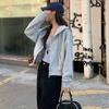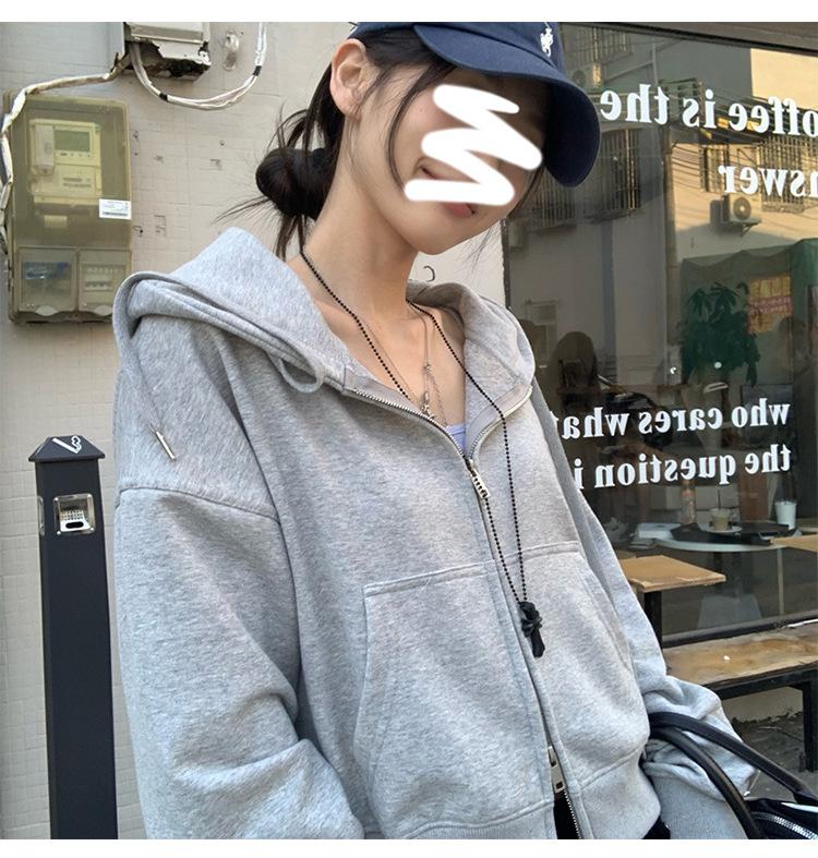 Chamarra Suéter con Capucha y Doble Cremallera para Mujer 2025 Nuevo Explosivo Cárdigan Corto Gris Combinable Suéter Tinta Instantánea