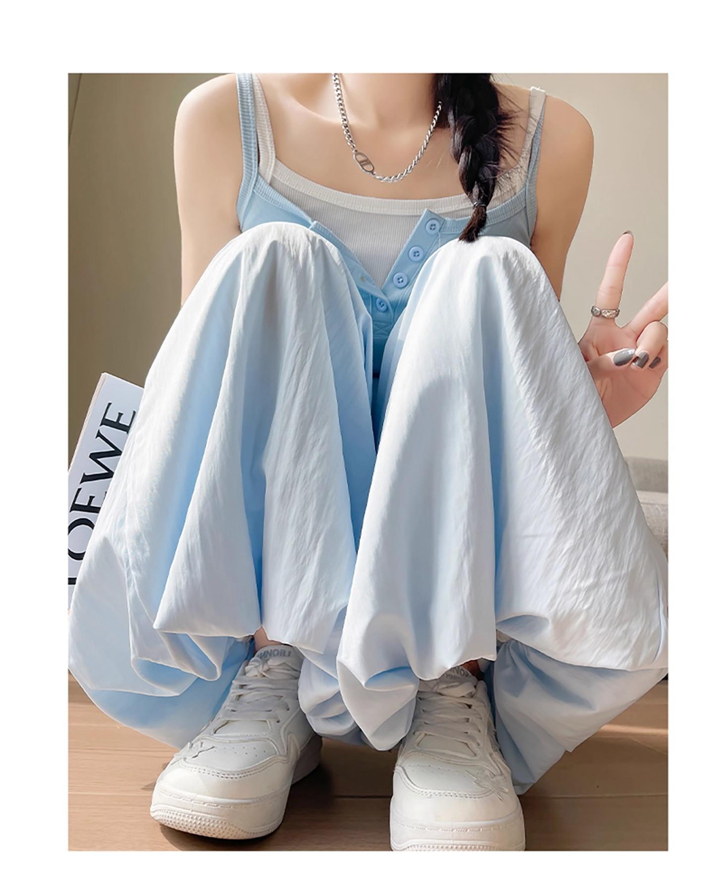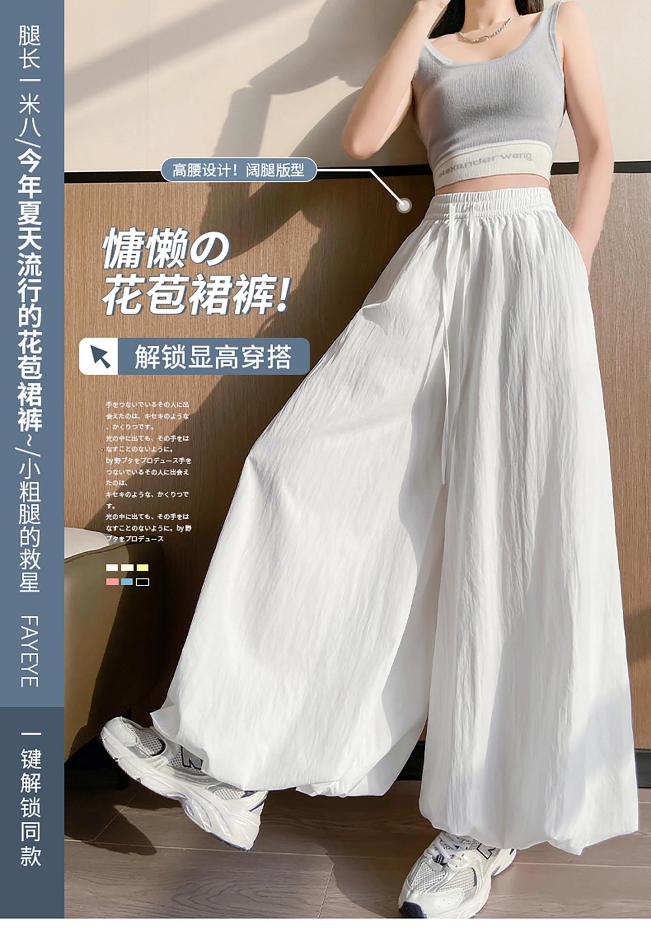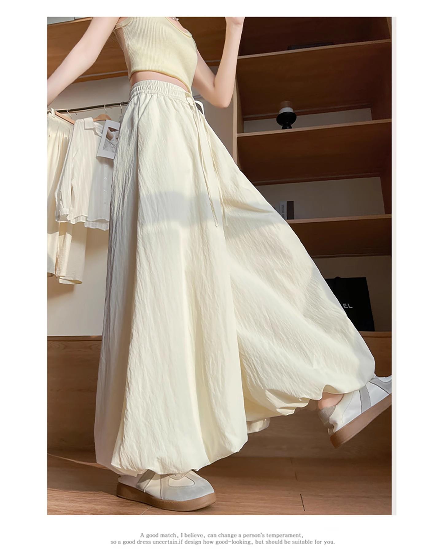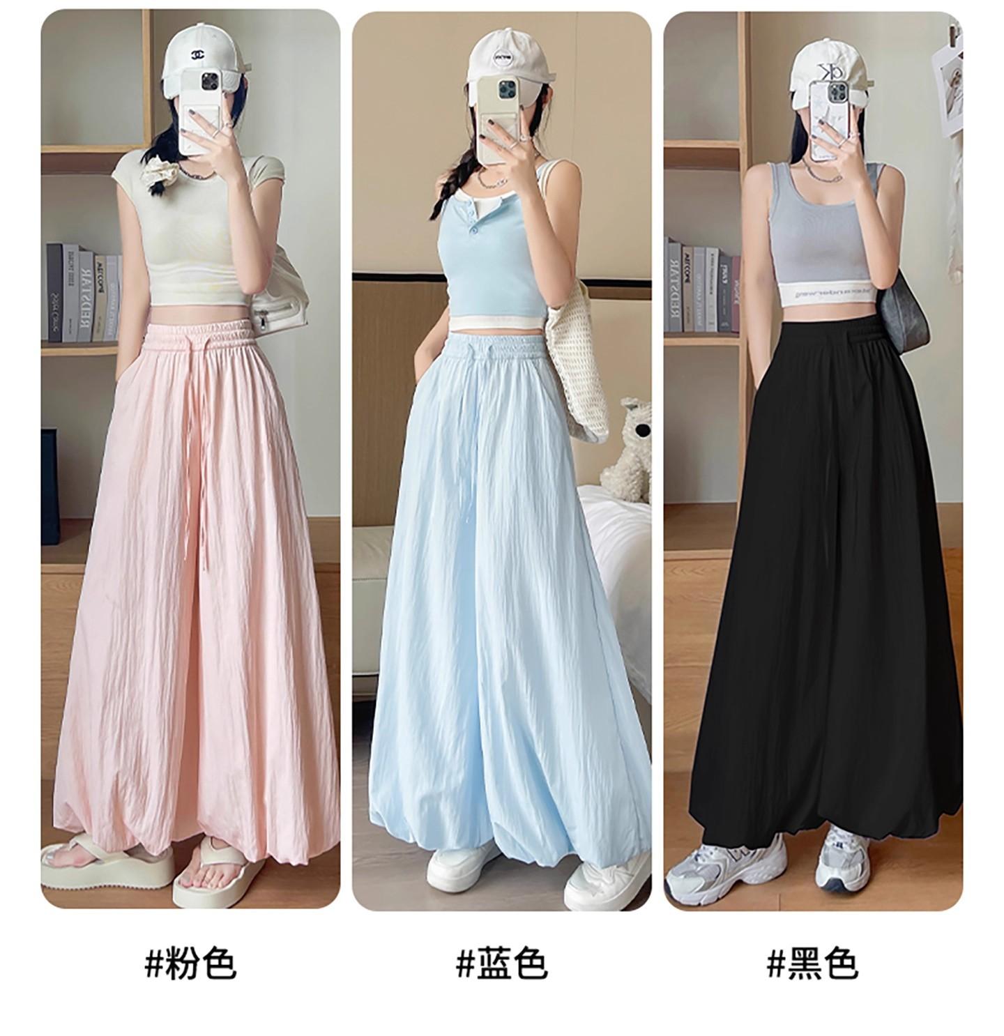 Short falda de capullo de flor de linterna azul para mujer verano delgado 2025 nuevo cintura alta suelto casual seda helada pierna ancha abombado pantalón falda