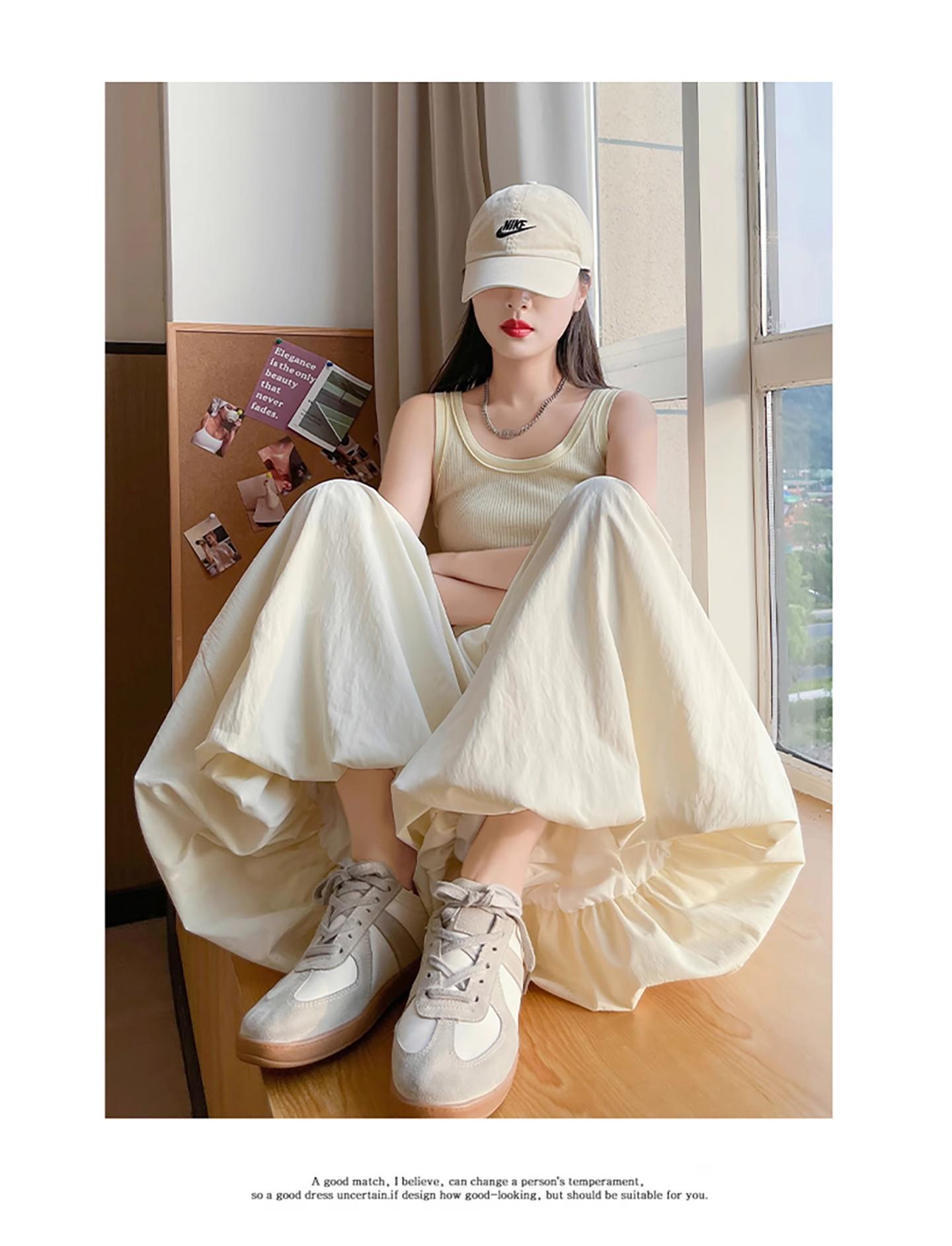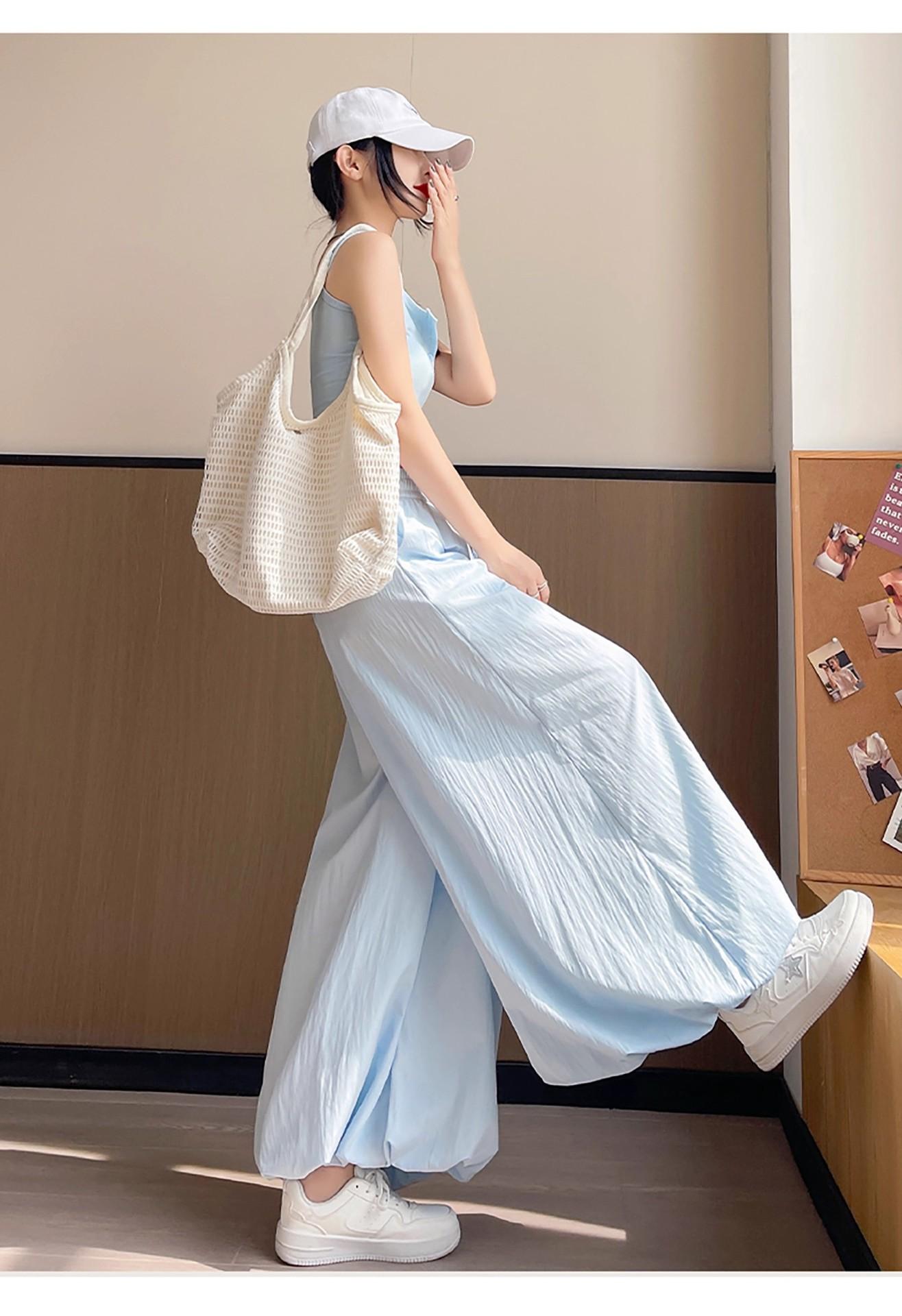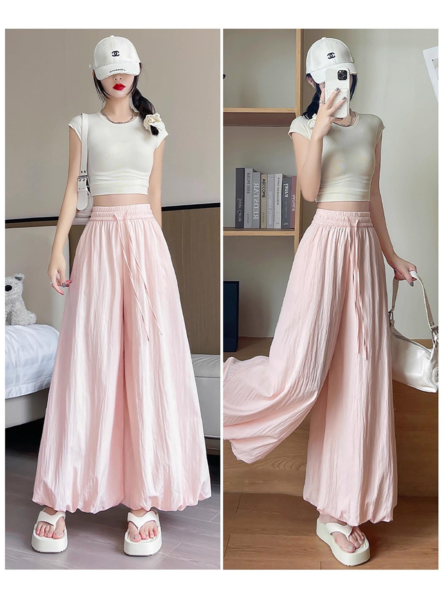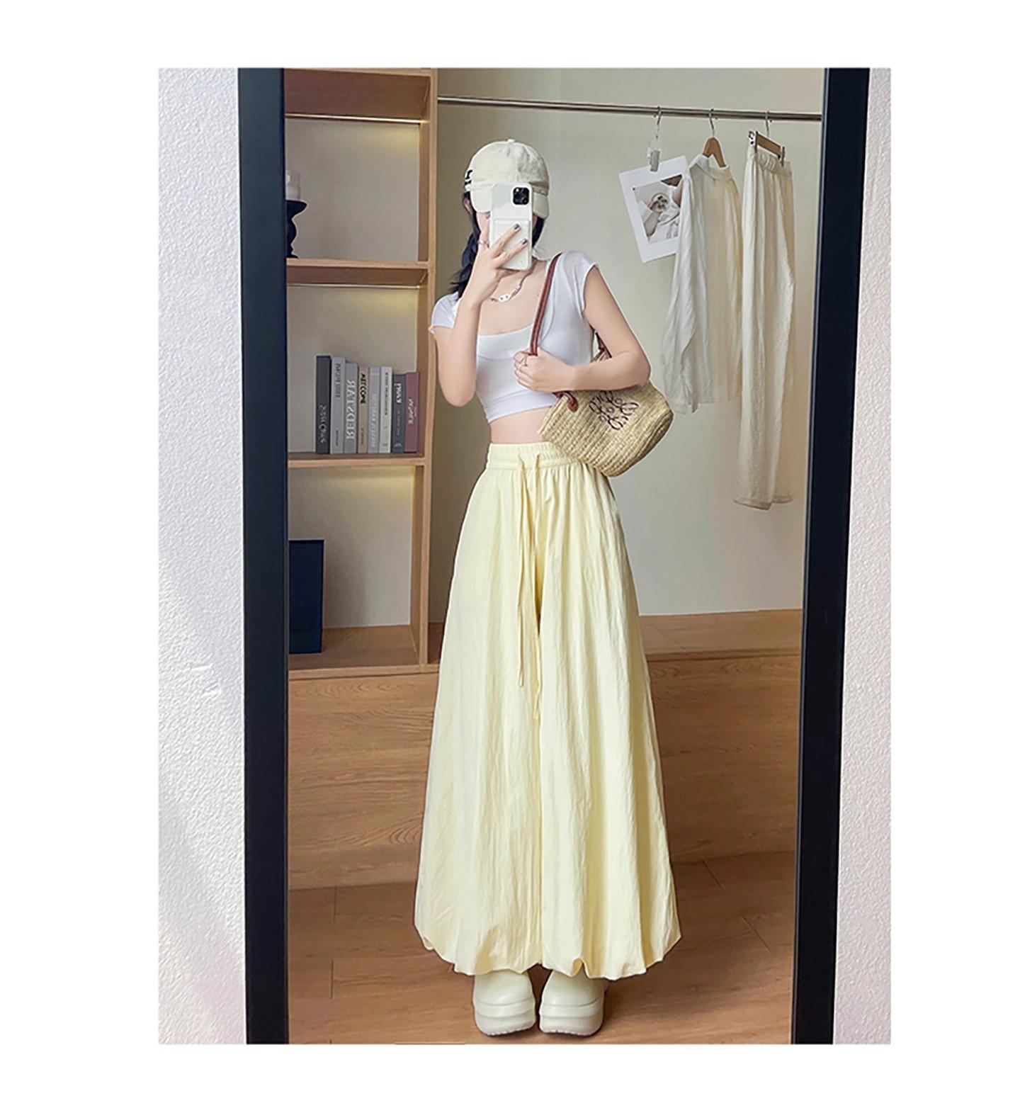 Short falda de capullo de flor de linterna azul para mujer verano delgado 2025 nuevo cintura alta suelto casual seda helada pierna ancha abombado pantalón falda