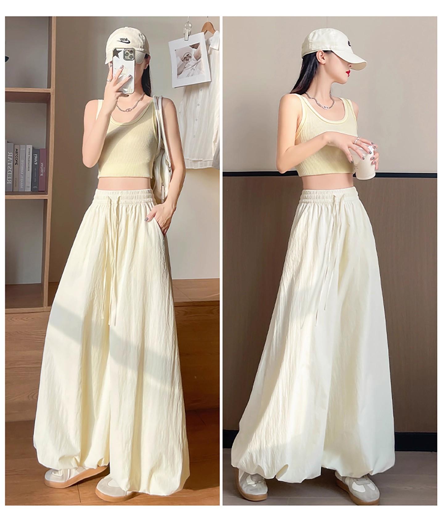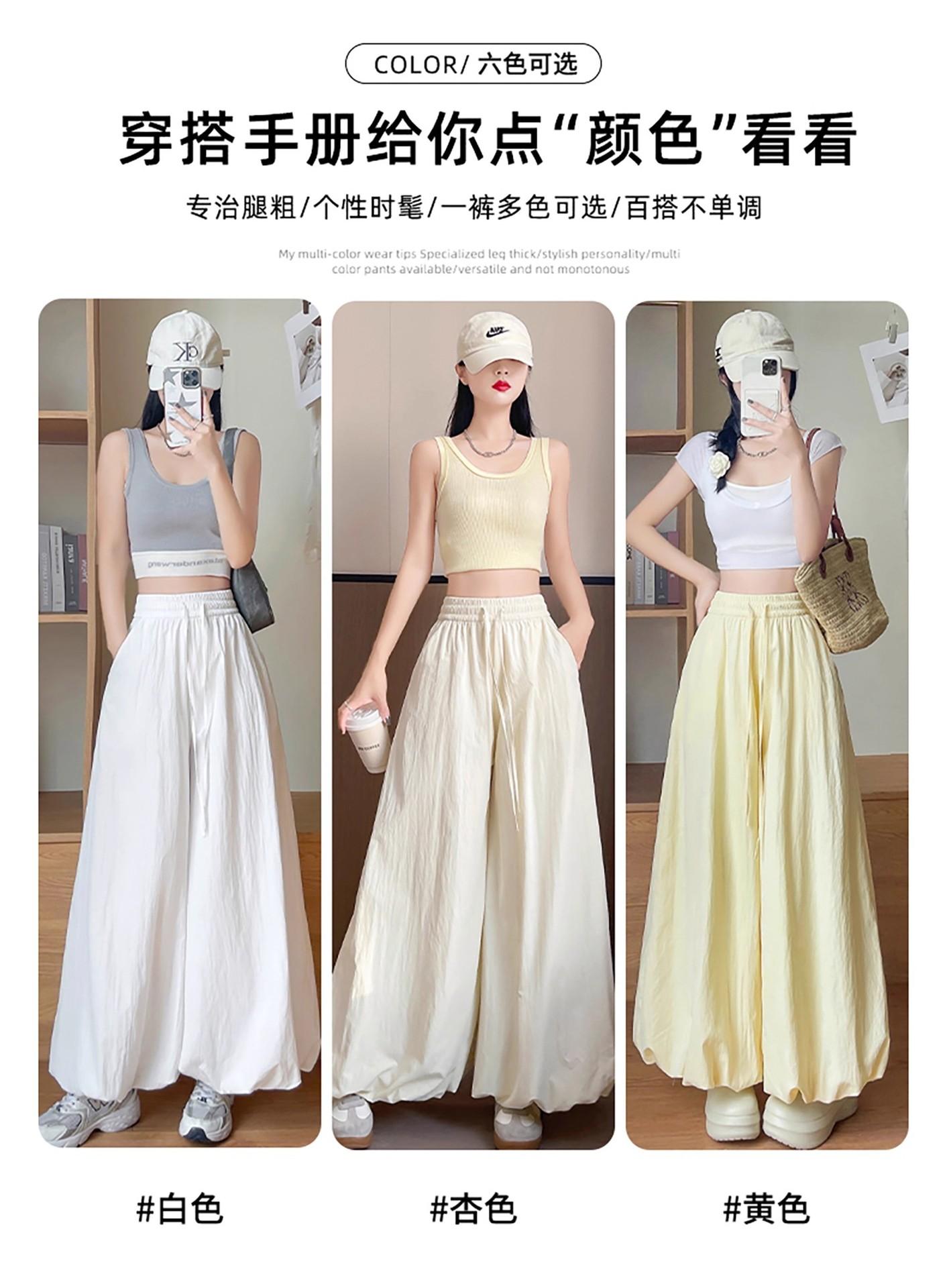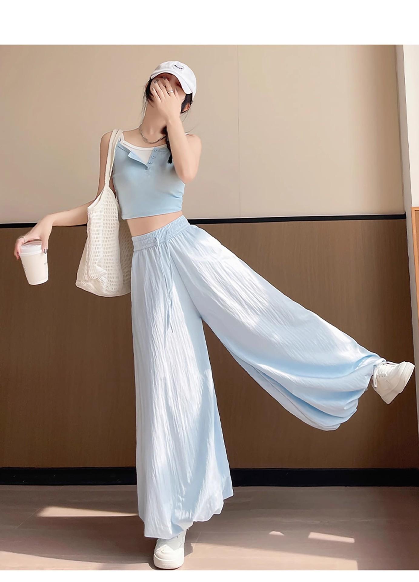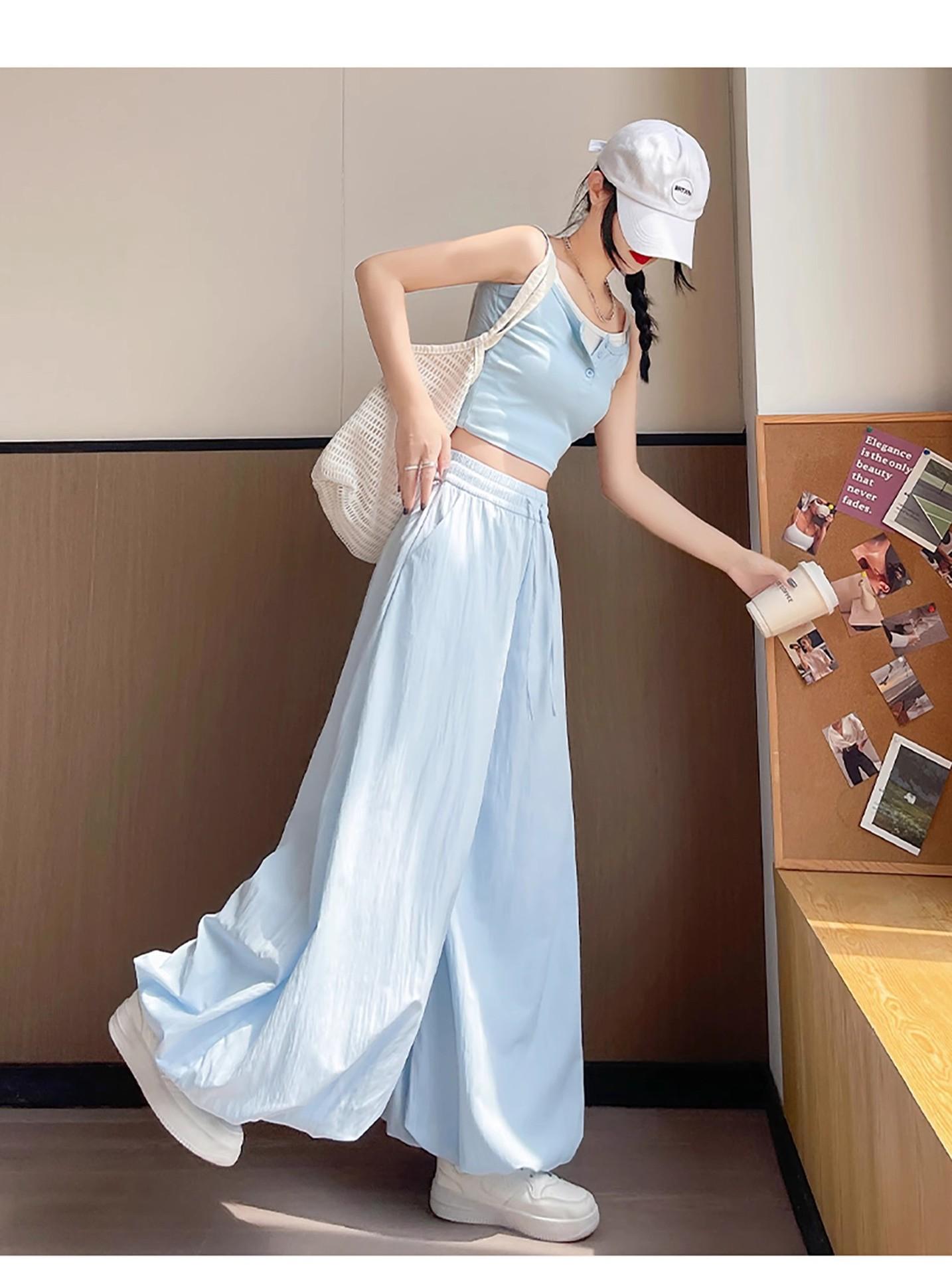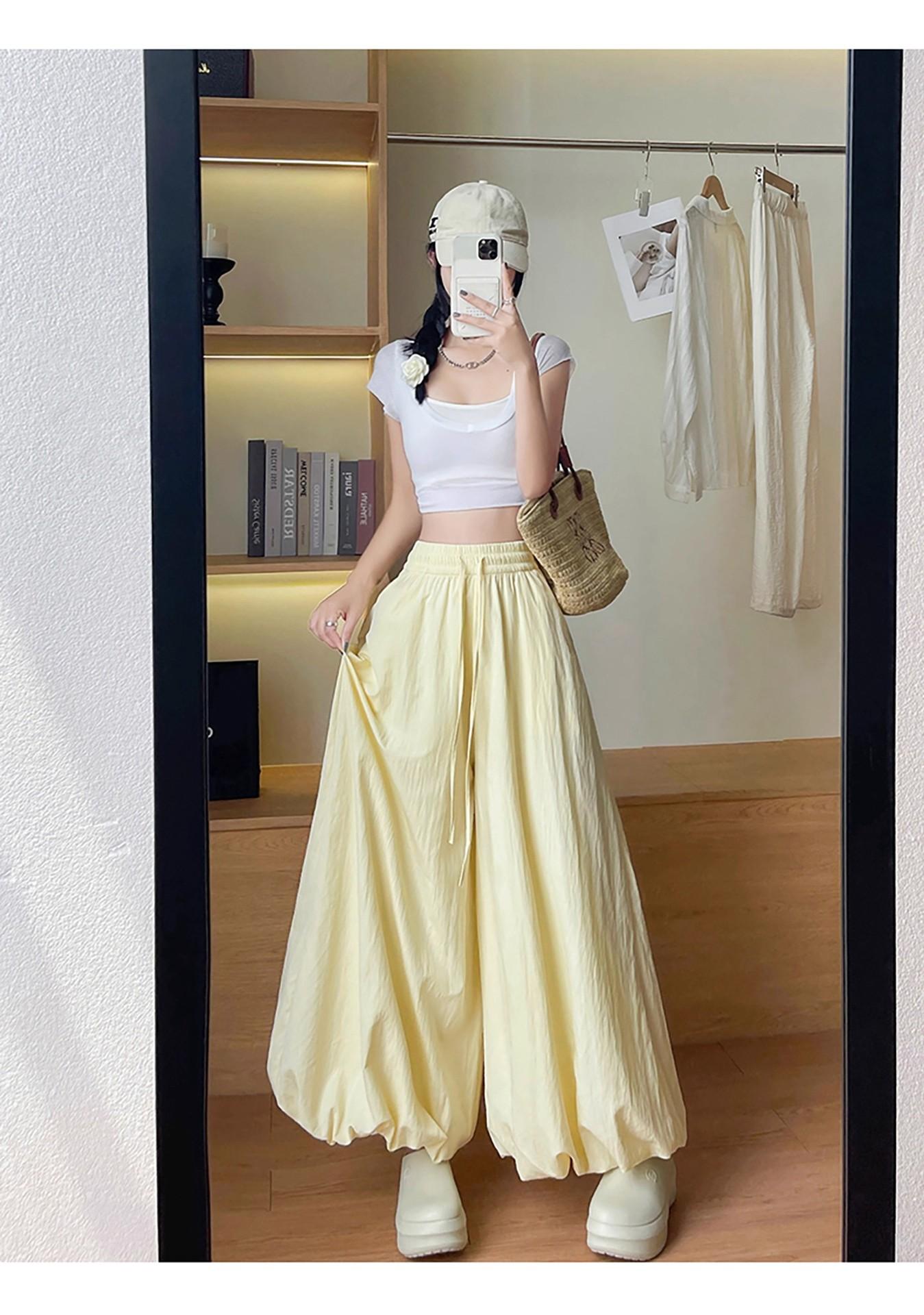 Short falda de capullo de flor de linterna azul para mujer verano delgado 2025 nuevo cintura alta suelto casual seda helada pierna ancha abombado pantalón falda