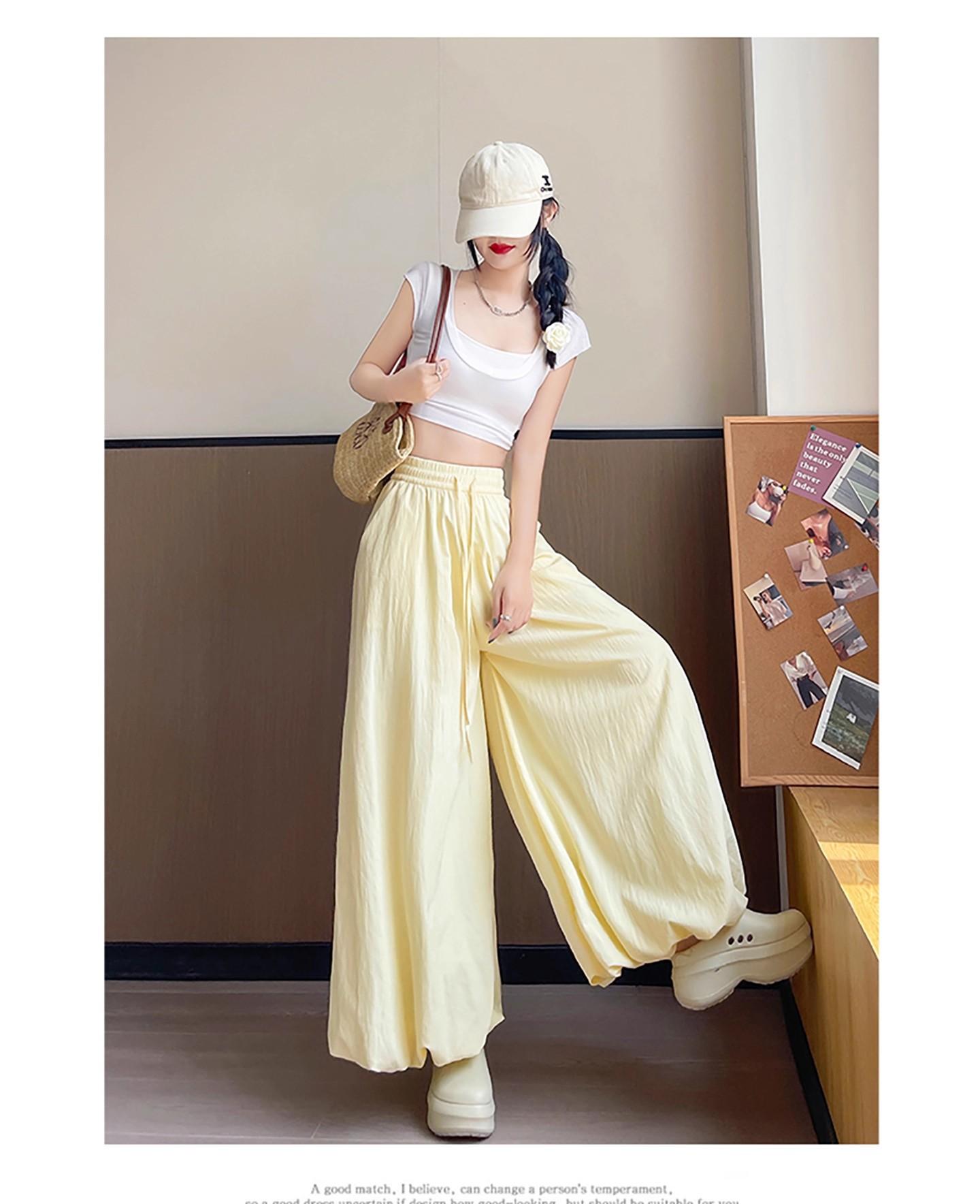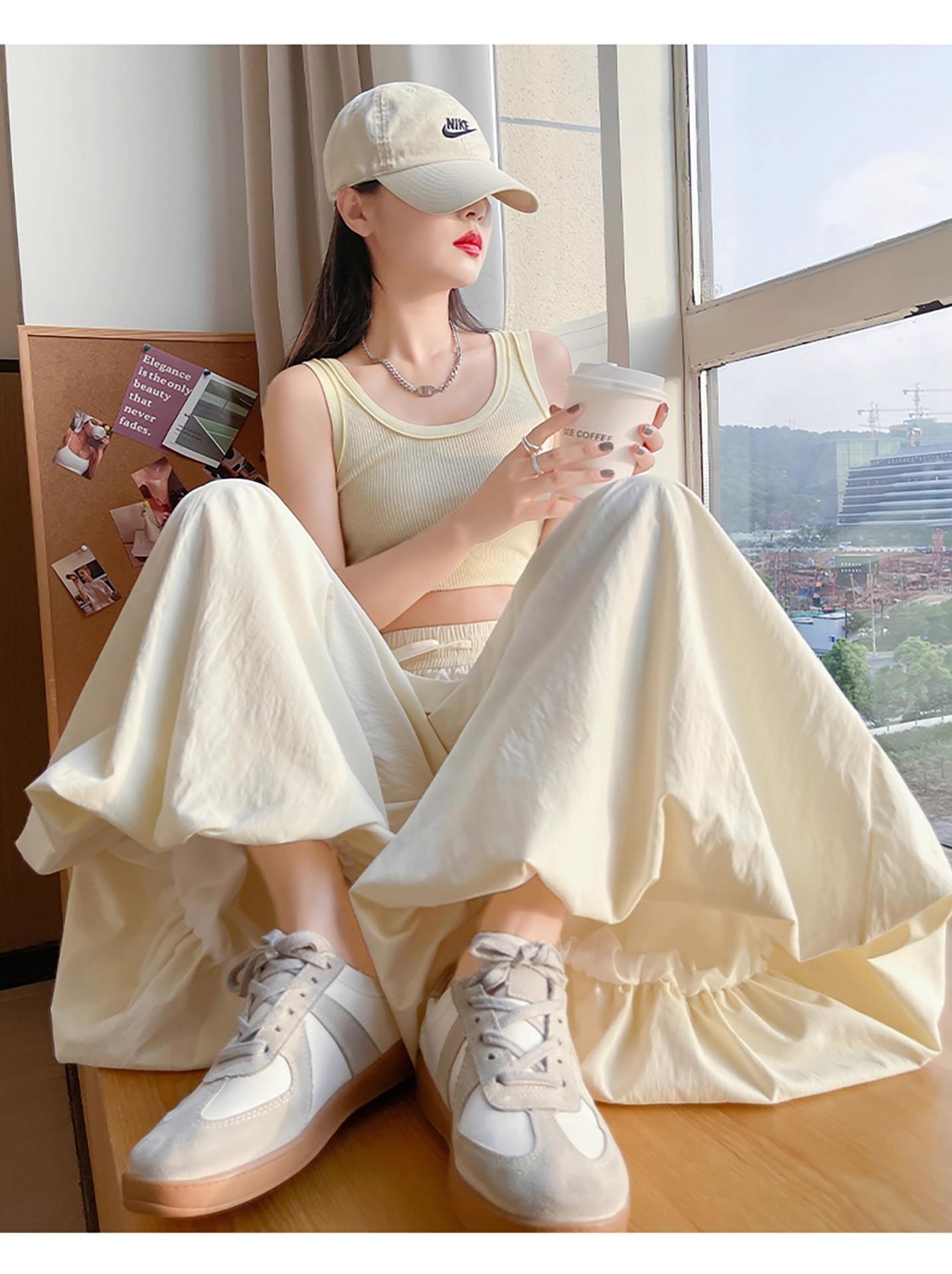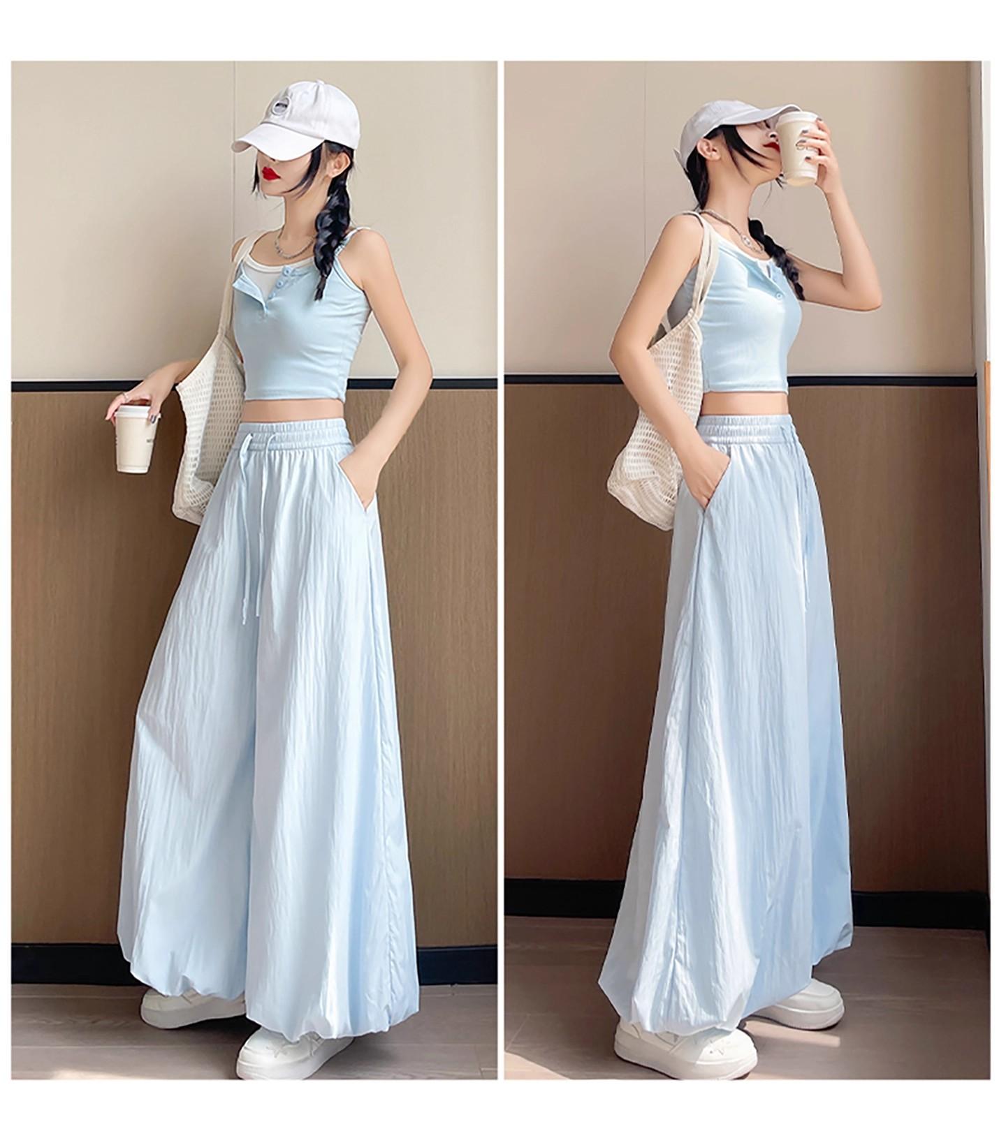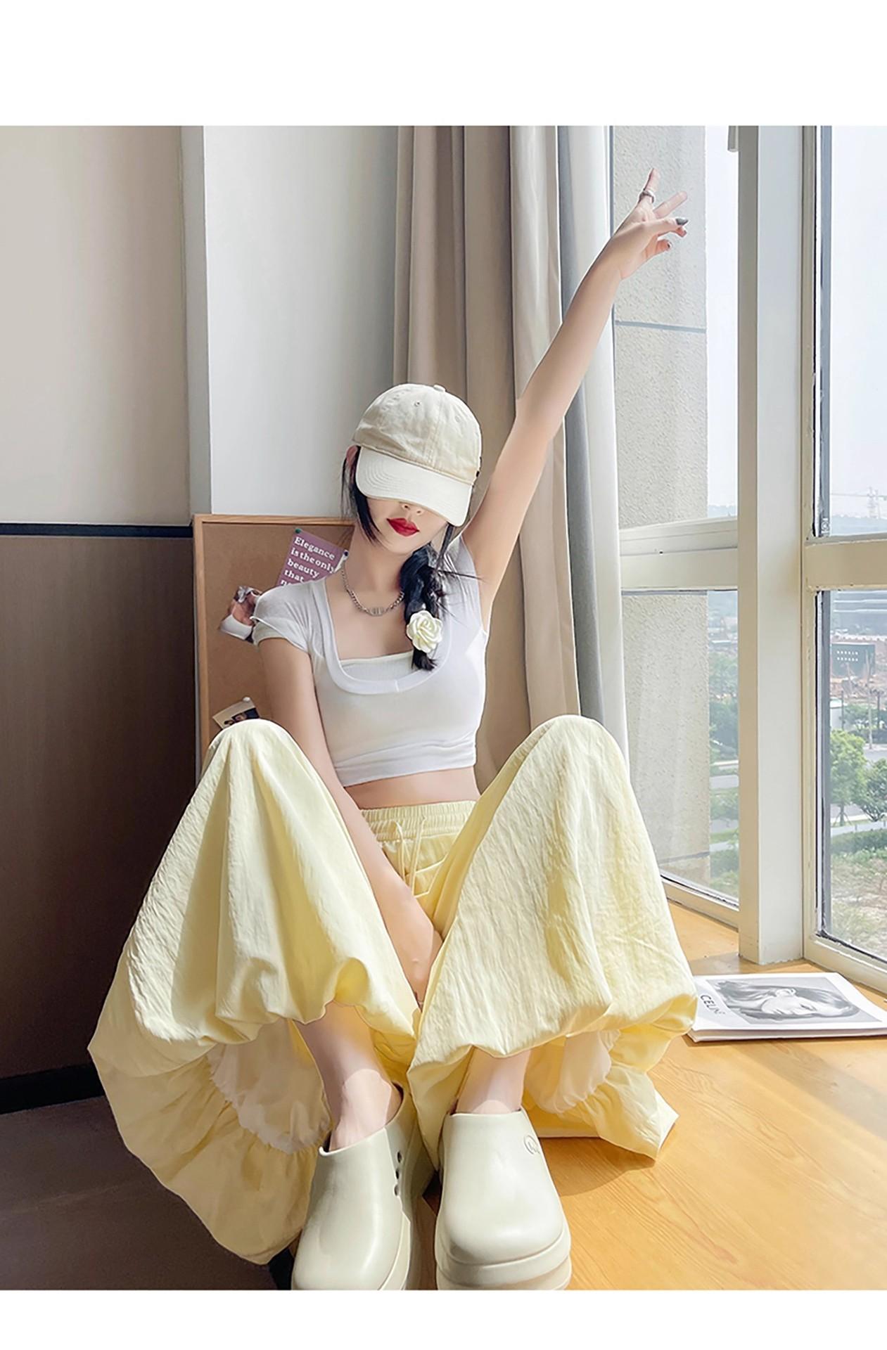 Short falda de capullo de flor de linterna azul para mujer verano delgado 2025 nuevo cintura alta suelto casual seda helada pierna ancha abombado pantalón falda