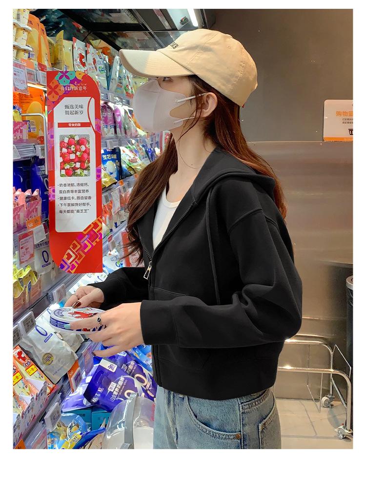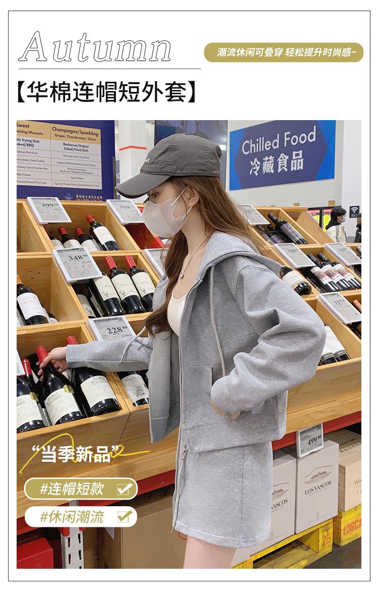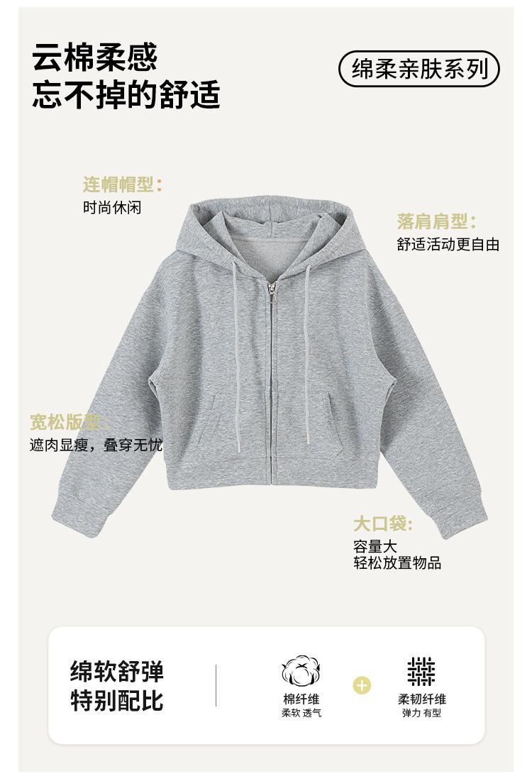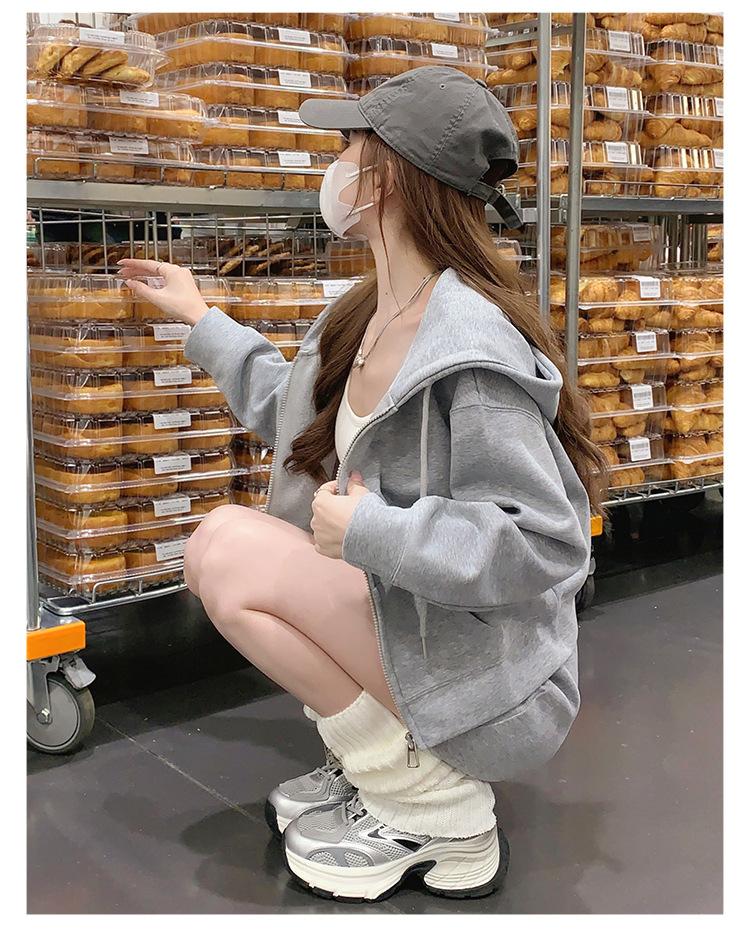 Abrigo Corto Gris de Otoño e Invierno Sudadera Adelgazante Mujer 2025 Nuevo Cárdigan con Capucha Suelto Petite Top con Cremallera