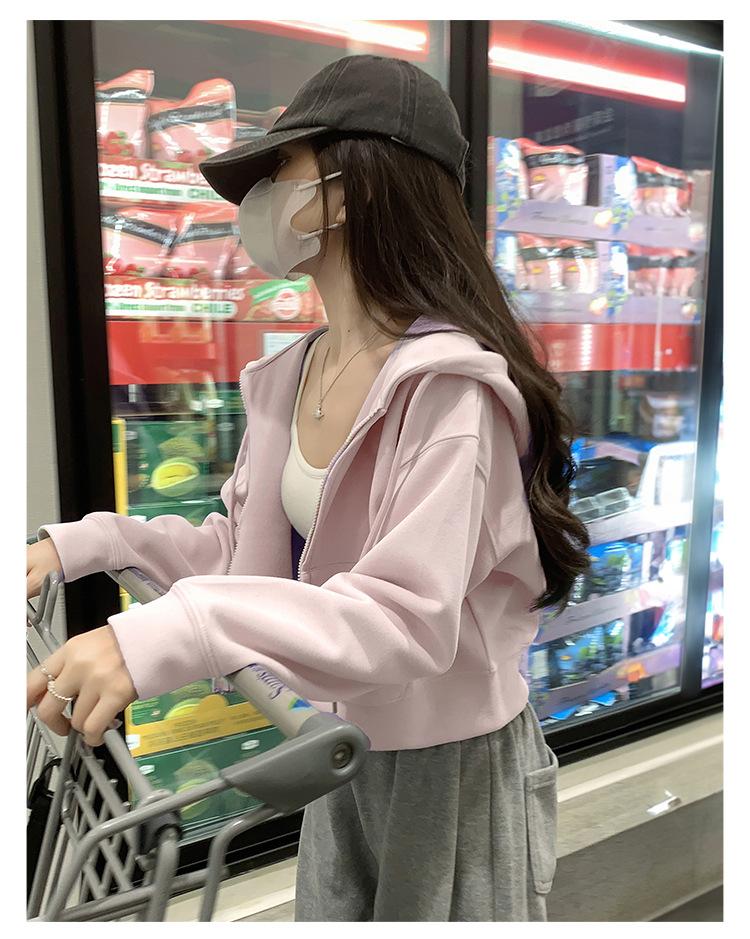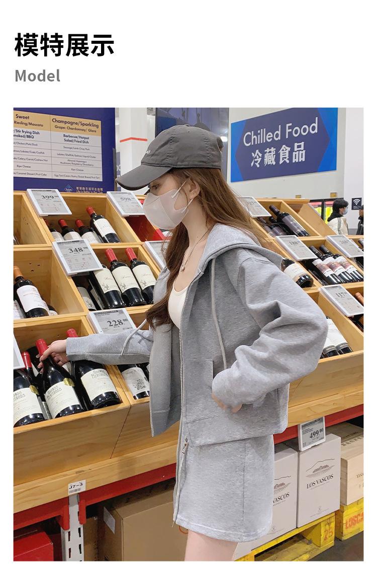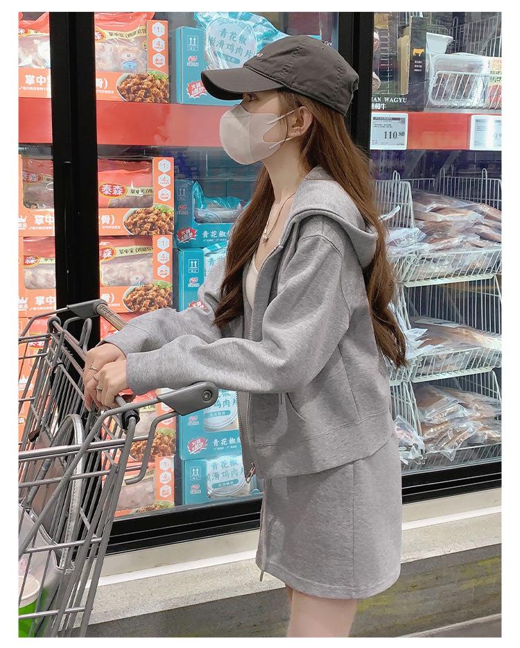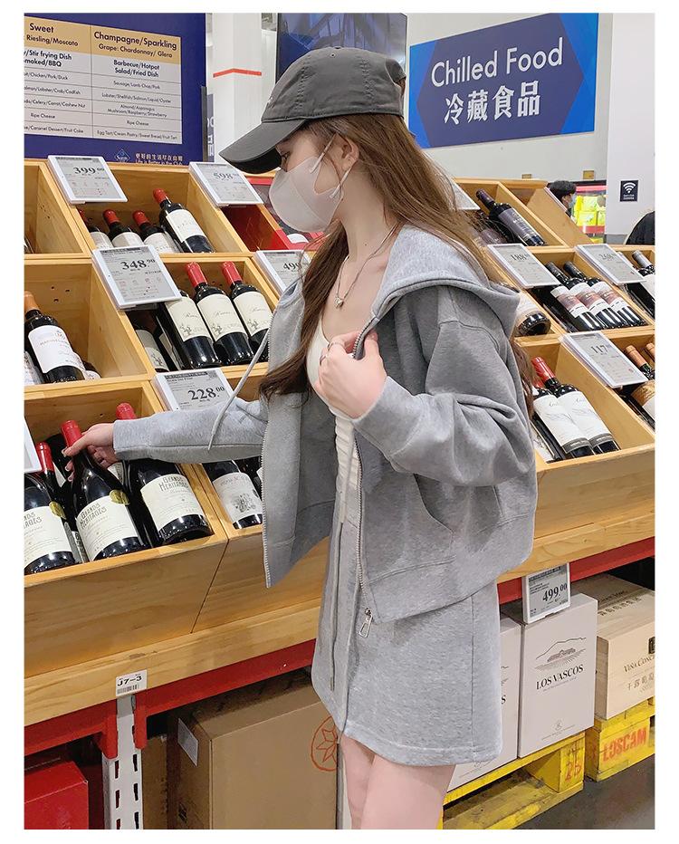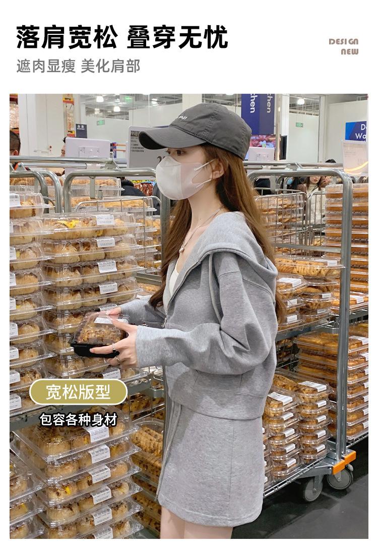 Abrigo Corto Gris de Otoño e Invierno Sudadera Adelgazante Mujer 2025 Nuevo Cárdigan con Capucha Suelto Petite Top con Cremallera