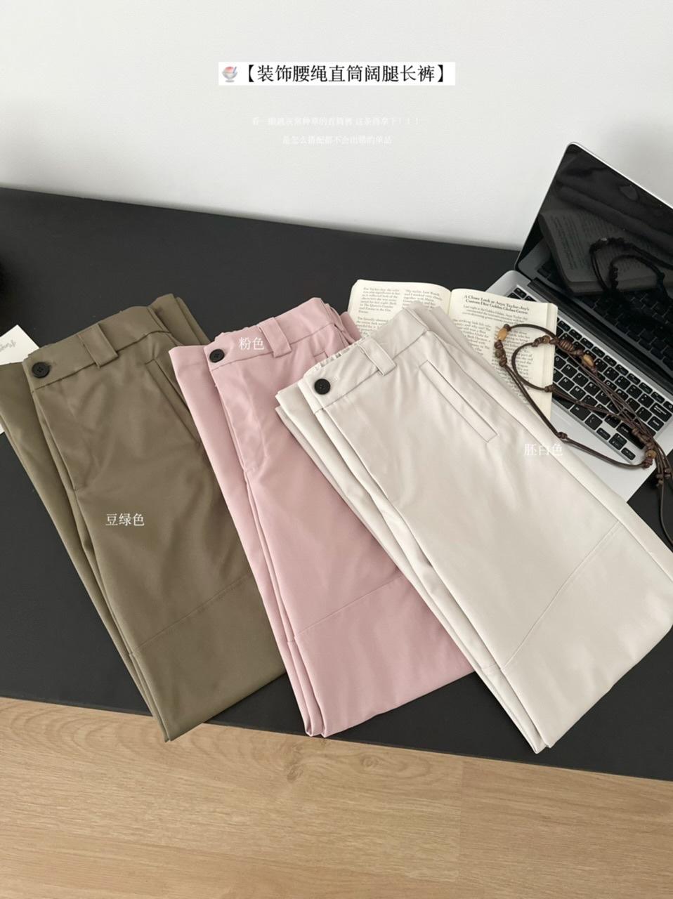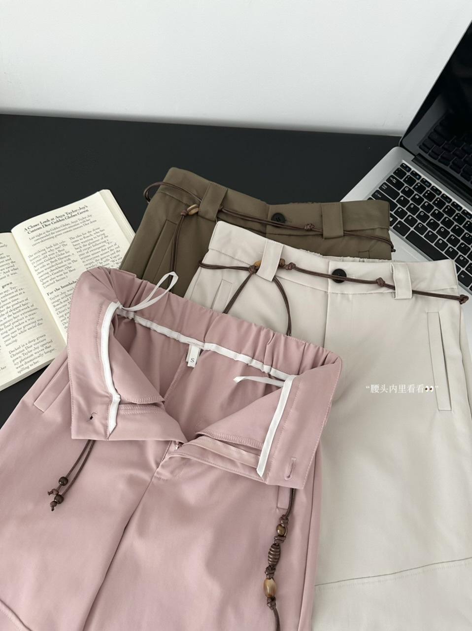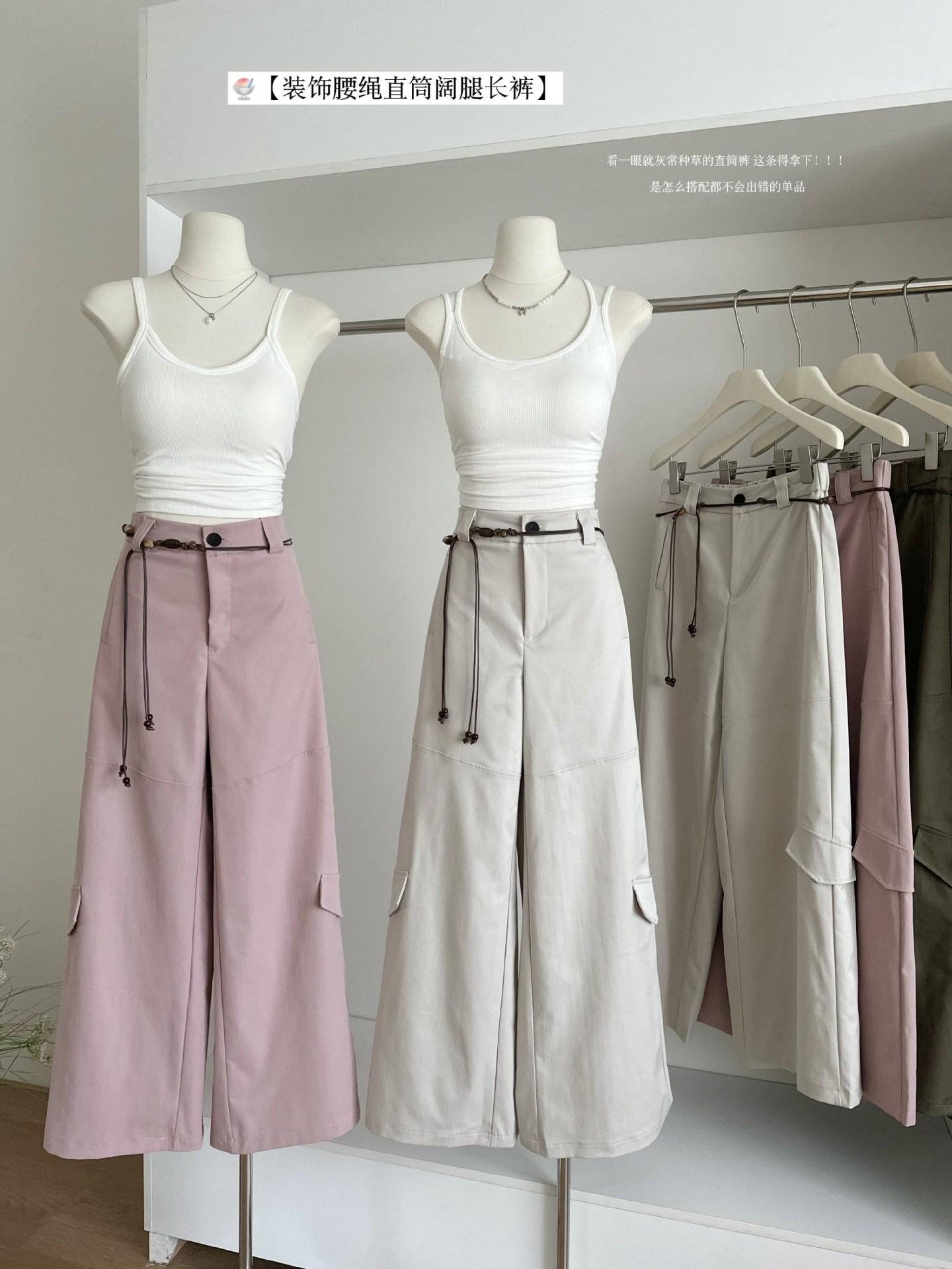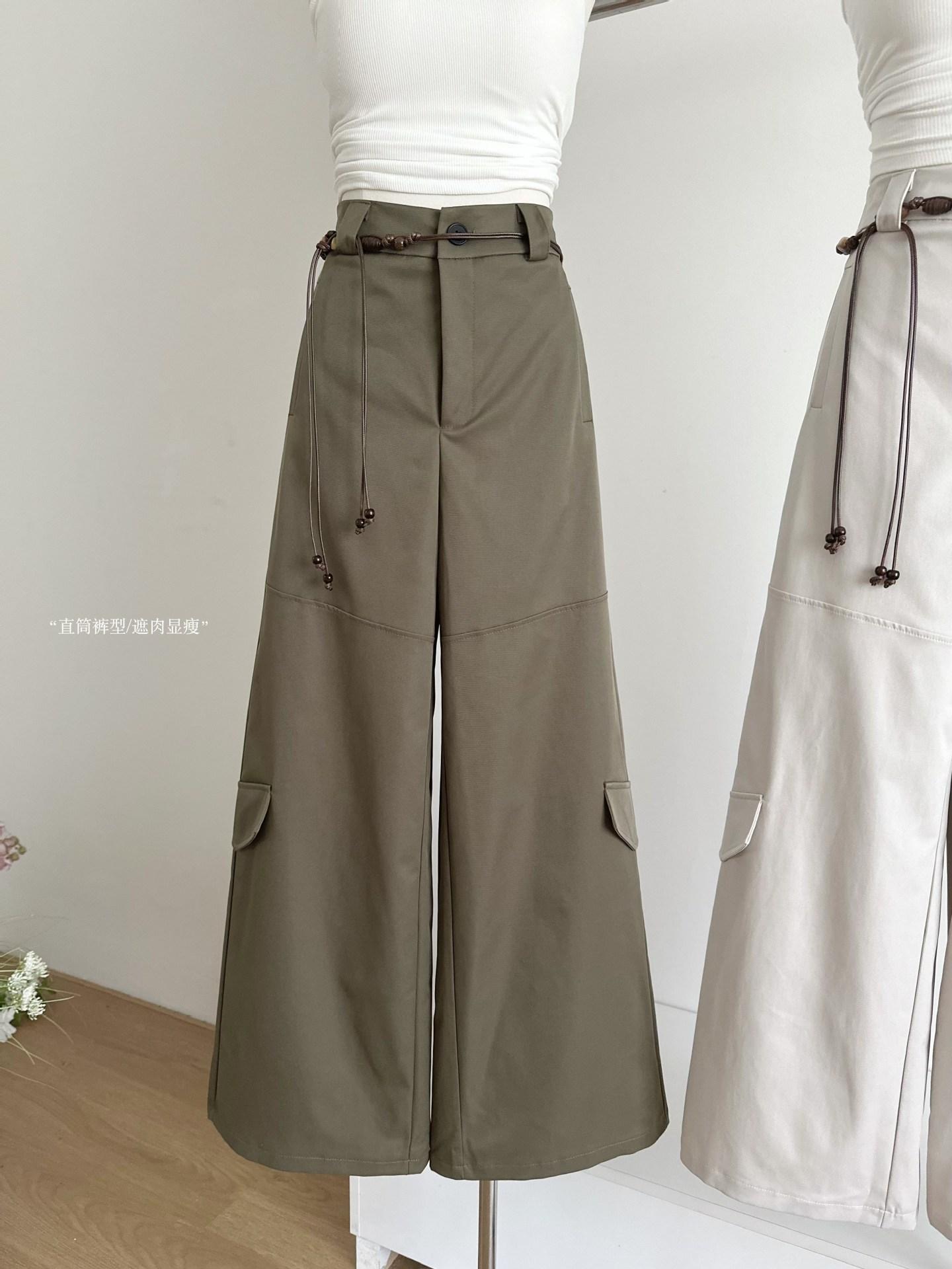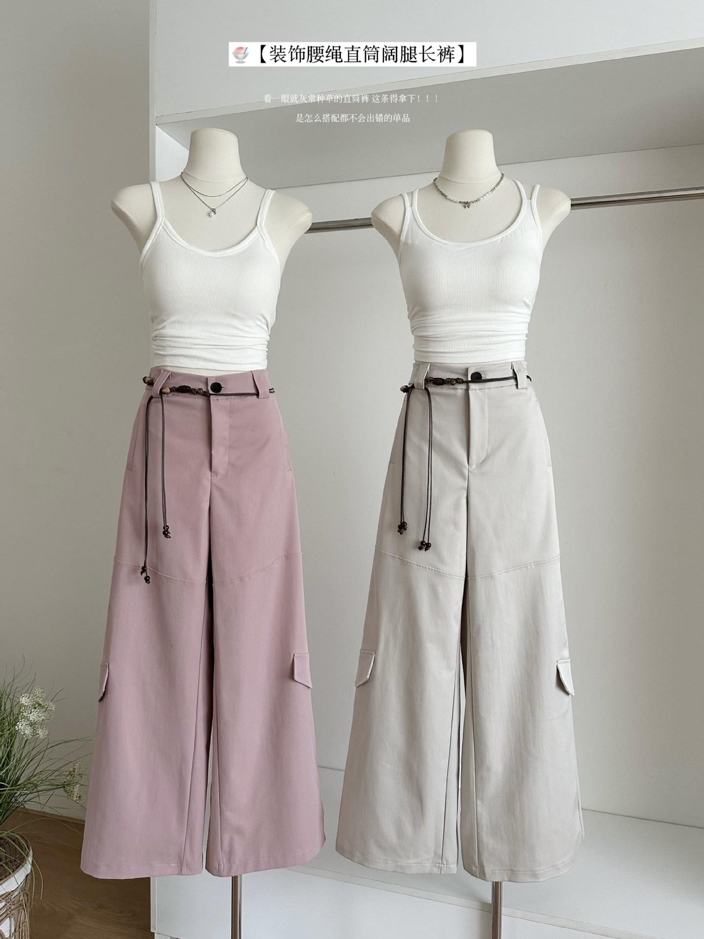 Pantalones Casuales Decorativos con Lazo en la Cintura 2025 Verano Nuevo Diseño Nicho Delgado Pierna Recta Pierna Ancha Pantalones Largos Mujer
