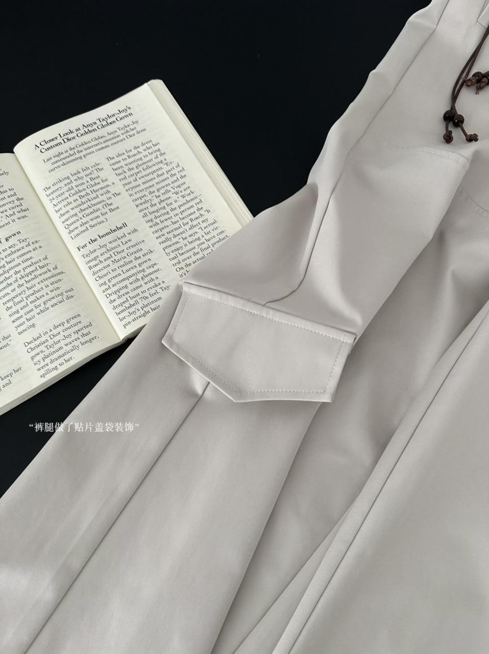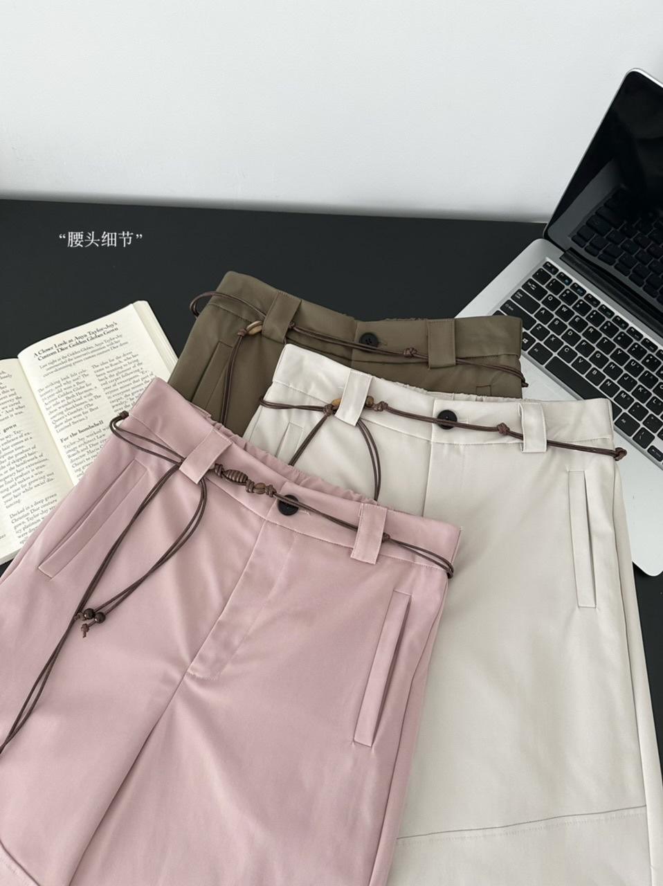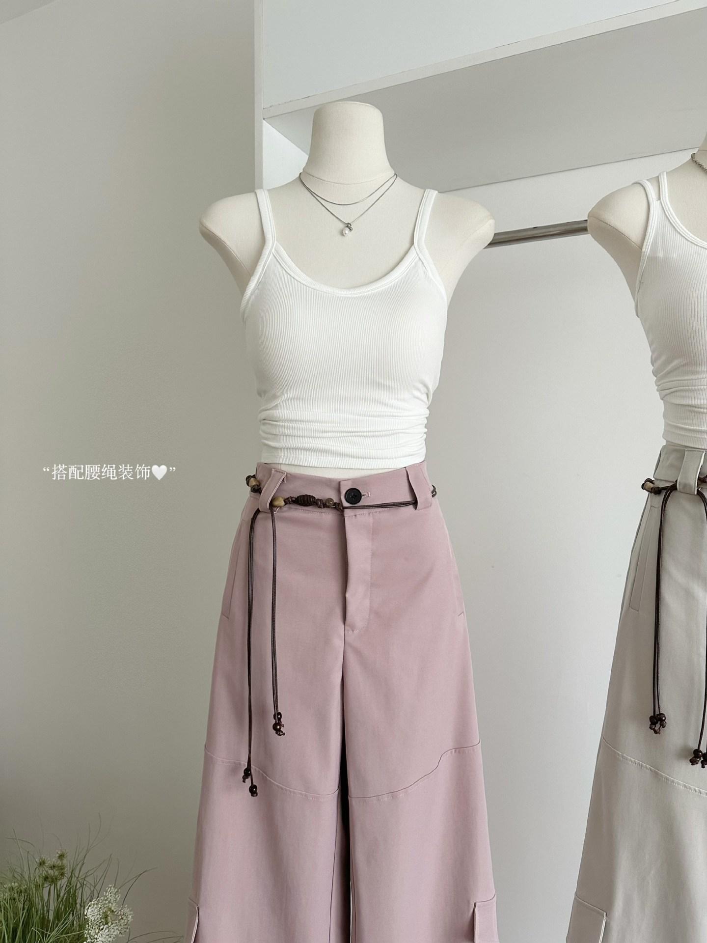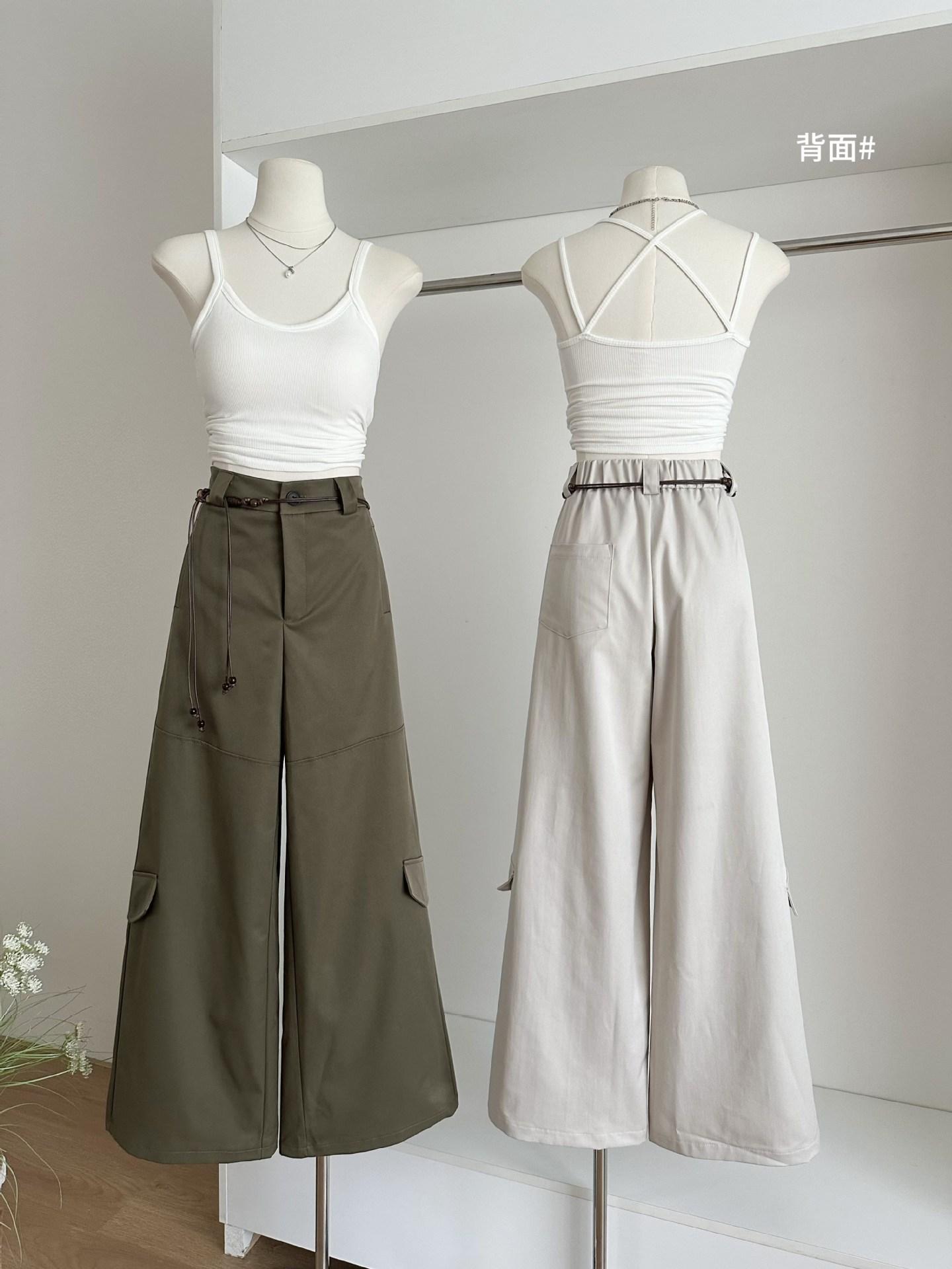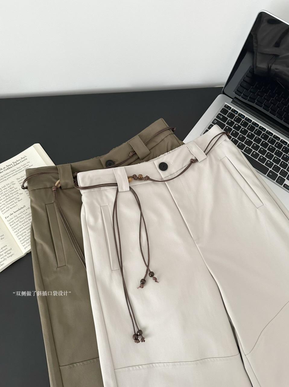 Pantalones Casuales Decorativos con Lazo en la Cintura 2025 Verano Nuevo Diseño Nicho Delgado Pierna Recta Pierna Ancha Pantalones Largos Mujer