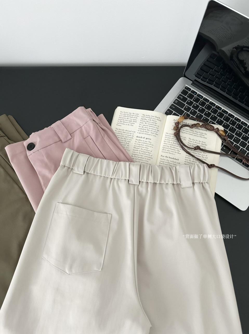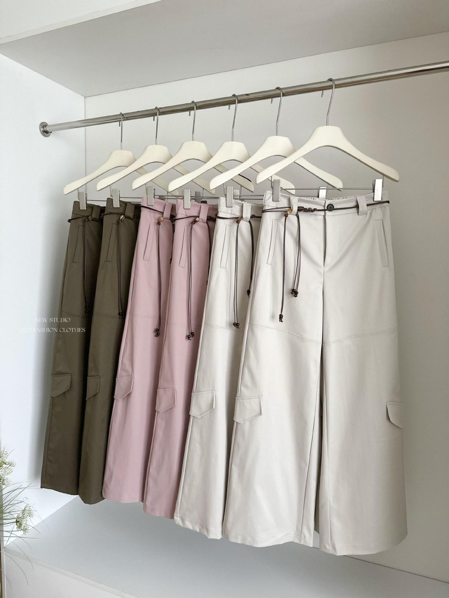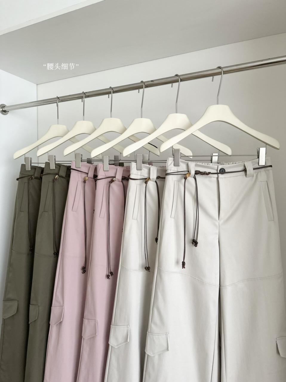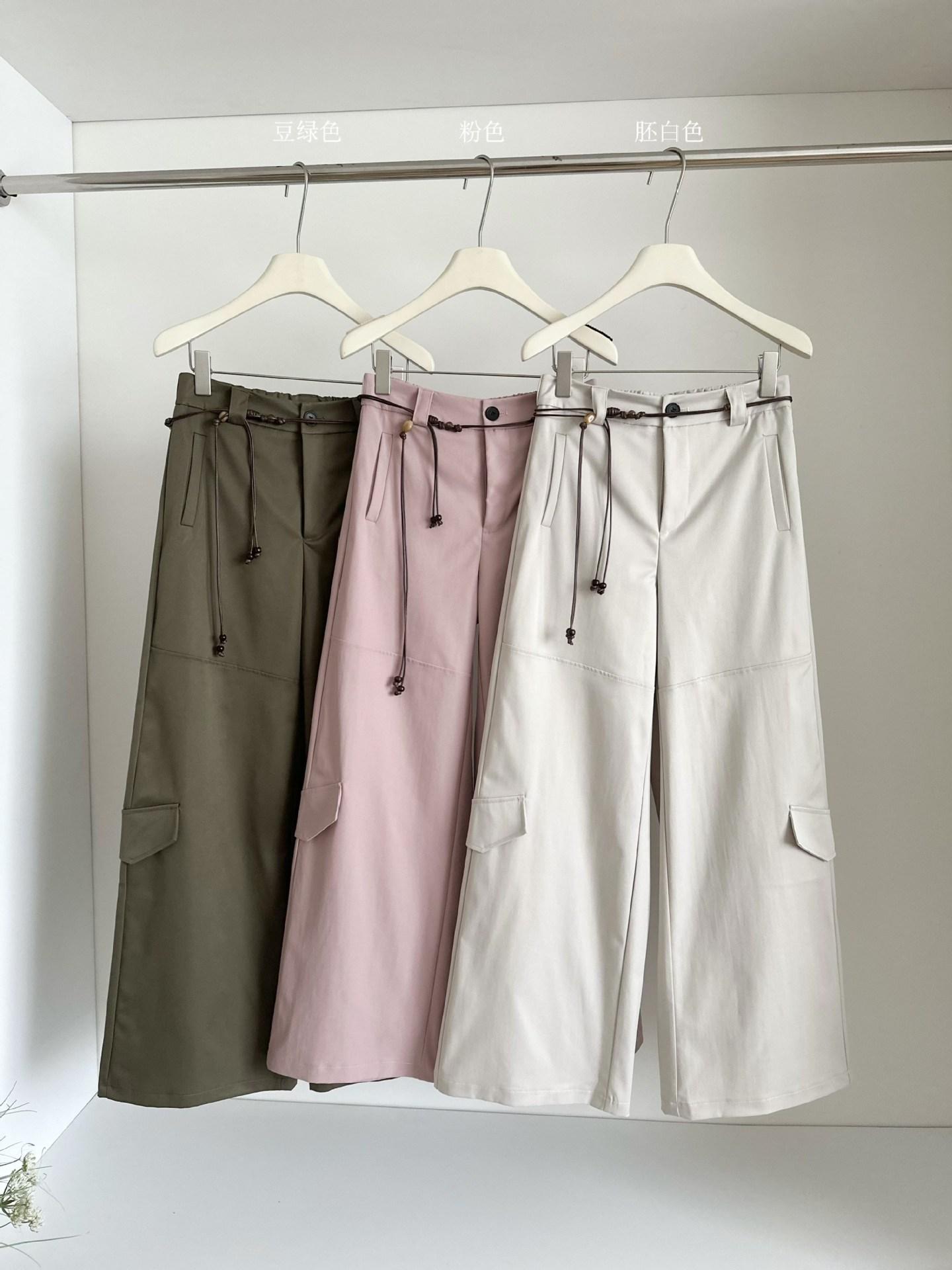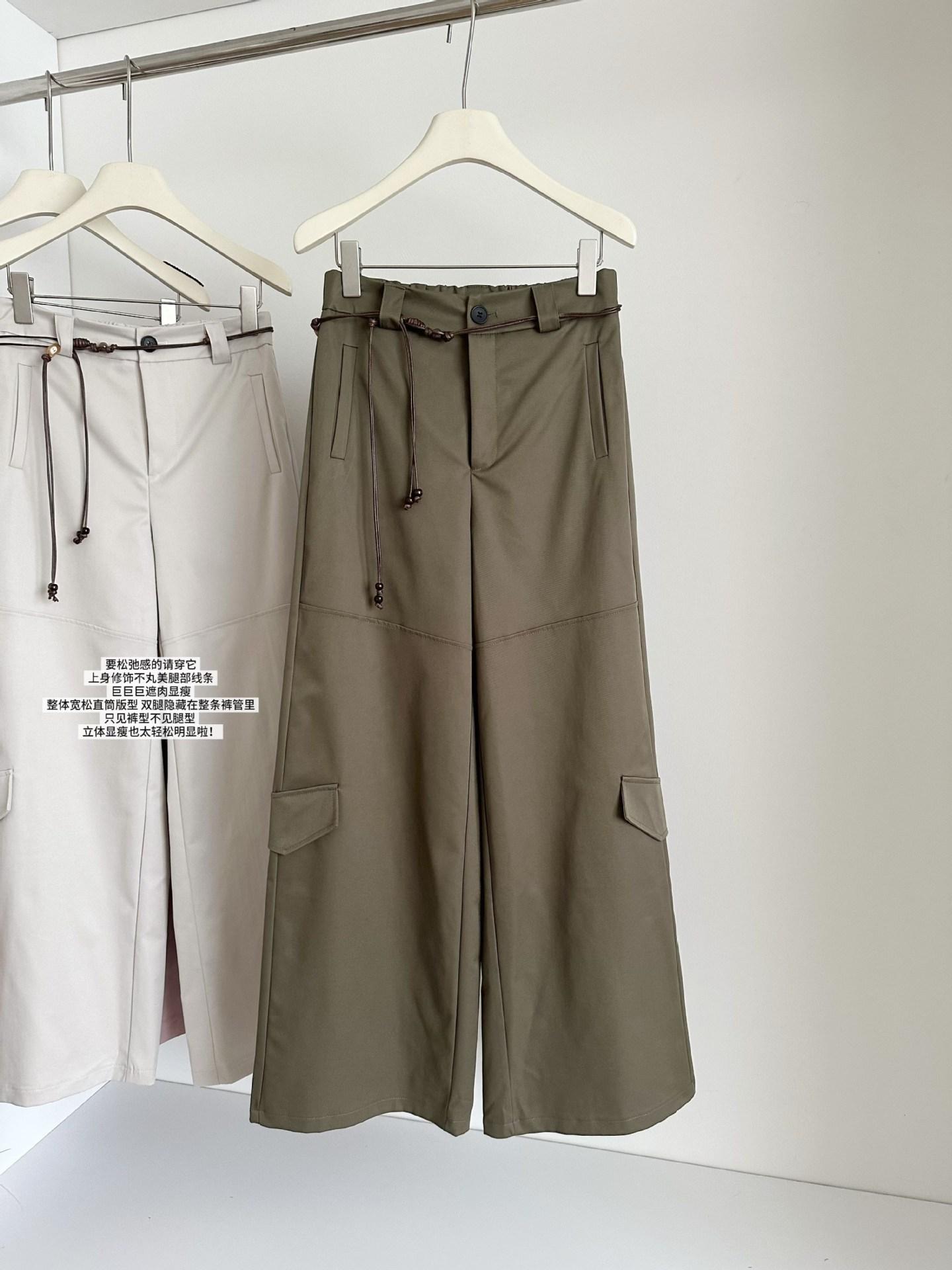 Pantalones Casuales Decorativos con Lazo en la Cintura 2025 Verano Nuevo Diseño Nicho Delgado Pierna Recta Pierna Ancha Pantalones Largos Mujer