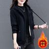 Chamarra sudadera con forro polar para mujer otoño e invierno 2024 nueva engrosada cálida para madre de mediana edad señoras cárdigan top corto