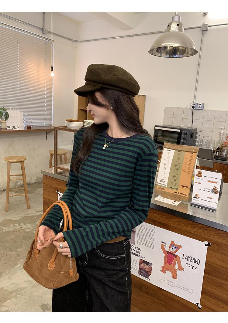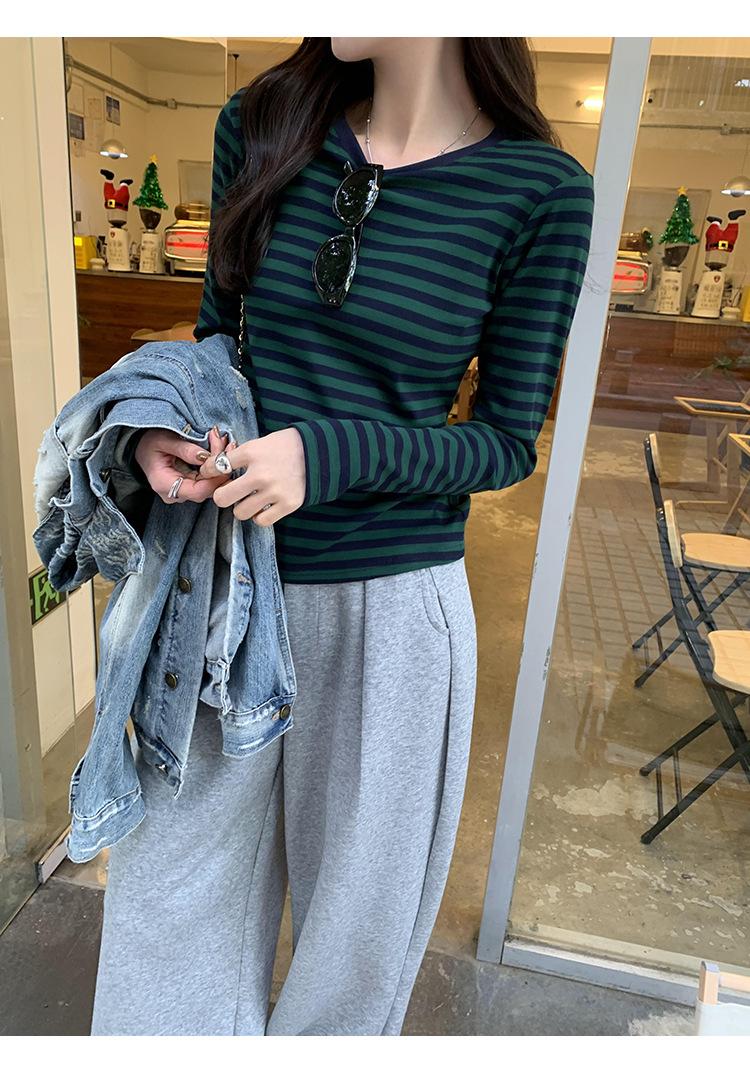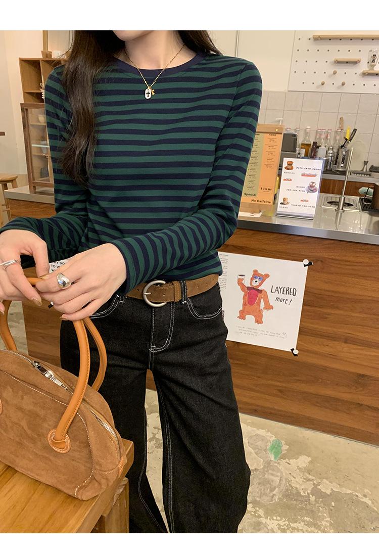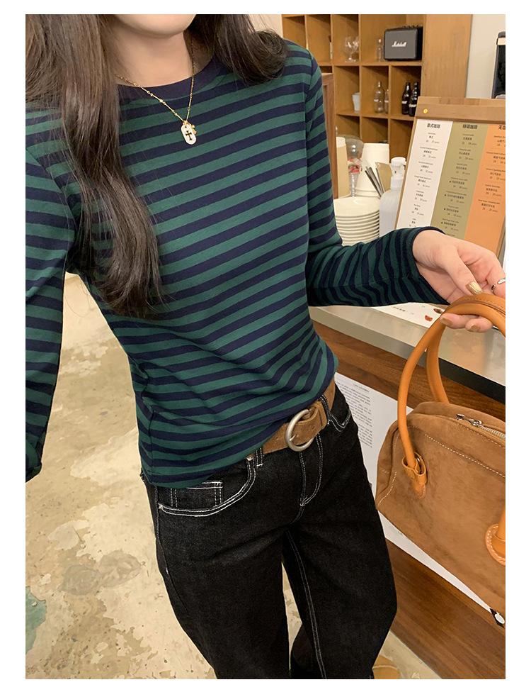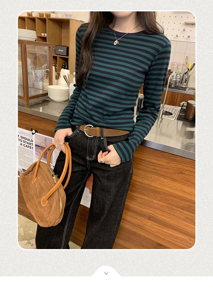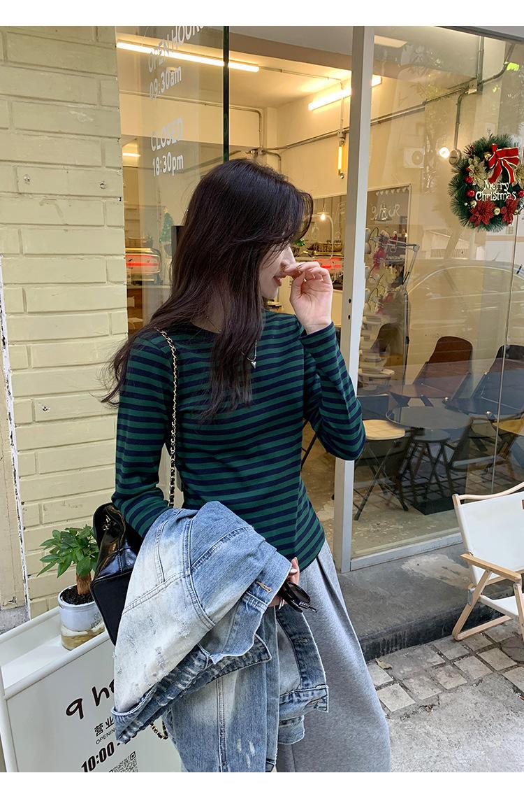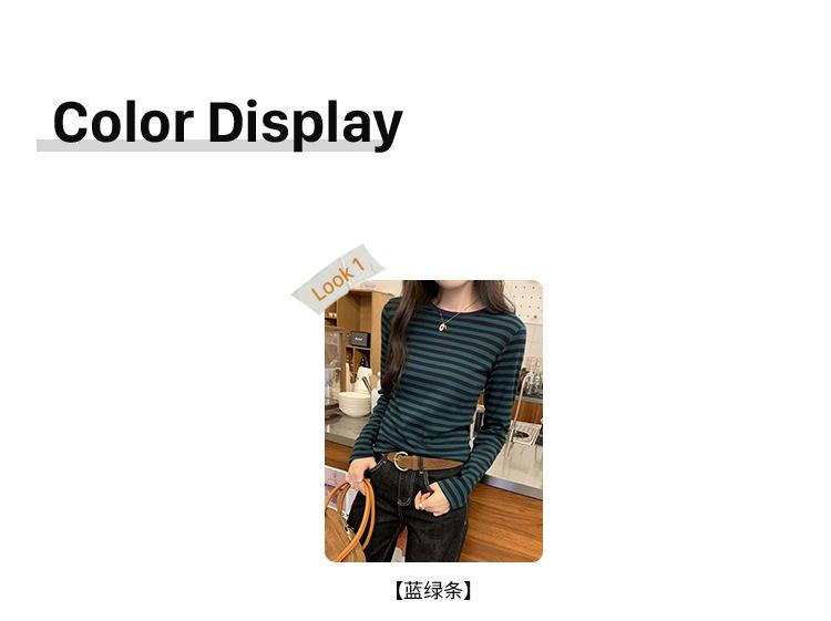 Camiseta base interior chic a rayas de color contrastante para mujer Primavera y Otoño 2025 Camiseta de manga larga ajustada para chica guapa Top ajustado que combina con todo