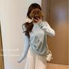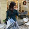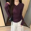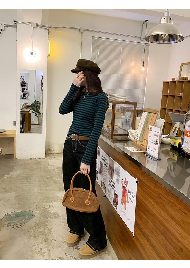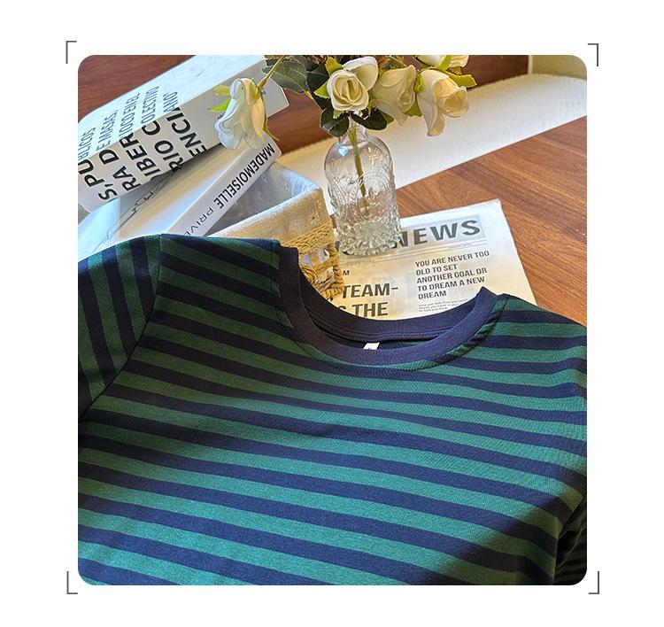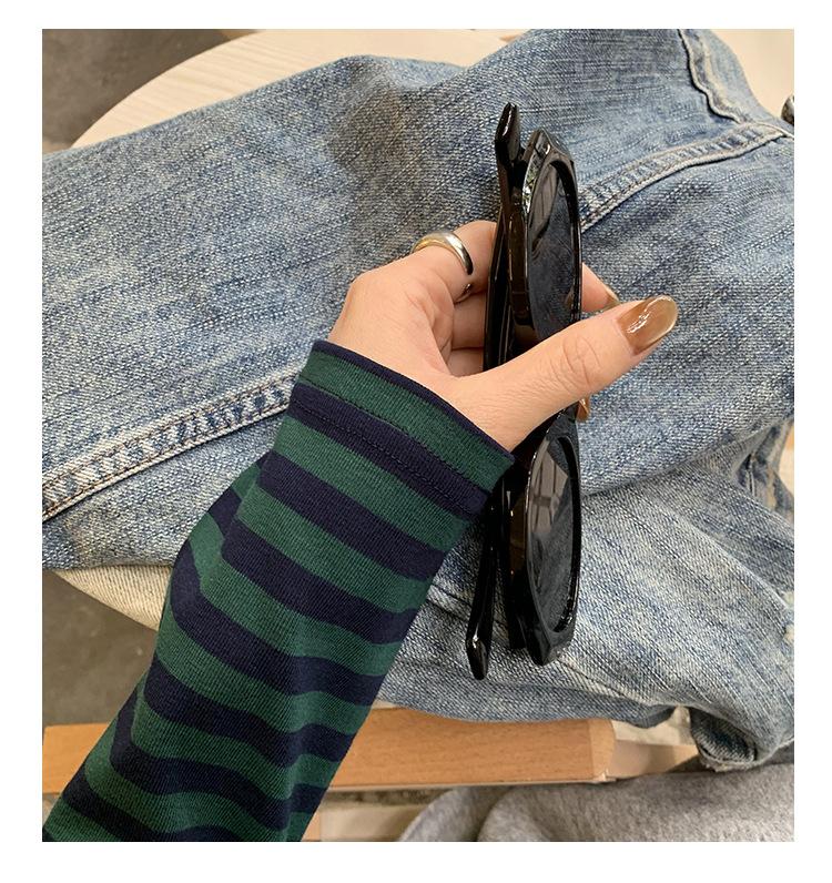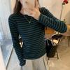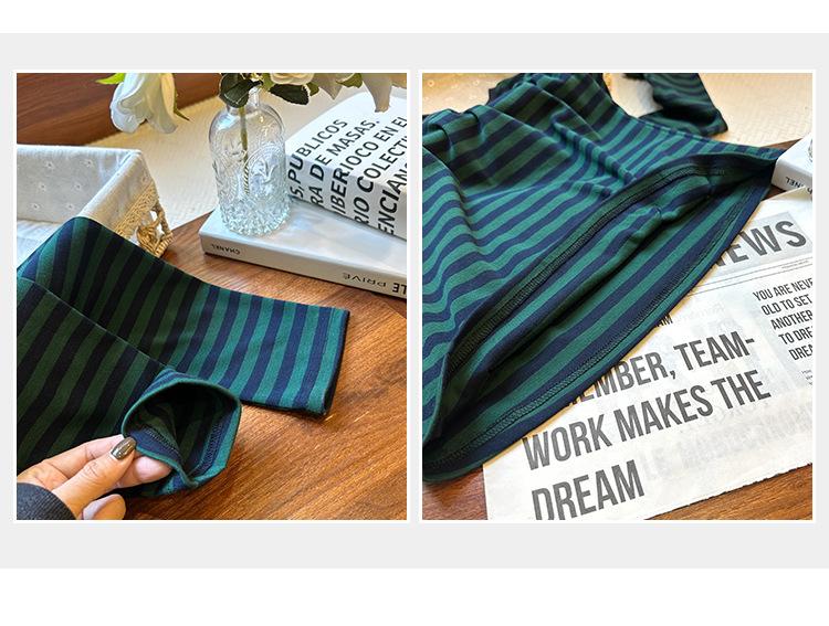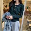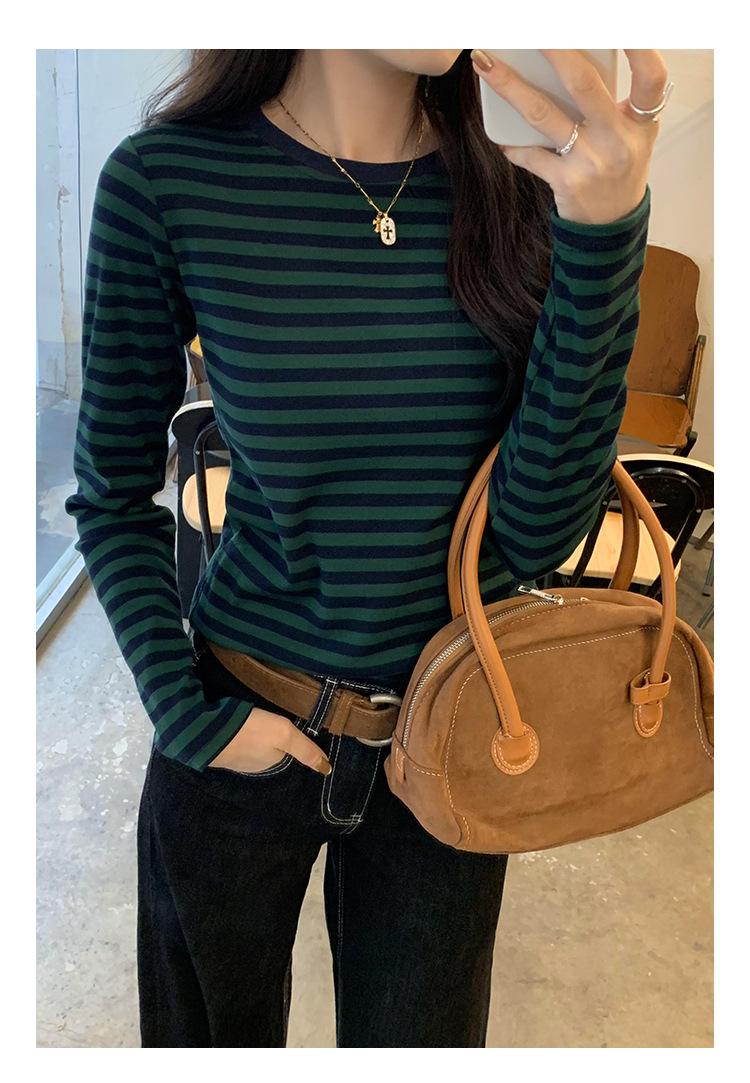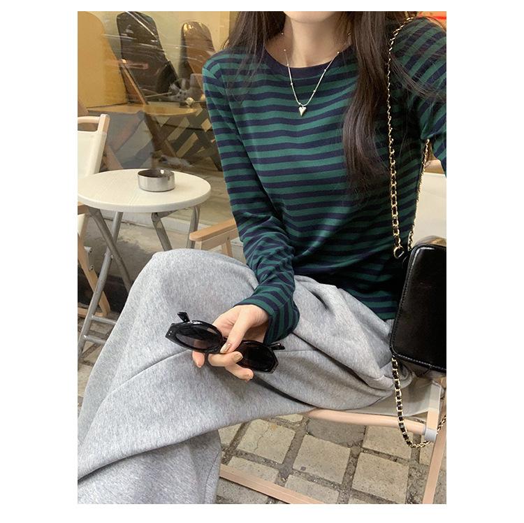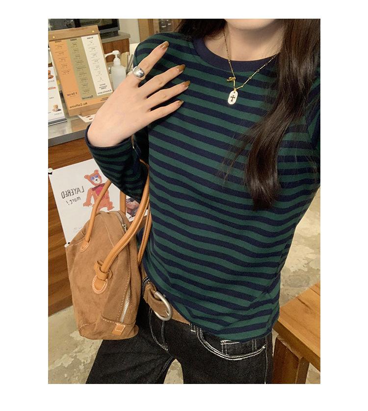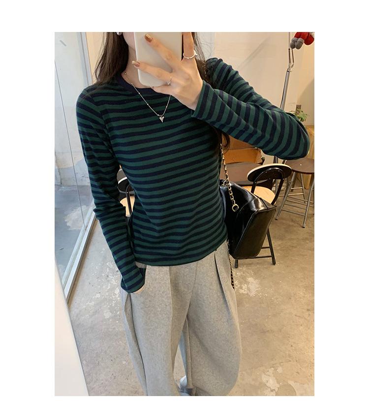 Camiseta base interior chic a rayas de color contrastante para mujer Primavera y Otoño 2025 Camiseta de manga larga ajustada para chica guapa Top ajustado que combina con todo