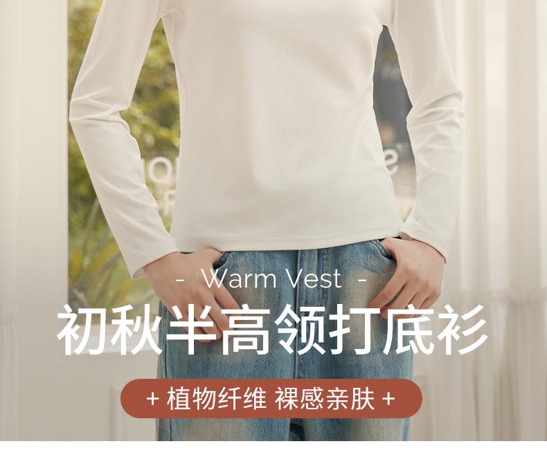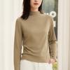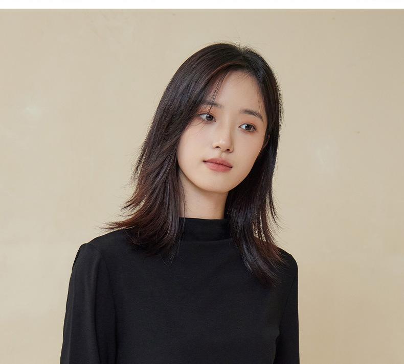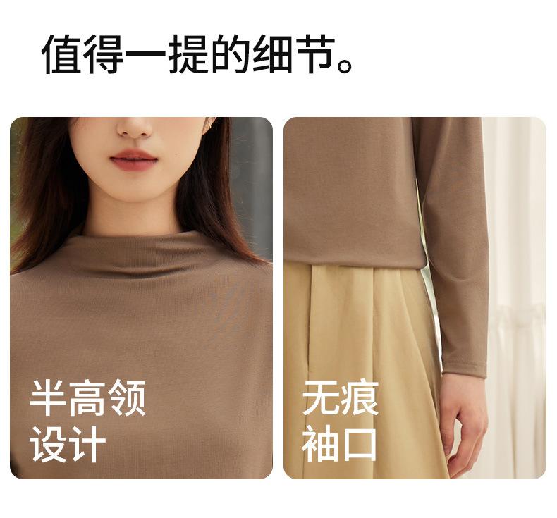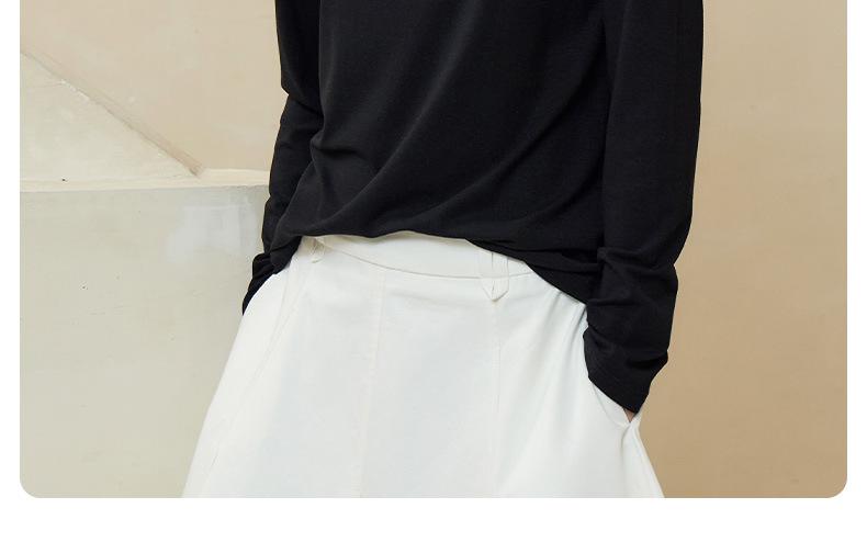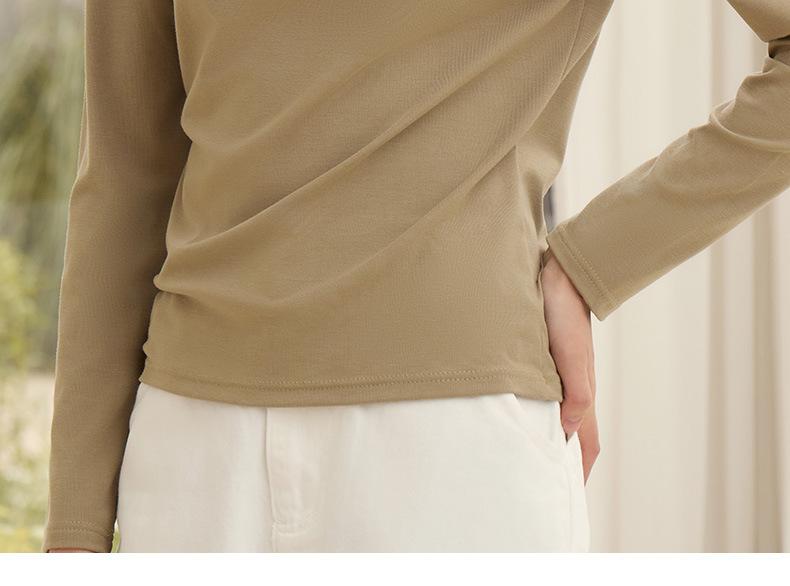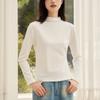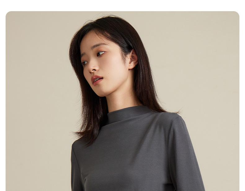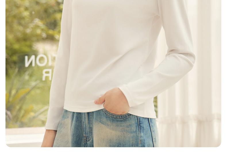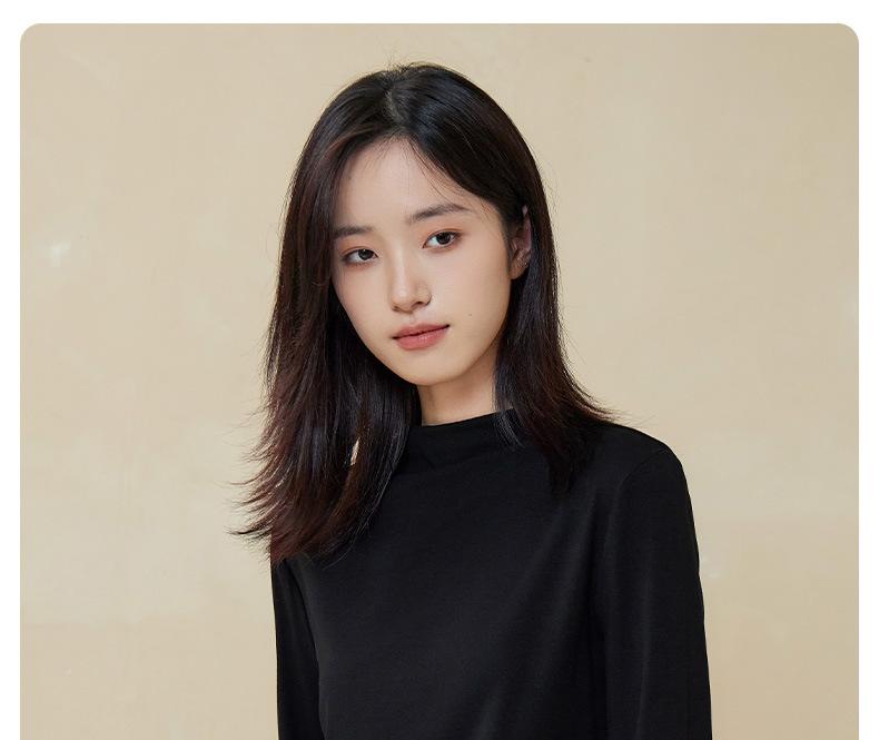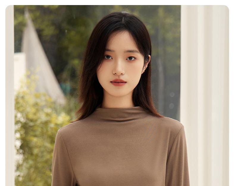 Nueva Camiseta Básica de Cuello Medio Alto para Mujer Principios de Otoño Color Sólido Camiseta Ropa Interior 2025 Nueva Negra Hombro Recto Manga Larga Top