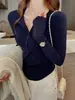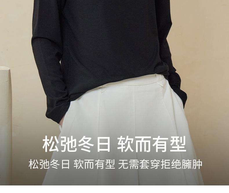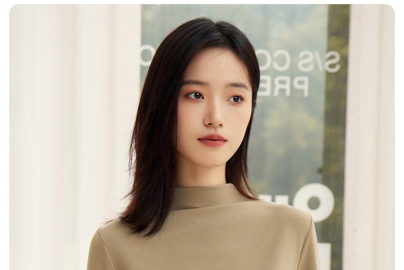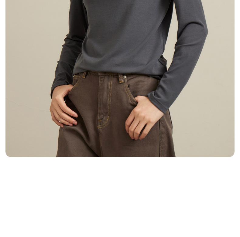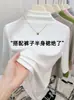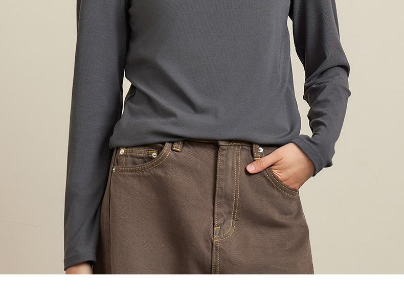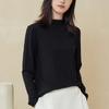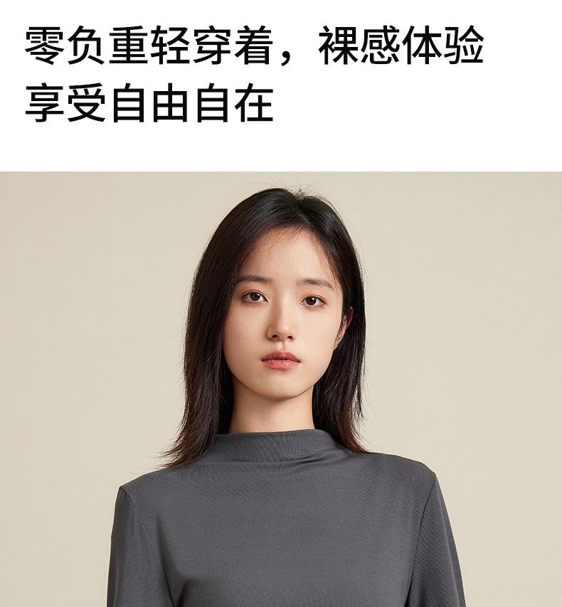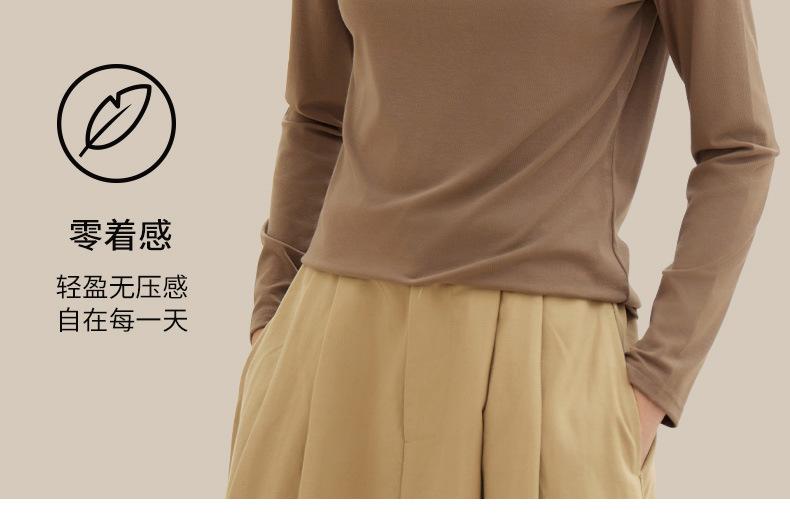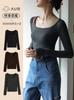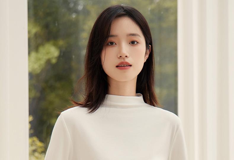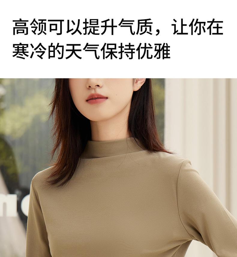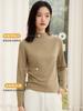 Nueva Camiseta Básica de Cuello Medio Alto para Mujer Principios de Otoño Color Sólido Camiseta Ropa Interior 2025 Nueva Negra Hombro Recto Manga Larga Top