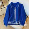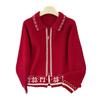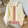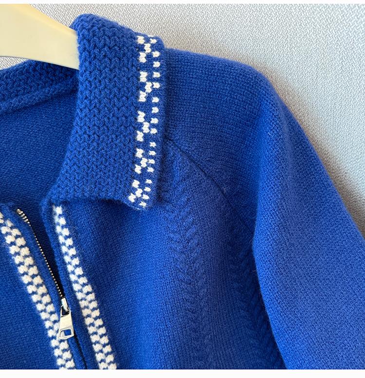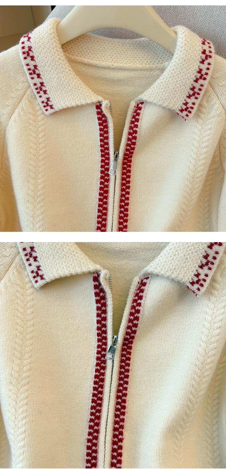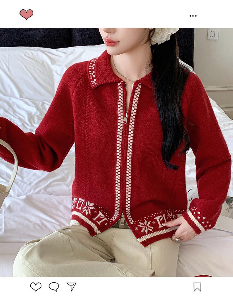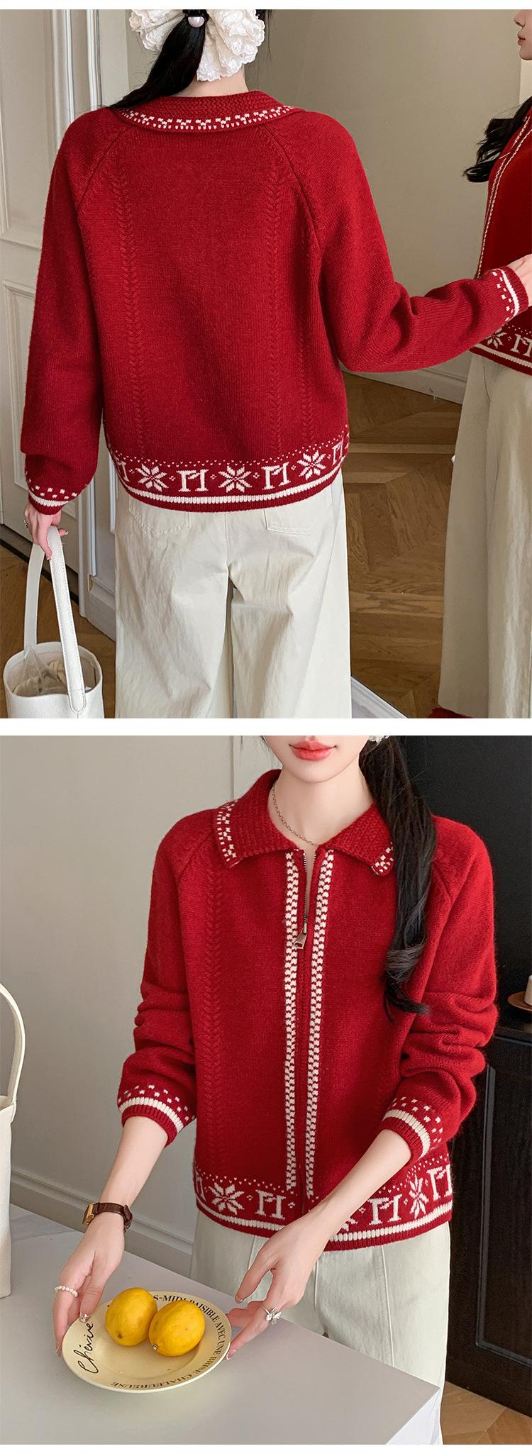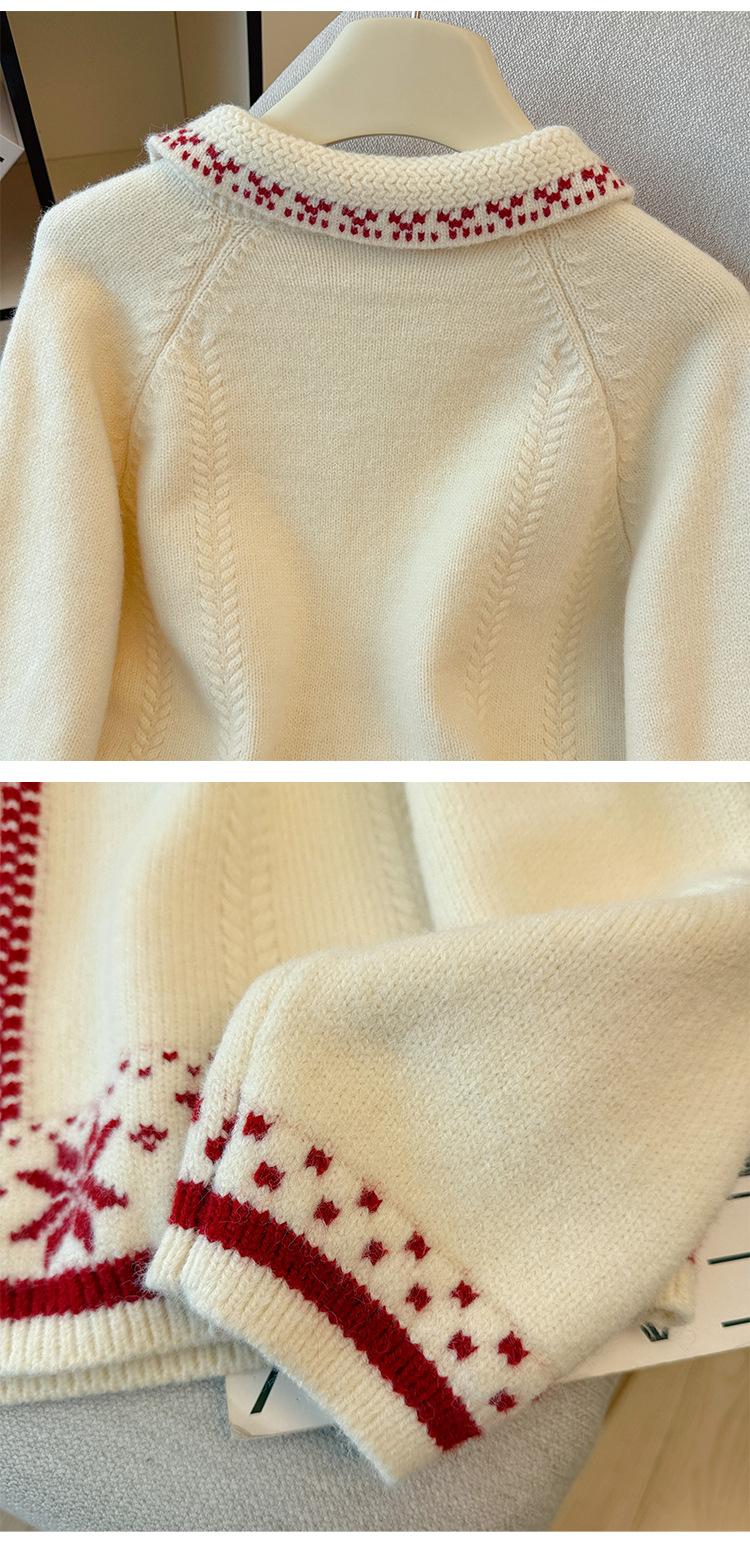 Jacquard de Copo de Nieve Color Block Cuello Redondo Tejido de Punto para Mujer Otoño/Invierno Cárdigan de Cremallera de Gama Alta Abrigo Suéter Top